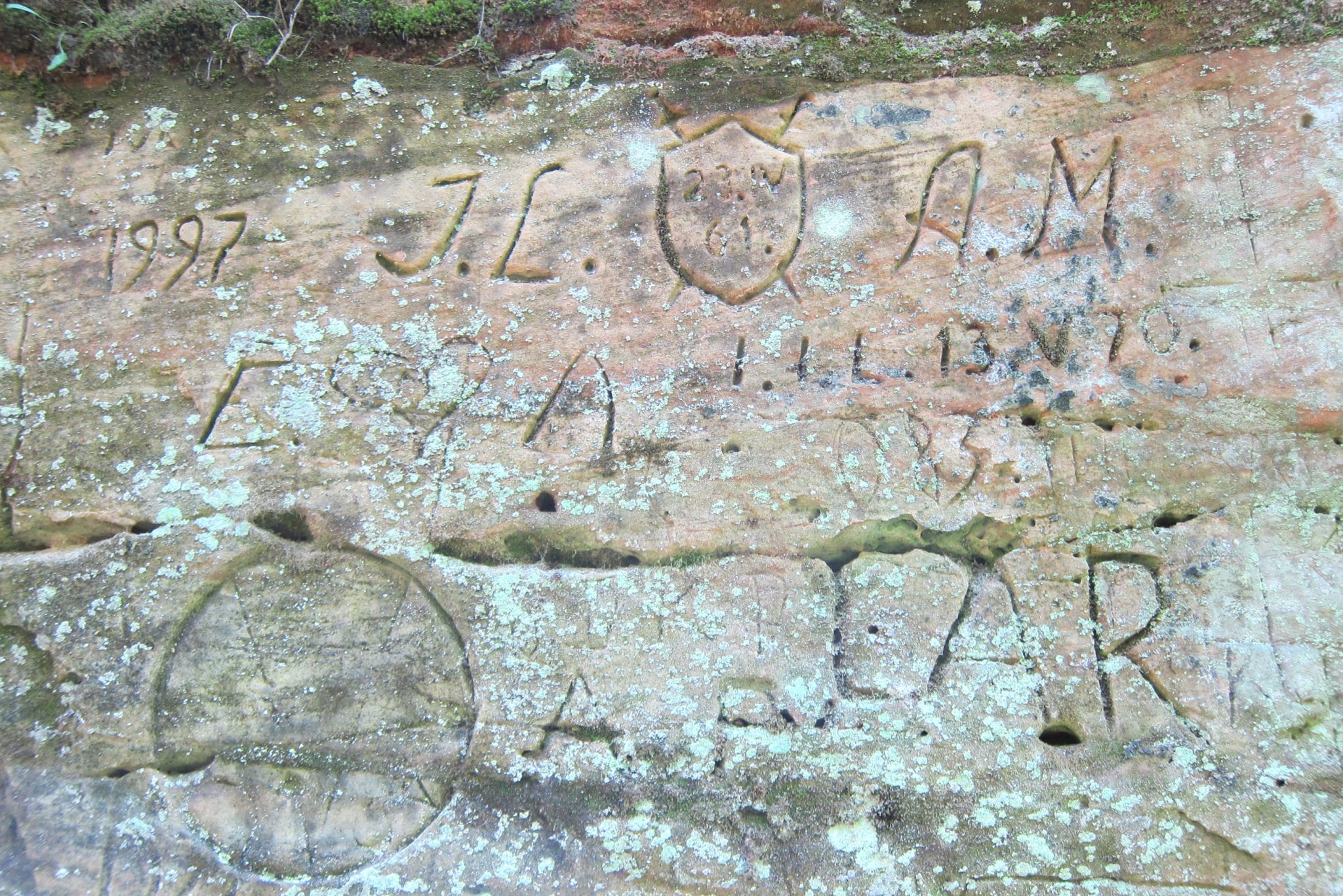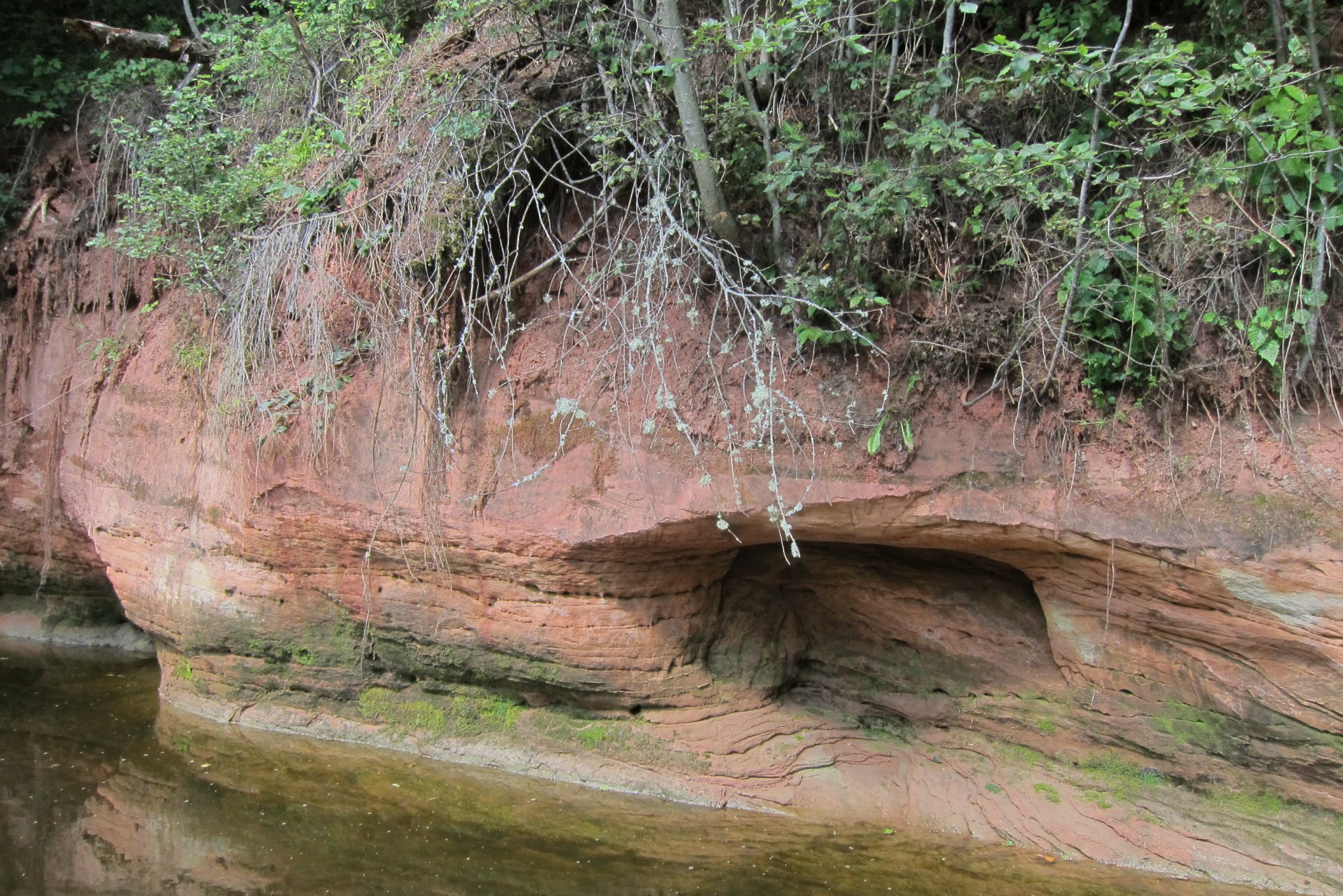 Iet ir patīkami – ūdens tikai vietām sniedzas mazliet pāri ceļiem, pamatā tas beidzas līdz ar potītēm. Skaista ir gan pati upe, gan tās krasti, īpaši brīžos, kad parādās lielāki un mazāki smilšakmens atsegumi. Vairums no tiem diemžēl ir cilvēku izrotāti. Priecīgākam noskaņojumam atceros karikatūru iz padomju laikiem. Stāv vīrs laivā un, skatoties uzrakstu pilnajā klints sienā, saka sievai: „Un tu teici, ka dabas skaistums šeit ir neaprakstāms.”