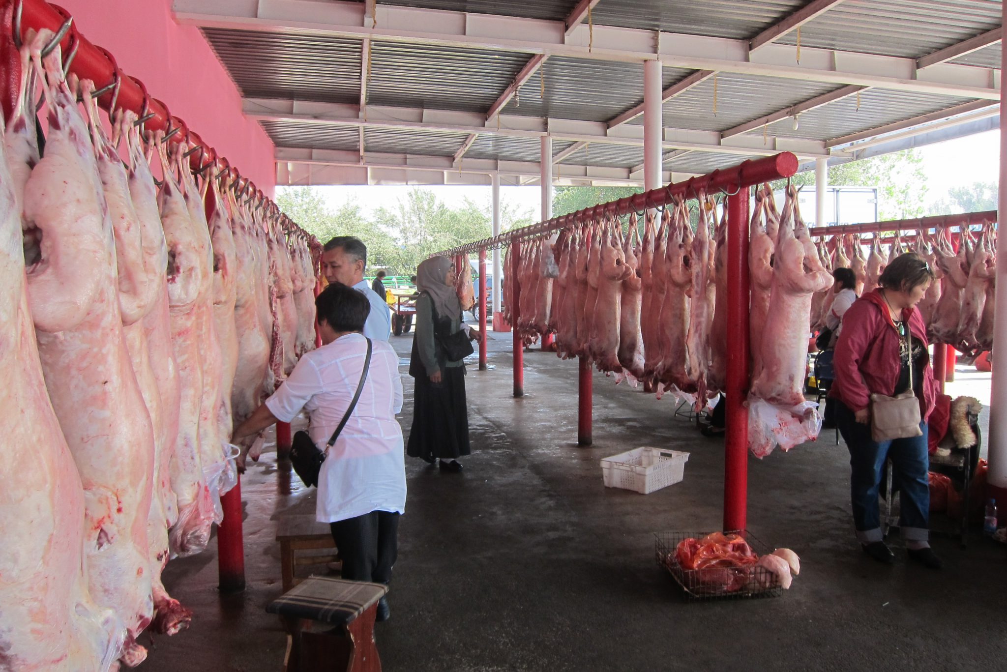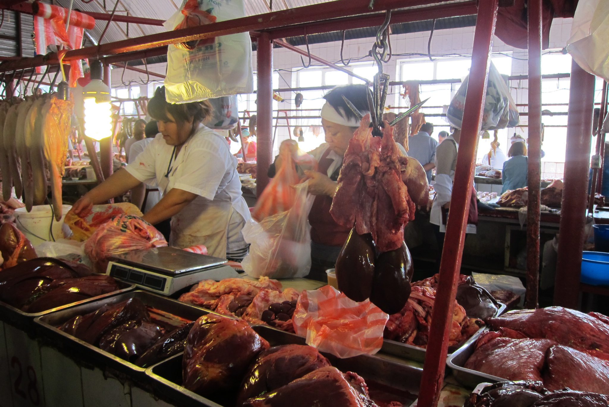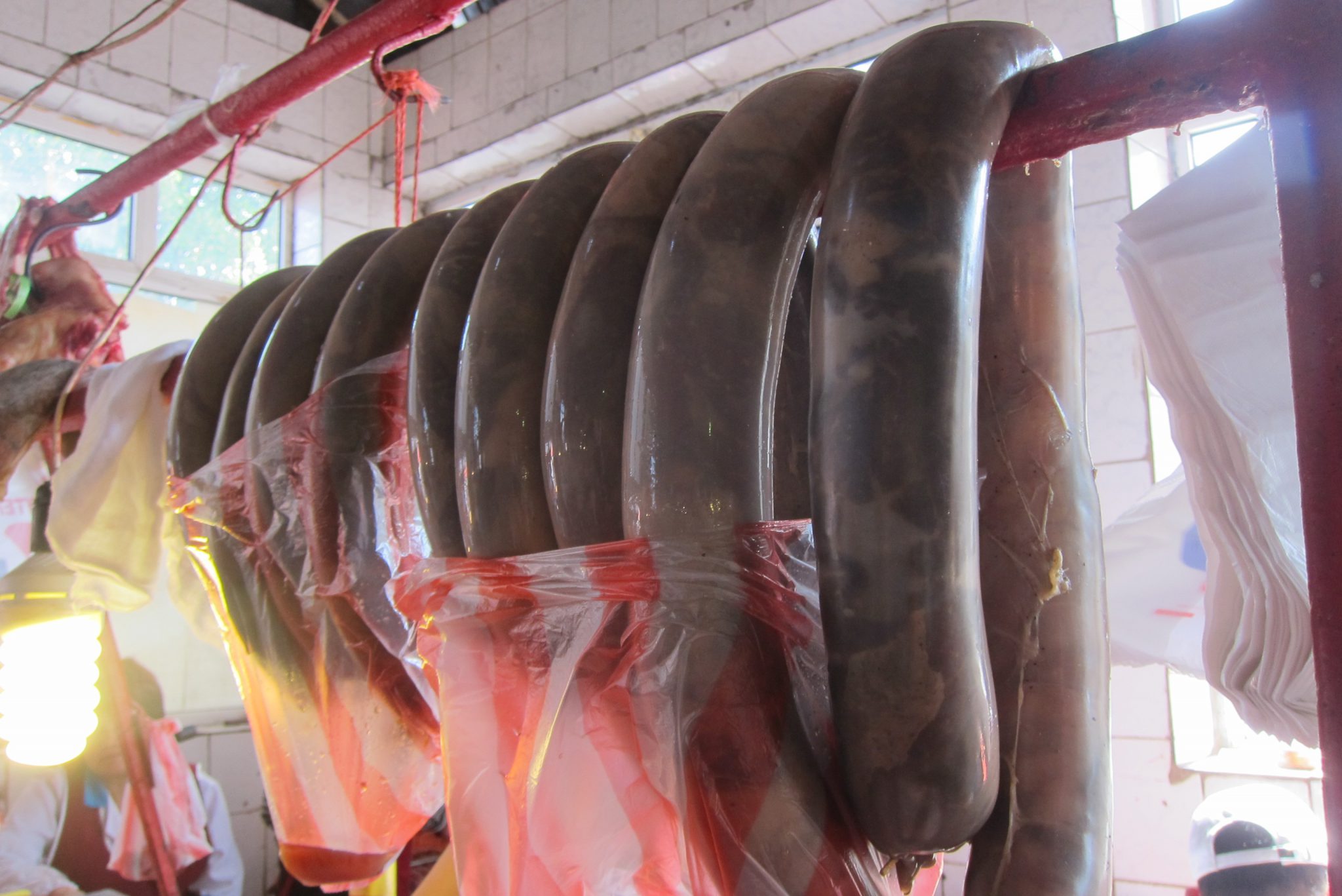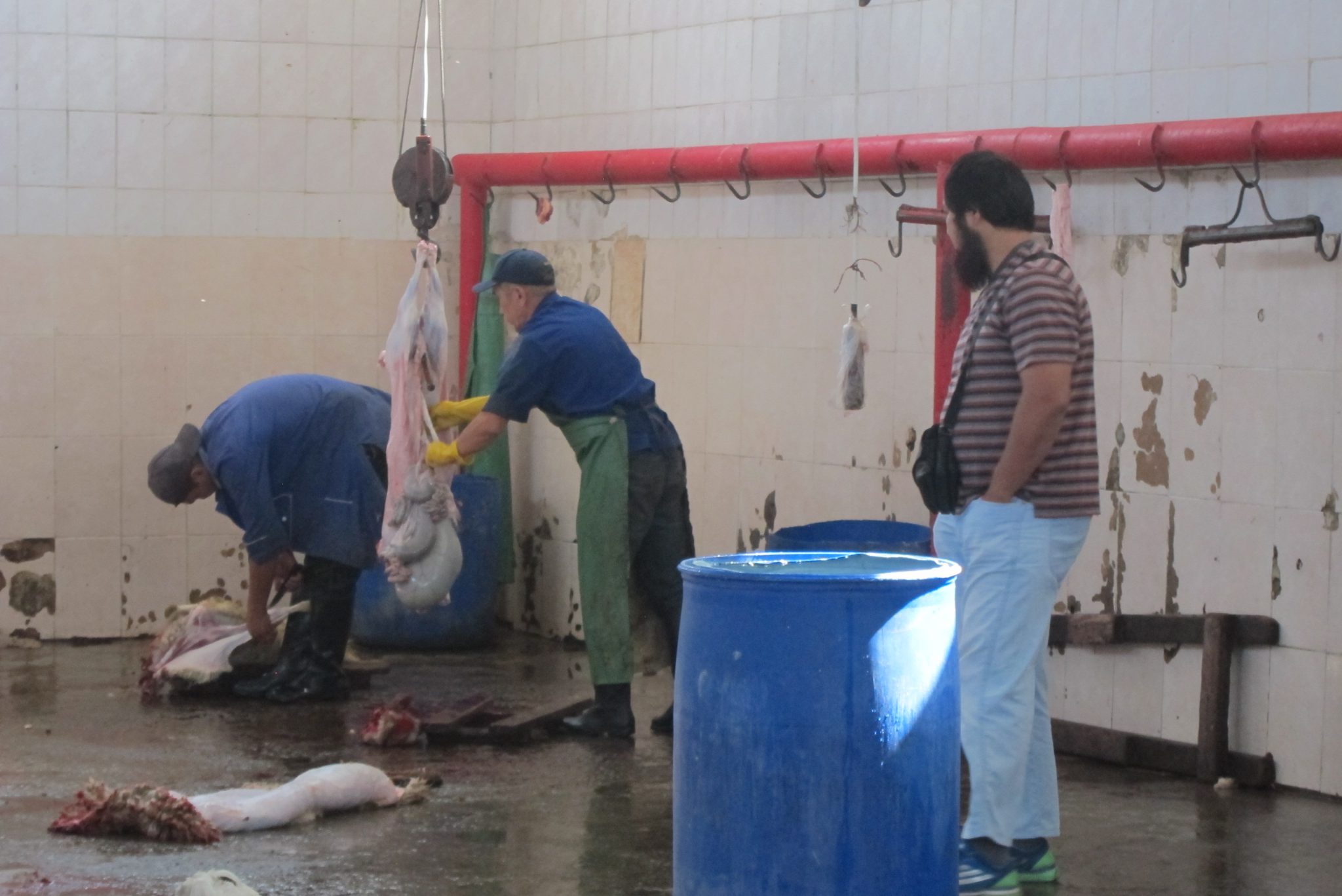 Daudzviet tirgū produkti tiek tirgoti tikai vairumā – avenes un zemenes jāpērk vismaz viena kaste, kurā ir teju 10 kilogrami. Tāpat ir ar āboliem, vīnogām, persikiem un citiem augļiem. Bet vietām tomēr var iegādāties arī pa kilogramam – es sapērku augļu kules, lai tuvākajās dienās būtu ar ko mieloties. Arī Aņa ar mammu iepērkas – somā tiek liktas milzu zaļumu buntes, marinēti salāti un dažādi gaļas produkti. Pastaiga pa gaļas paviljonu šeit ir visiespaidīgākā, jo pamatā tiek tirgota nevis pati gaļa, bet gan tās subprodukti, tai skaitā tādi, kurus pie mums neredz. Kamēr Aņas mamma ar lietpratēja skatienu izvēlas produkciju, es fotografēju pa labi un pa kreisi – gan pašus produktus, gan cilvēkus. Īpaši man acīs iekrīt kāda meitene. Ja pārsvarā pārdevējas ir tādas kārtīgas tirgus sievas, tad šī meitene izskatās kā trausls eņģelis, kas šeit nonācis pārpratuma pēc. Jau rakstīju Tviterī – viņai baletu dejot vai dzeju lasīt piestāvētu. Kad lūdzu atļauju viņu nofotografēt, meitene samulst, bet piekrīt. Kopumā es šeit reti prasu atļauju fotogrāfijām, cilvēkiem patīk, ka viņus bildē. Vairāki gaļas vīri paši uzprasās un lūdz, lai es šos nofotografēju. Par ko ne, to arī daru.