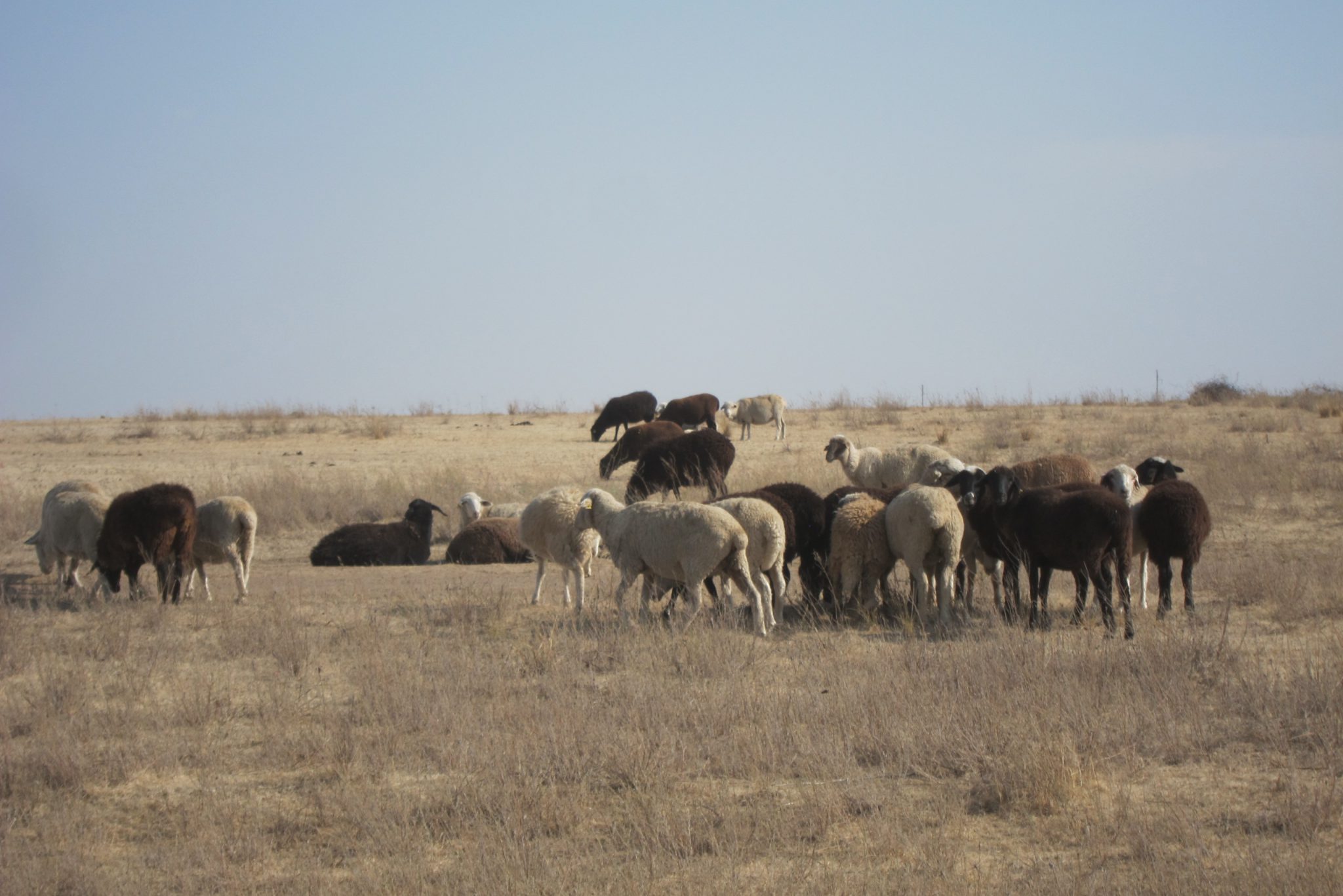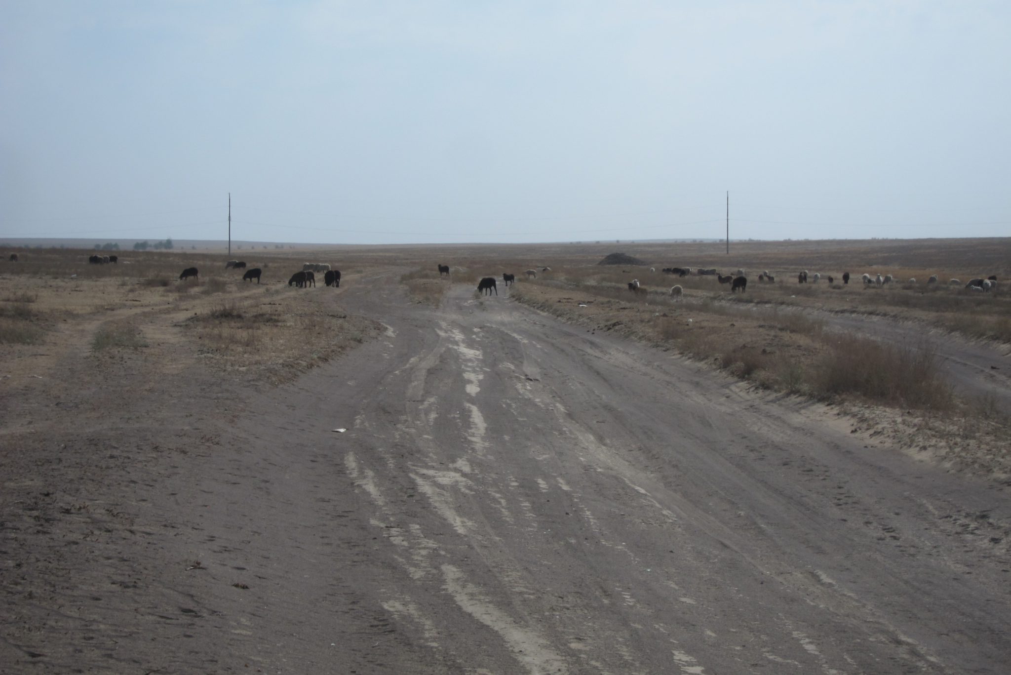 Tomēr esmu ar braucienu pilnīgā mierā – bērnībā biju daudz lasījusi Vidusāzijas tautu pasakas, kurās daudzi notikumi risinājās stepē, un man ļoti gribējās redzēt, kāda tā īsti ir. Man žēl, ka neprotu jāt ar zirgu, jo tas būtu vēl viena dīvainā bērnības sapņa piepildījums – jāt ar zirgu, kur acis rāda tik ilgi, kamēr spēki ir galā. Tā, ka ceļā nav nekā – nekādu šķēršu, nekā apskatāma. Stepe, vismaz šajā gadalaikā, ir tieši tāda. Retum rets koks, bet viss pārējais – izdegusi zāle, pavisam mazi krūmeļi. Tajos gan dzīvības netrūkst, vasarā esot daudz bruņurupuču, bet tagad sēņu. Tālumā izklaidus redzami aitu, govju un zirgu bari. Daži klīst savā vaļā, citus pieskata gans. Mazākus ganāmpulkus vaktē kājnieki, bet prāvākiem apkārt jādelē gani zirgos. Pāri ceļam vējš ritina sausas zāles vīkšķus. Īsāk sakot, diezgan drūma ainiņa, bet savā ziņā skaista un arī līdzinās manā iztēlē mītošajai. Vēl gribētos redzēt stepi pavasarī – kad tā pārvēršas zaļā paklājā un vietām virmo sarkanās magoņu ugunīs.