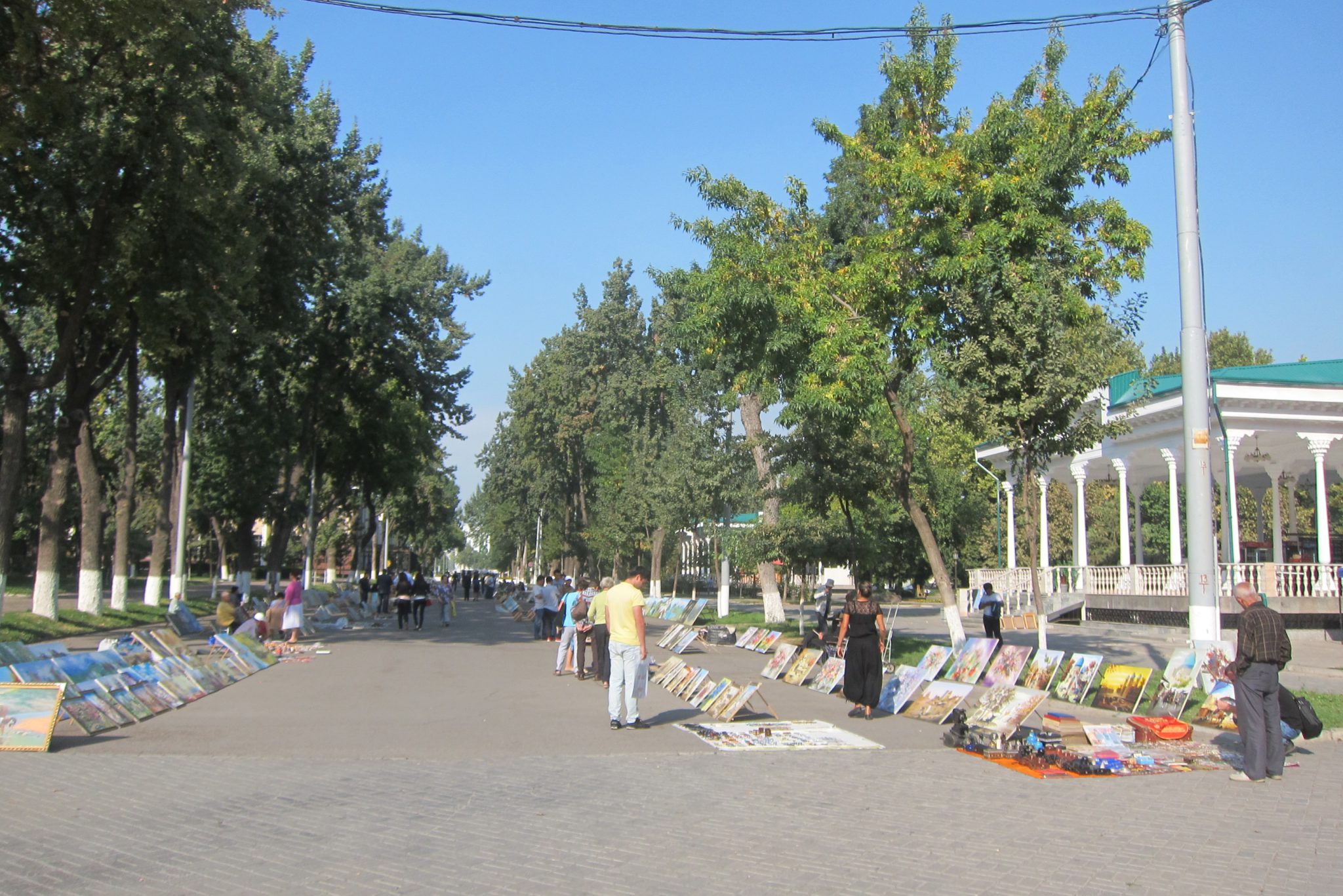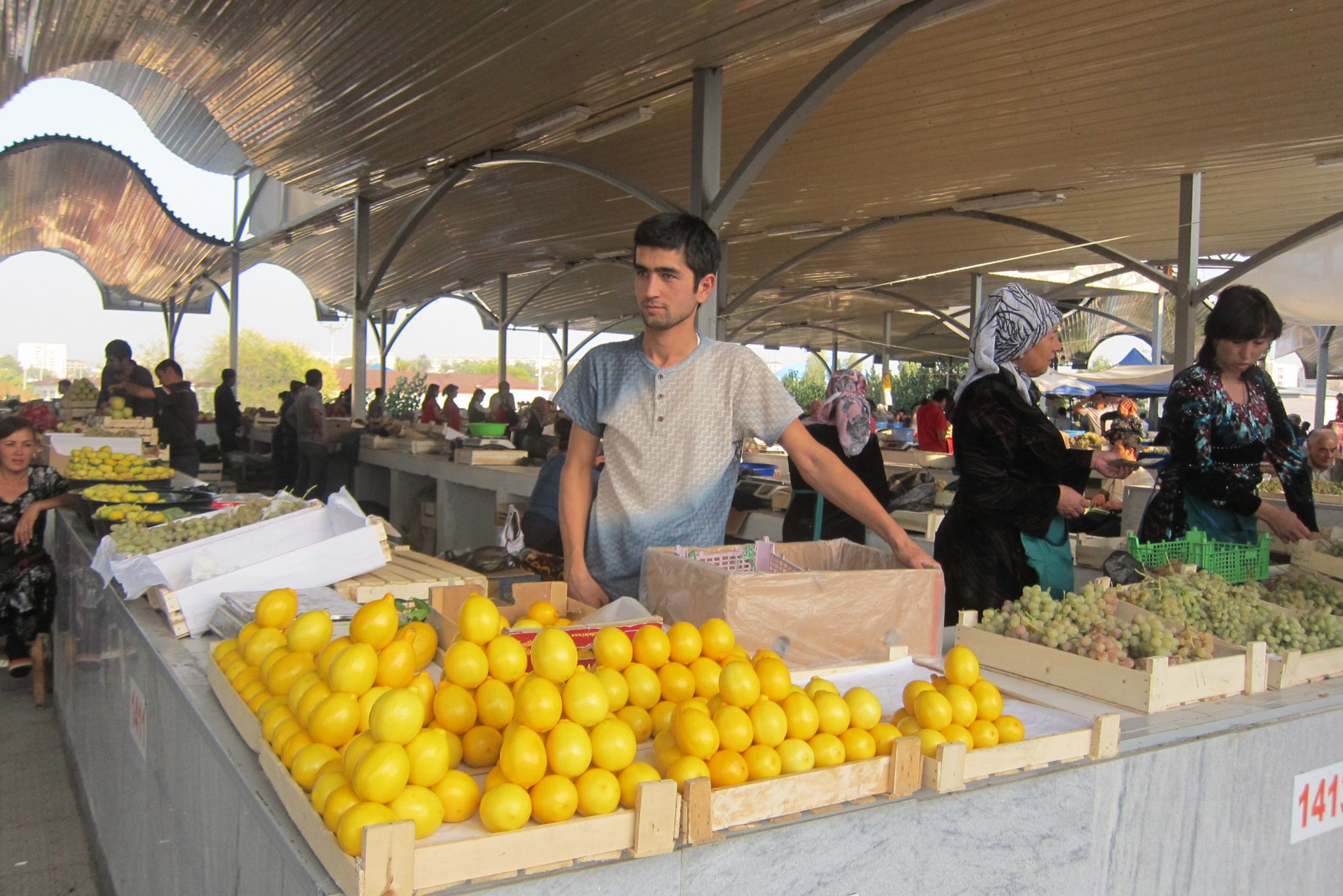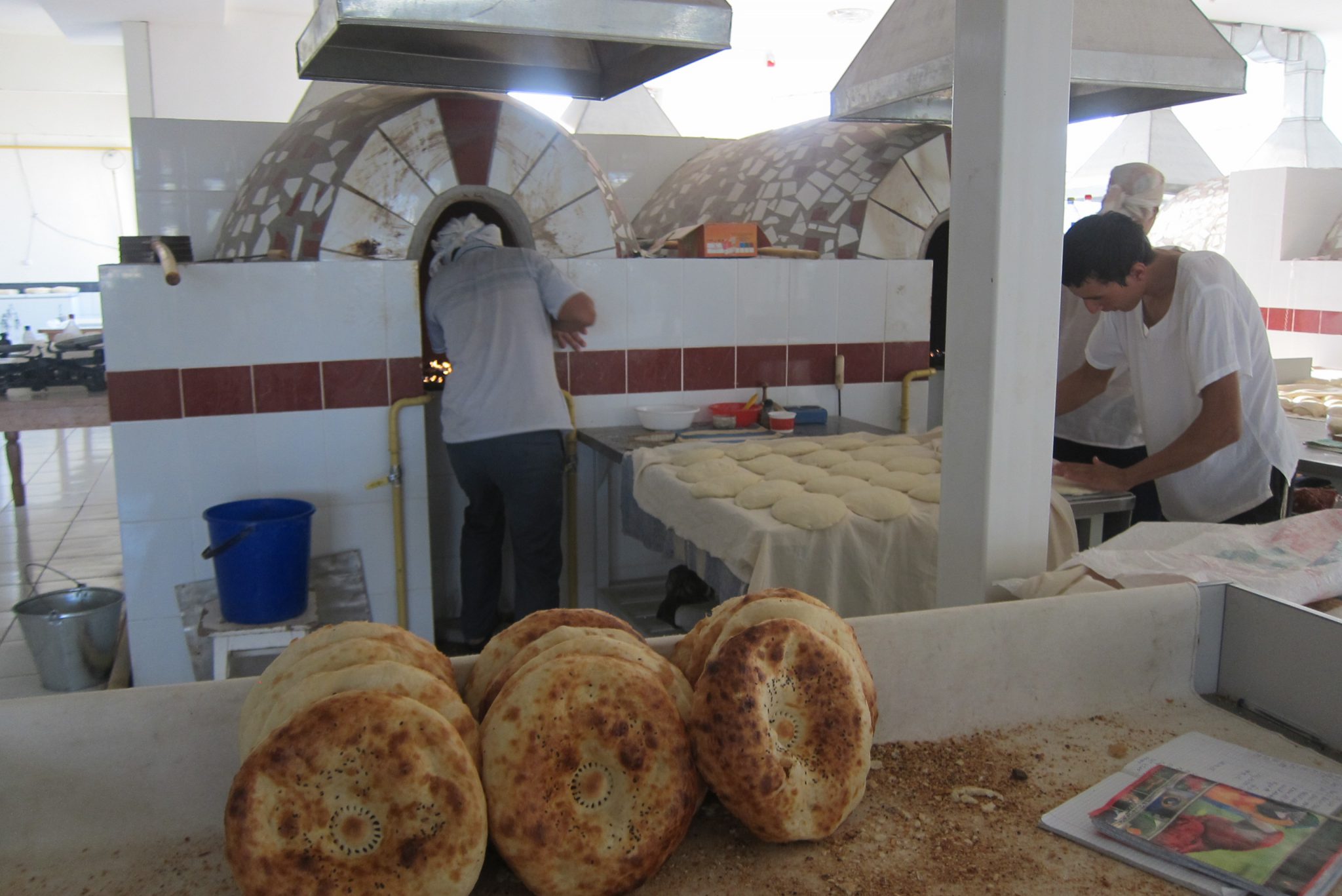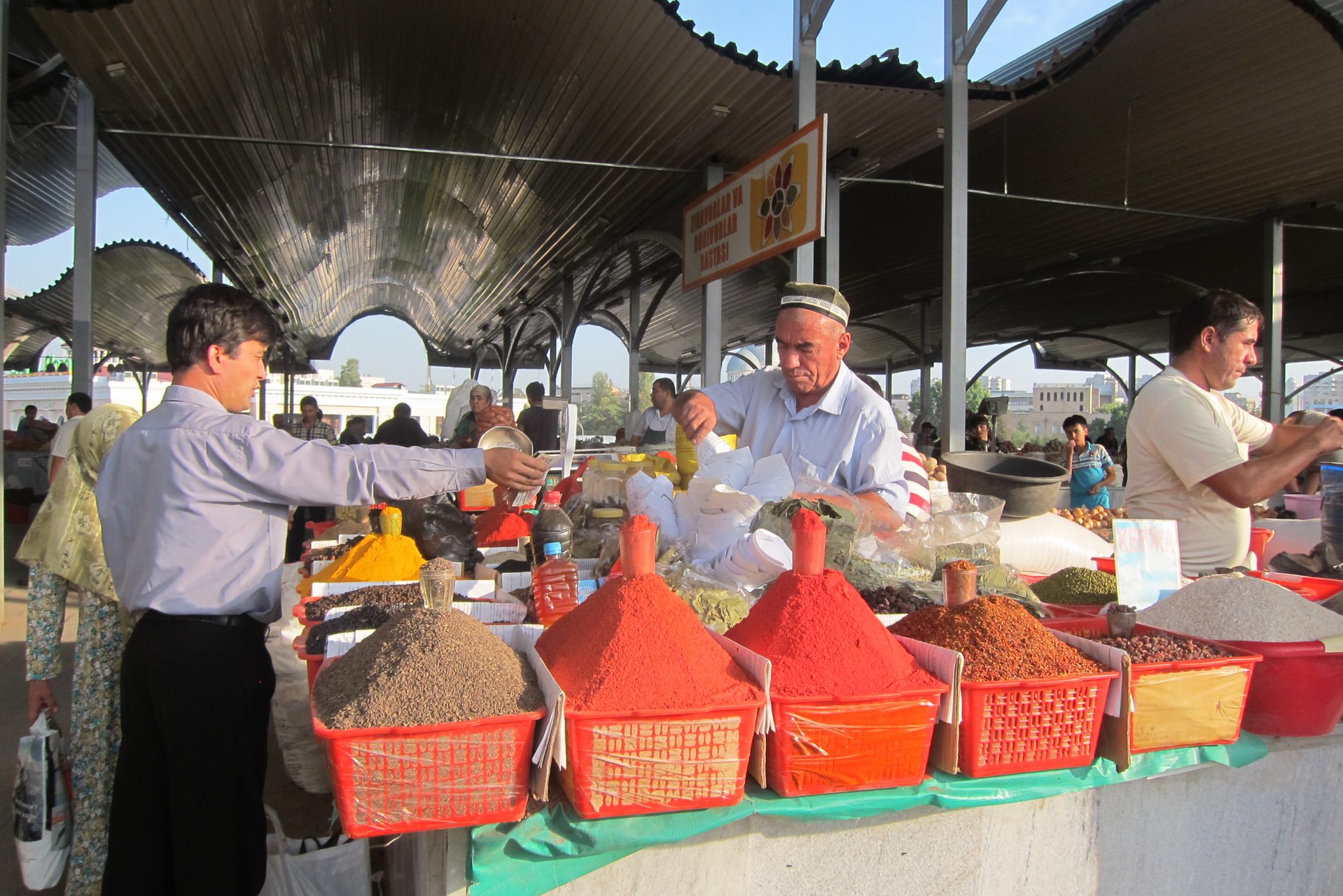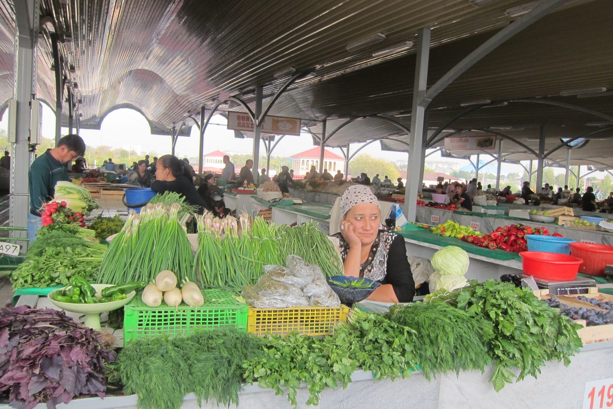 To es arī veiksmīgi atrodu un aši norezervēju hosteli šovakaram Taškentā (lai dabūtu reģistrāciju), drošības pēc tomēr norezervēju arī Tadžikistānas anketā norādīto palikšanas vietu (ja nu šiem ienāk prātā pārbaudīt). Padarījusi darāmo, nolemju šeit paēst pusdienas – izskatās, ka daudzi vietējie te nāk pusdienot. Kad nosēžos ar paplāti pie galdiņa, atskan jautājums, vai drīkst pievienoties. Paceļu galvu – tūrisma aģentūras šefs arī atnācis pusdienās. Tad nu iztaujāju viņu pie reizes vēl par apskates vietām Taškentā un kārtējo reizi izstāstu par tagadējo dzīvo Rīgā.