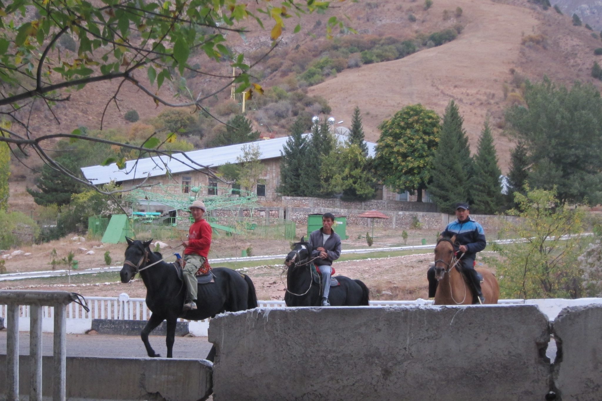 Labi. Nopērku ūdeni, nopriecājos par Rīgas šprotēm vietējā veikala plauktā un pasūtu kafiju un šašliku. Kamēr sēžu pie galdiņa un gaidu, atbrauc kāda kompānija un apsēžas pie blakus galdiņa. Drīz vien viņi aicina mani pievienoties – nu ko es viena tur sēžu, garlaicīgi taču esot. Pēc vairākkārtējiem uzaicinājumiem arī pievienojos. Ģimene ir no Taškentas – māsa ar diviem bērniem un diviem brāļiem. Viņi uzreiz ielej man šņabi un paceļam glāzes par iepazīšanos. Īpaši neprotestēju, jo man ir sajūta, ka šībrīža labilajam veselības stāvoklim šņabis būs kā reizi. Esmu pasūtījusi vien pāris šašlika iesmus, bet papildus tieku cienāta ar maizi, salātiem, pelmeņiem. “Var es tevi uzrunāšu uz tu?”, māsa prasa pēc brīža. Var. “Neapvainosies, ja saukšu Tevi par Zarinu”, atskan nākamais jautājums. Nu, ja tev tā tīk. Garām jāj trīs džigiti uz zirgiem un māsa samaksā 5000, lai brālis var atcerēties, kā tas ir – lēkšot uz zirga. Viņa piedāvā arī man, bet atsakos, sakot, ka man bail.