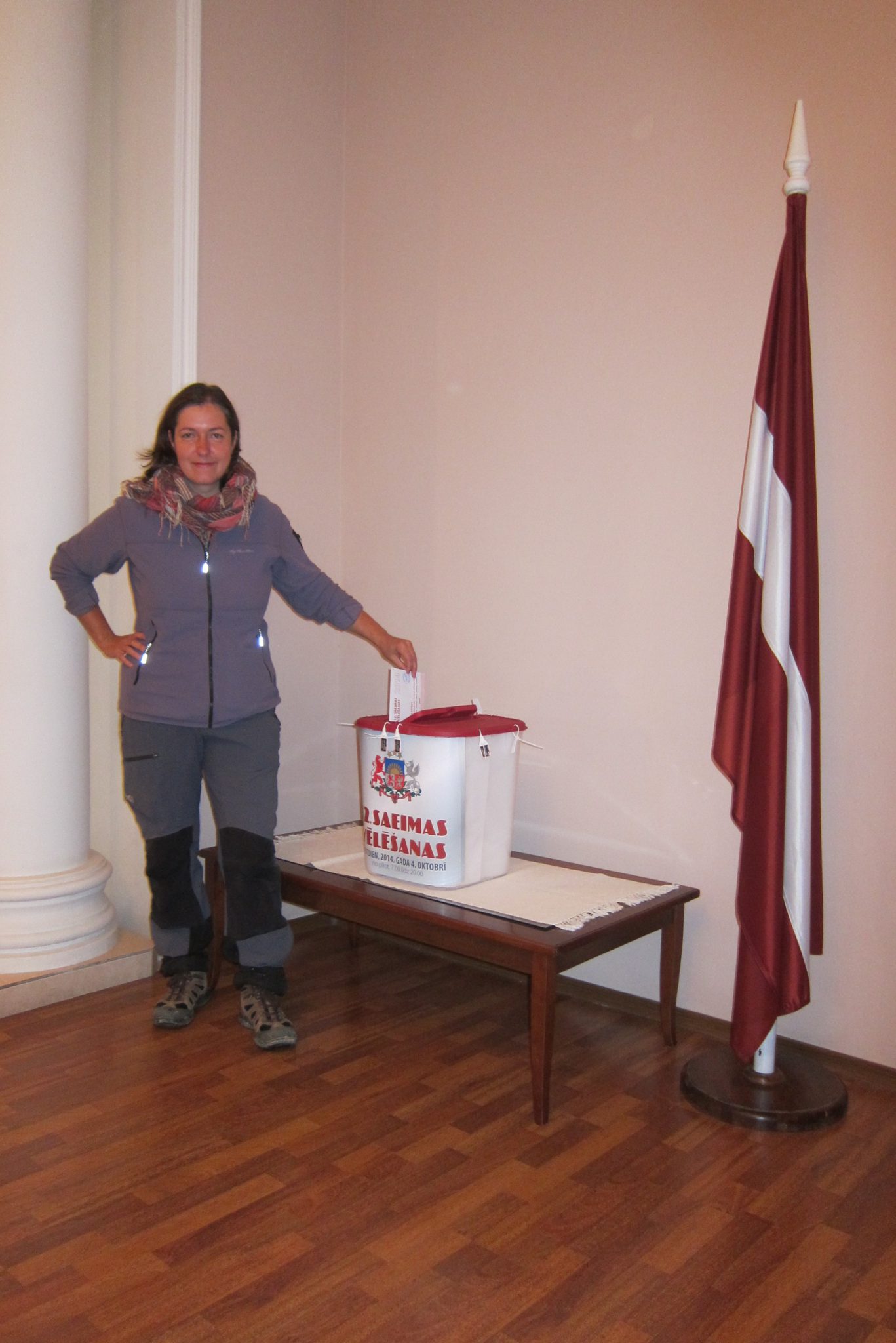 Visas jezgas rezultātā taksi noķeru 15 minūtes vēlāk nekā biju cerējusi. Tomēr mans šoferis ir ātrs un attapīgs, tāpēc precīzi 7:30, kā bijām sarunājuši ar Ivaru, pieripoju pie Latvijas vēstniecības vārtiem. Mazas drošības saliņas lielajā Uzbekistānā, kur skan dzimtā valoda un kur šodien var nobalsot. Cerēju, ka būšu pirmais balsotājs Taškentā un tā arī ir. Darbiniece izvelk baltu reģistrācijas lapu, piefiksē mani un izsniedz lapiņu kaudzi un aploksni. Balsošana veicas ātri un pāris minūtēs pilsoņa pienākums izpildīts. Pēc dažām minūtēm ierodas otrais vēstniecības klients – Ivars. Arī viņš tiek galā zibenīgi un varam doties stacijas virzienā un tālāk uz Samarkandu.