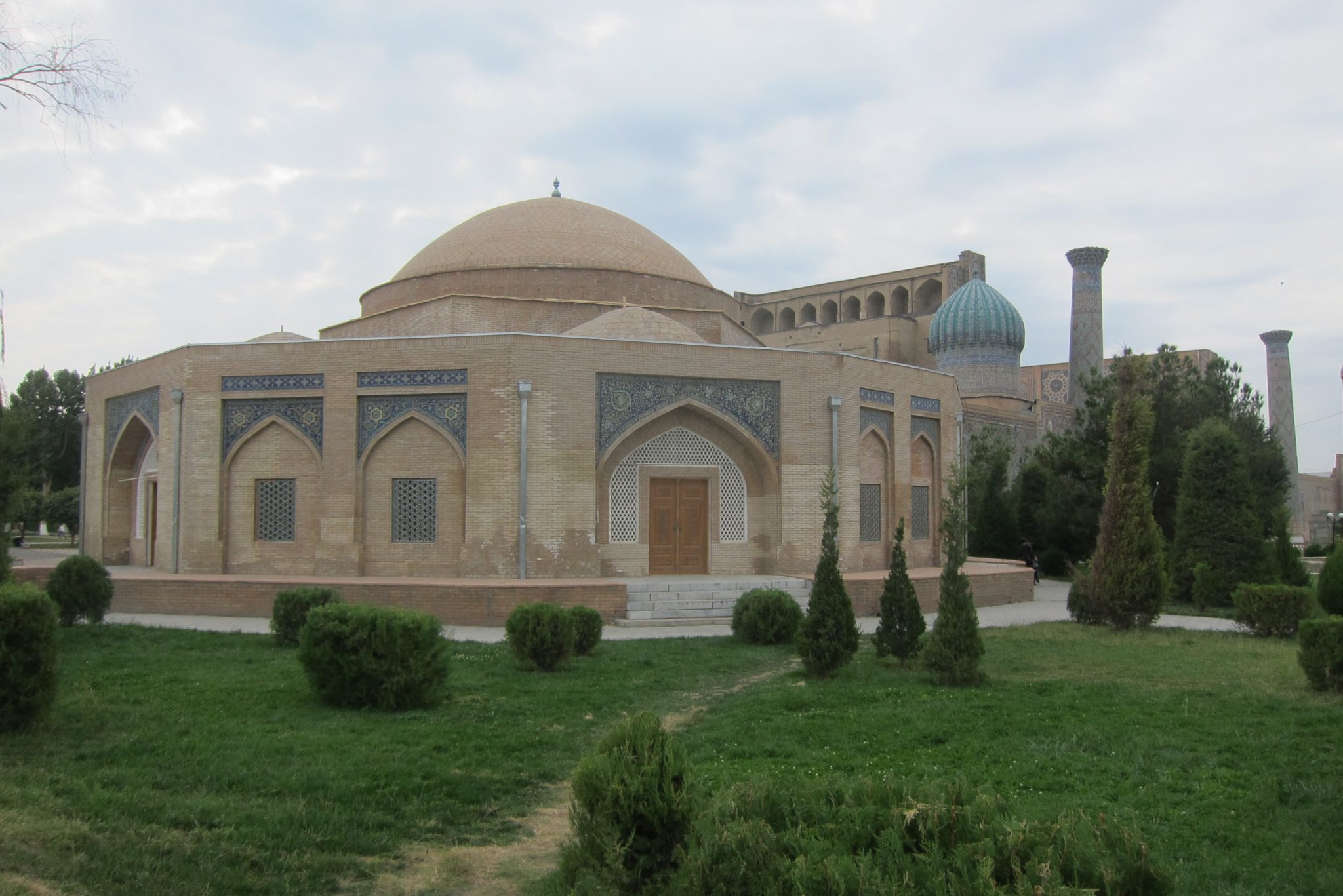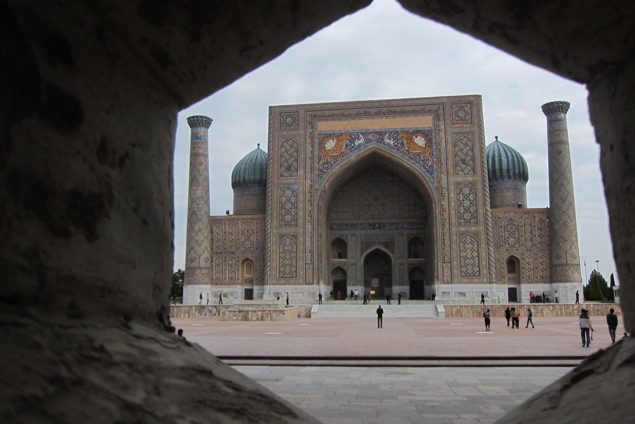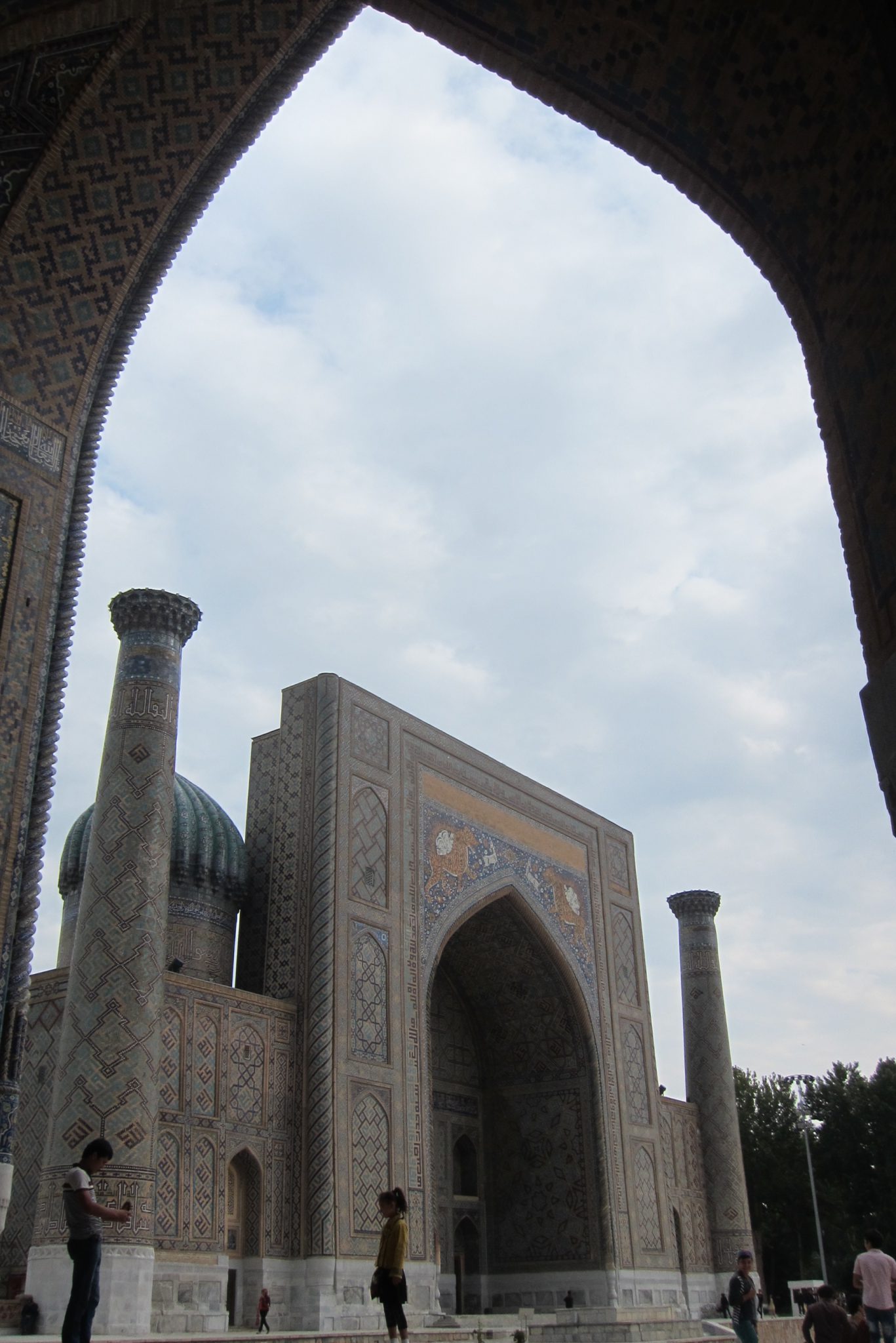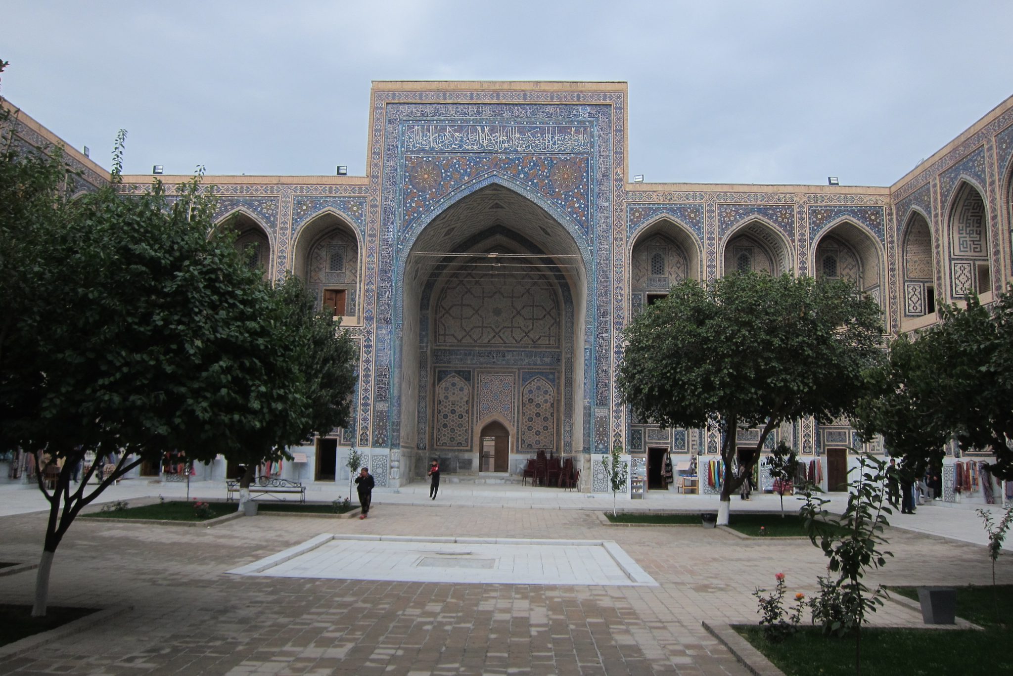 Pietuvojoties hostelim, parādās itin glītas un pamatīga izmēra mošejas – šejienes simbols un lepnums. Aši tikuši pie istabas par 25 dolāriem un nogalinājuši internetu, dodamies aplūkot vēsturi. Ieejam vēsturiskajā kompleksā no sava hosteļa puses un mums priekšā parādās sēta ar slēgtiem vārtiņiem. “Vai no šīs puses nevar tikt iekšā?”, Ivars prasa sargam, jo galu beigās slinkums iet apkārt. Varot. Ieejas biļete maksājot 16 500 somus, viņš varot ielaist pa 12 000. “Pa 10 000 arī vari?”, man izsprūk teju automātiski. Varot. Tā nu mēs atbalstām Uzbekistānas ēnu ekonomiku un ietaupām uz abiem 13 000. Pēc iekšā tikšanas gan mūs pārņem sajūta, ka sargs mūs izjokojis, un nekādas ieejas maksas te nav vispār, tomēr beigās pamanām kases būdiņu. Tomēr – vai esam ietaupījuši vai pārmaksājuši – nezinu joprojām.