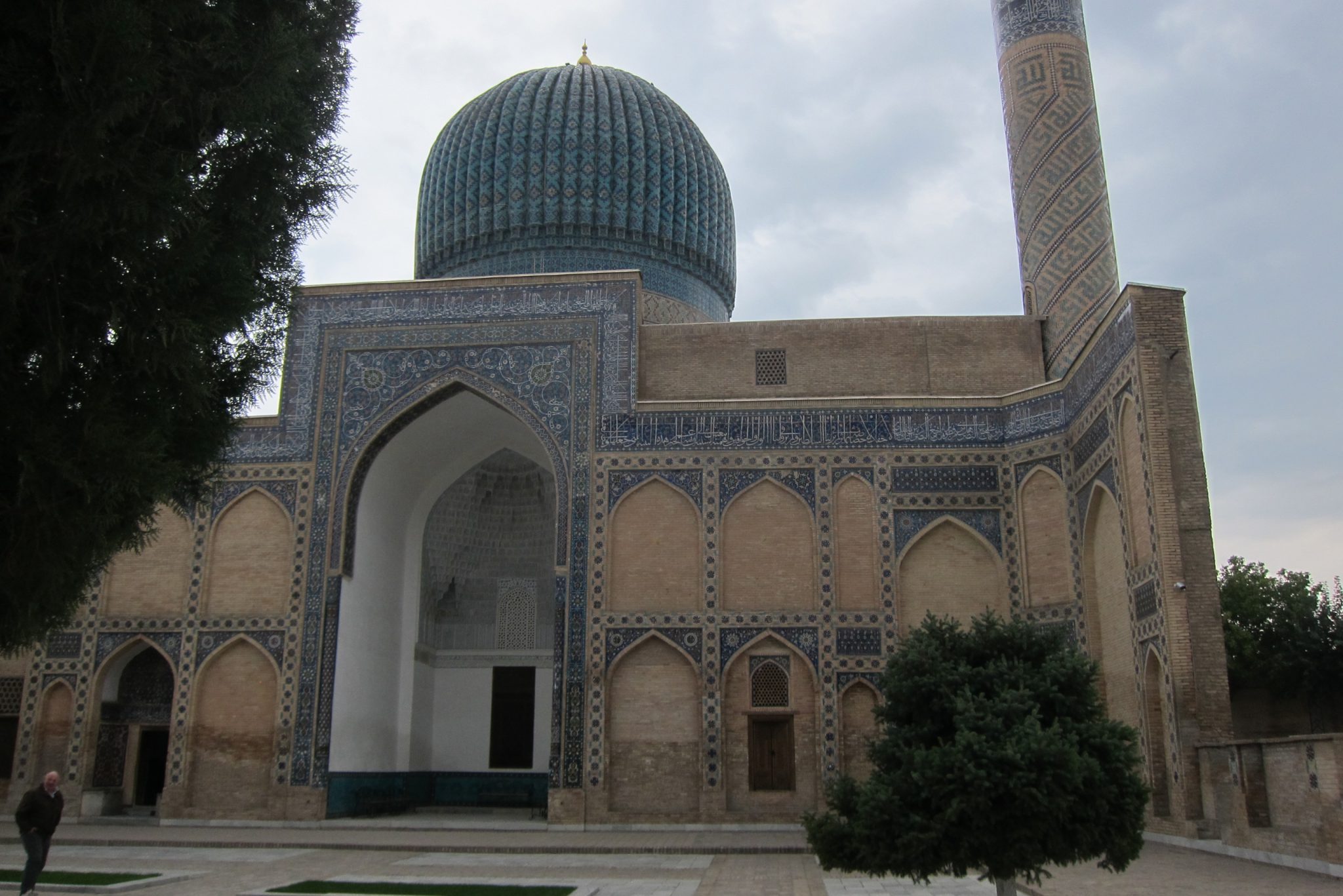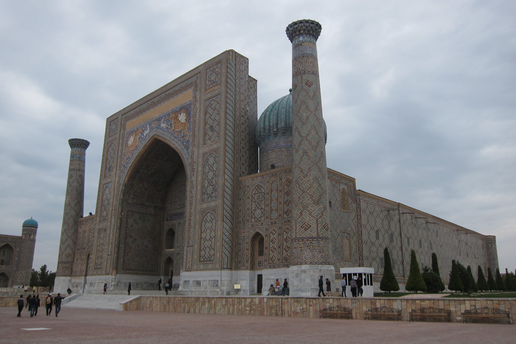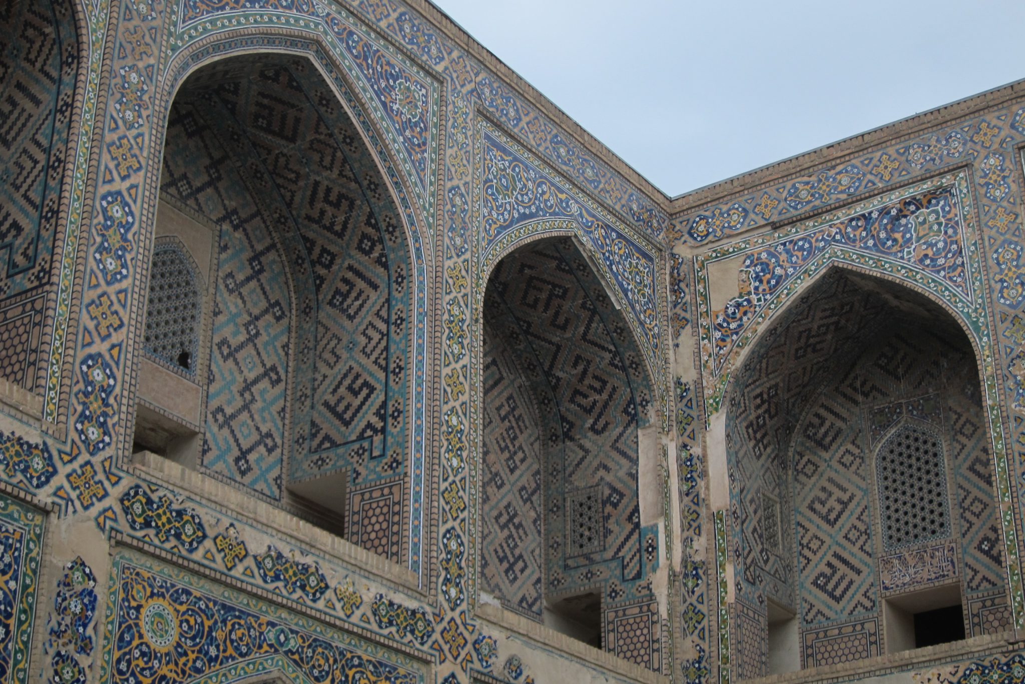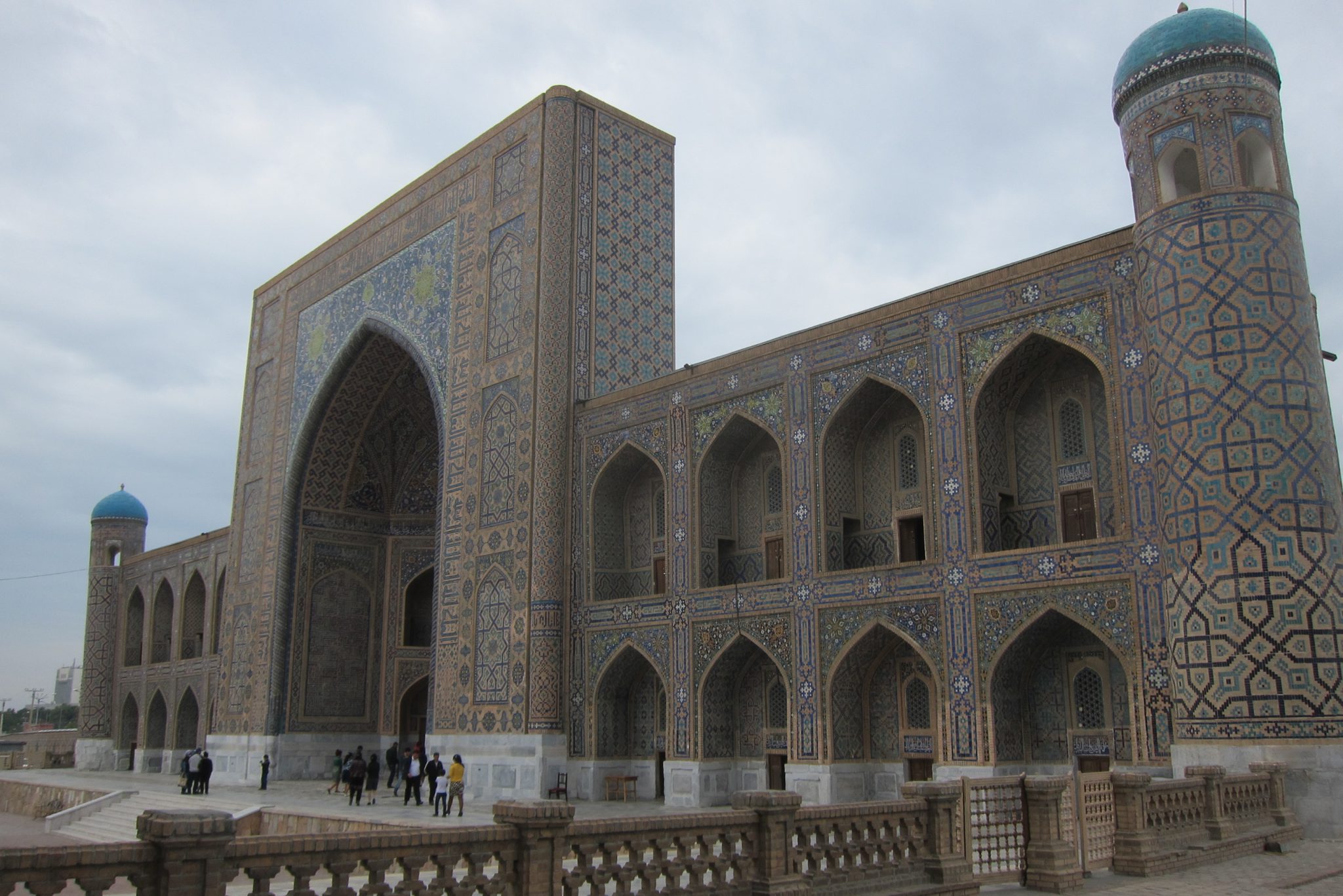 Pietuvojoties hostelim, parādās itin glītas un pamatīga izmēra mošejas – šejienes simbols un lepnums. Aši tikuši pie istabas par 25 dolāriem un nogalinājuši internetu, dodamies aplūkot vēsturi. Ieejam vēsturiskajā kompleksā no sava hosteļa puses un mums priekšā parādās sēta ar slēgtiem vārtiņiem. “Vai no šīs puses nevar tikt iekšā?”, Ivars prasa sargam, jo galu beigās slinkums iet apkārt. Varot. Ieejas biļete maksājot 16 500 somus, viņš varot ielaist pa 12 000. “Pa 10 000 arī vari?”, man izsprūk teju automātiski. Varot. Tā nu mēs atbalstām Uzbekistānas ēnu ekonomiku un ietaupām uz abiem 13 000. Pēc iekšā tikšanas gan mūs pārņem sajūta, ka sargs mūs izjokojis, un nekādas ieejas maksas te nav vispār, tomēr beigās pamanām kases būdiņu. Tomēr – vai esam ietaupījuši vai pārmaksājuši – nezinu joprojām.