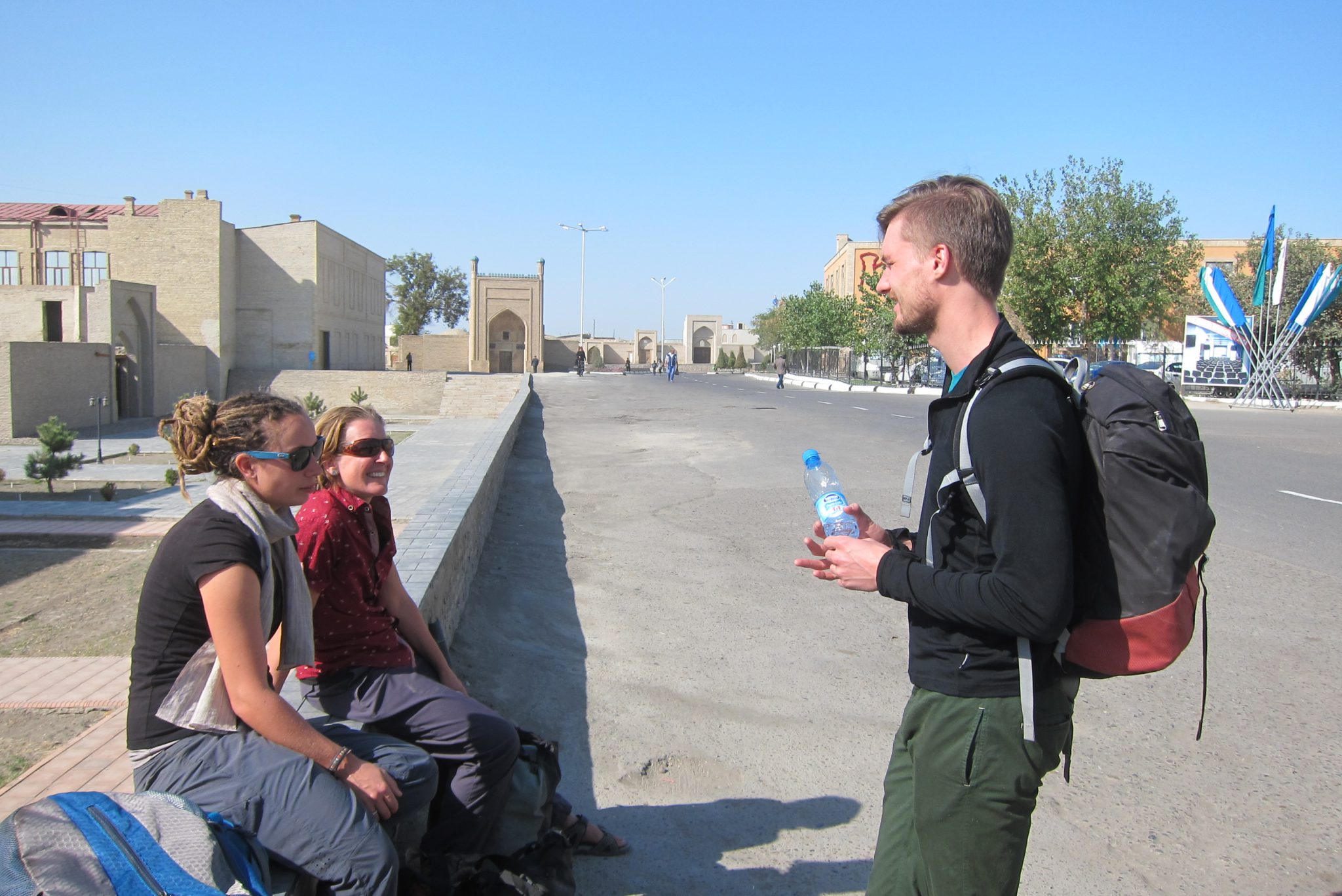 Aizejam līdz centrālajam skvēram un mēģinām izzīlēt – kur šeit ir mikroautobusa pietura. Ielas malā jau piesēdušas divas importa sievietes un aprunājušies uzzinām, ka arī viņas gaida mikroautobusu. Kādu laiciņu tāpat vien pļāpājam – sievietes ir no Austrālijas un ceļo ar velosipēdiem. Vienā brīdī Ivars man latviski pauž aizdomas, ka, kopš mēs te stāvam, garām nav pabraukusi neviena mašīna. Tas, viņaprāt, ir aizdomīgi un varbūt mums vajadzētu kaut kur paieties.