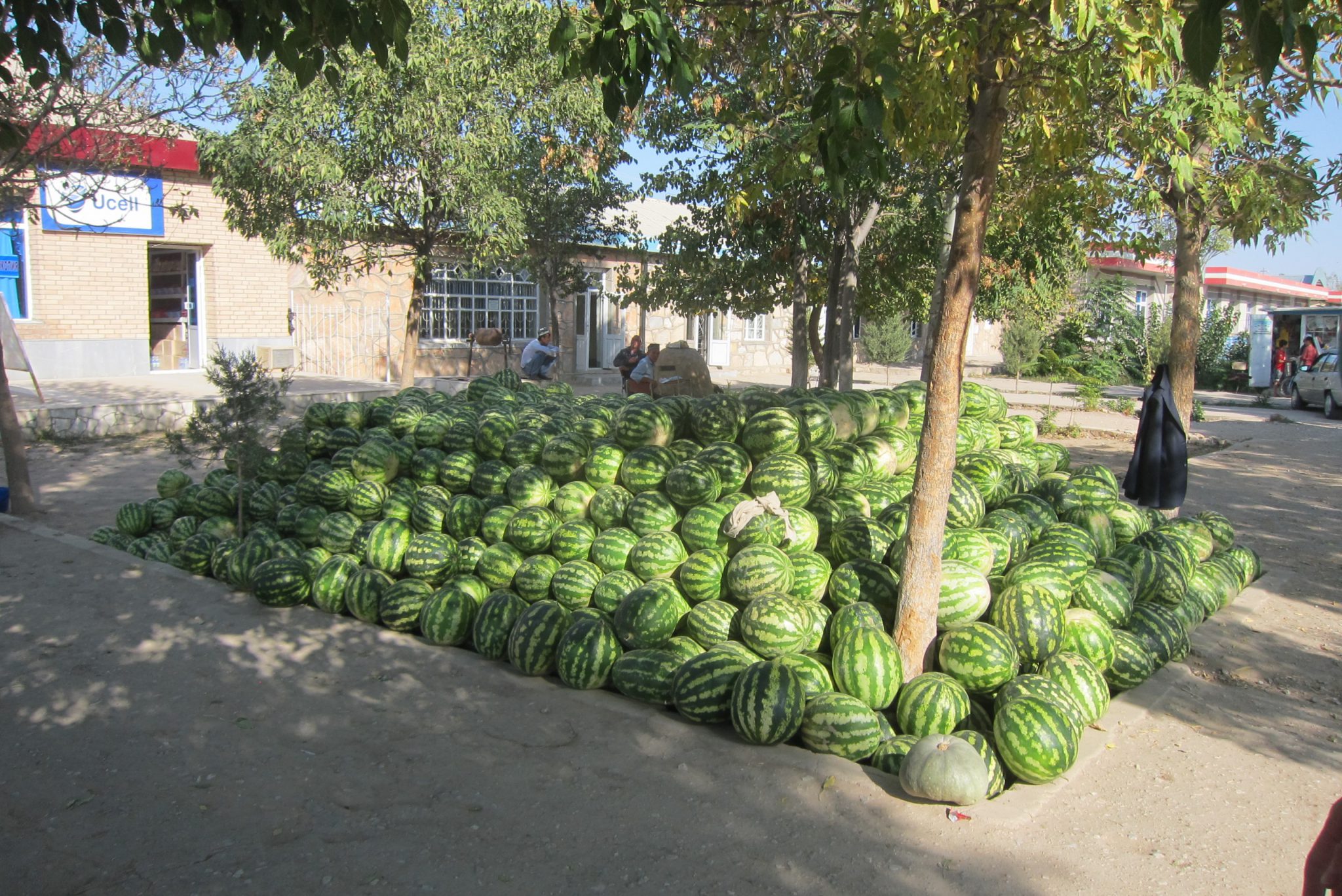 Atgriežoties veči neko īpaši gudrāku nav izsprieduši. Labi, novienojamies, ka šoferis par 50 000 aizvedīs mūs līdz kādai palikšanas vietai pie ezera. Pirms kāpjam auto, gribas nopirkt nelielu arbūzu vakaram. Ivars izvēlas tādu arbūza bērniņu un mēs prasām saimniekam – “Cik?”. “Ai,” viņš atmet ar roku, “Padarok!”. Pateicamies un laižam uz ezeru.