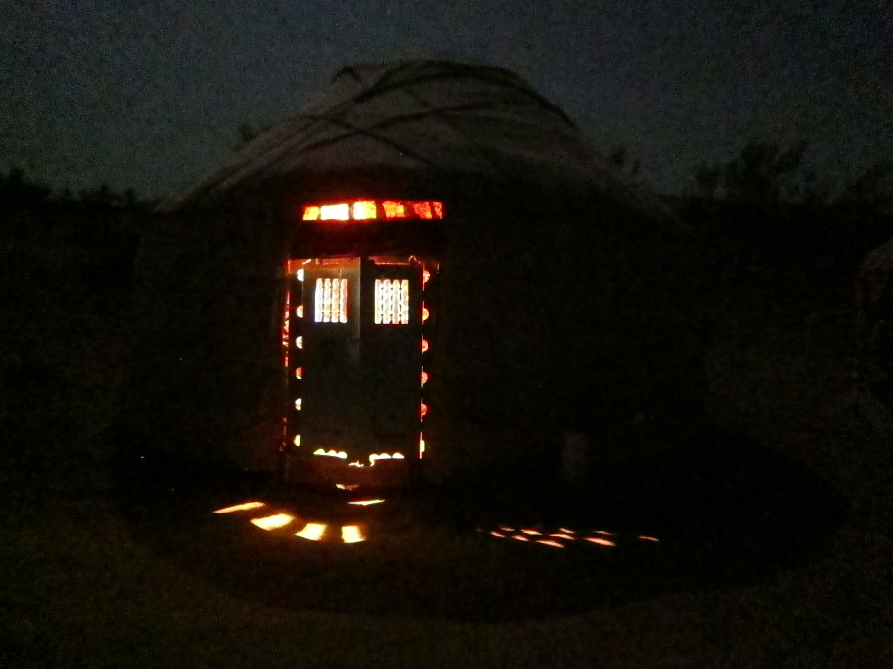 Pēc vakariņām visi tiek aicināti ap ugunskuru, pie kura vietējais dziesminieks spēlē un dzied – pirmās dziesmas ir par mīlestību un tās ir skumjas. Vēlāk ritmi top ašāki, bet līdz dejām tomēr šī publika nepavelk. Ar aplausiem pateikušies par priekšnesumu, vēl mirkli vakarējam ugunskura siltumā. Man, kā parasti, uguns un alkohola kombinācija atver dziedāšanas čakru un es klusītēm bubinu skumjās latviešu dziesmas. Vienai no tām arī Ivars zina vārdus un mēs laikam kļūstam drusku skaļāki. Vienā brīdī francūži apklust, bet arī mēs sakautrējamies. Vismaz es nejūtos gatava publiskai performancei. Francūži lēnām izklīst un pēc brīža arī mēs šļūcam savas jurtas virzienā. Nakts ir vēsa, bet ielienot guļammaisā un apsedzoties ar divām biezajām segām, ir omulīgi. Vēl aizmiegot nosūtu kosmosam pateicības domu par šodienu. Un – lai dzīvo intuīcija (bļeģ).