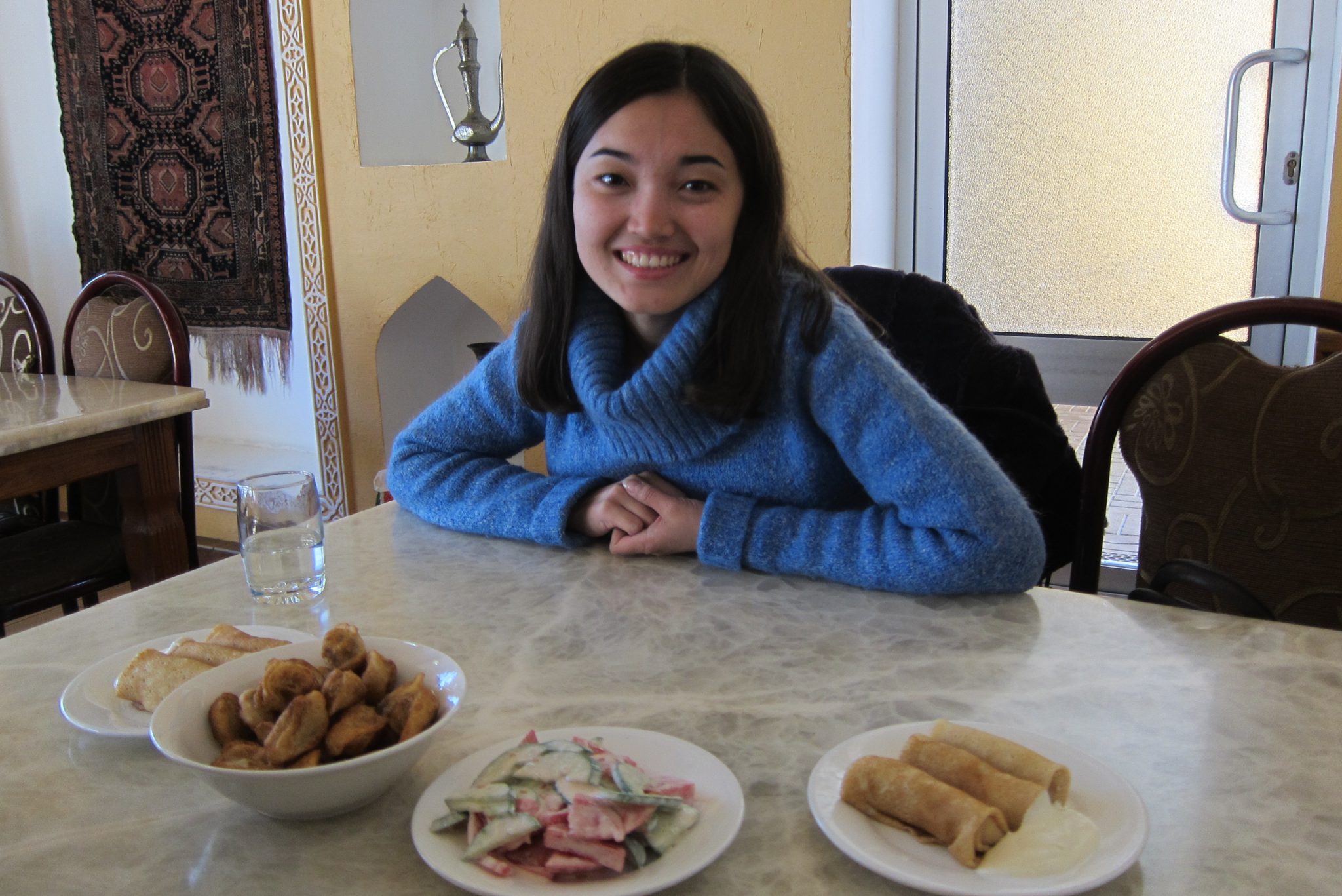 Brokastīm viņai laiks atrodas un mēs piestājam pie vietas, kas vietējo vidū slavena ar diviem faktoriem – šejienes šefpavārs saņemot 6000 dolāru algu un šeit pēc ēdiena tiek izsniegtas Orbit košļenes. Bet, protams, galvenais – šeit labi gatavo, par ko pārliecināmies arī mēs. Aidana rīta agrumā neskādē boršču, bet mēs paņemam pankūkas, jo kaut ko tādu neesam šī ceļojuma laikā vēl ēduši. Uzzinājusi, ka mums šodien nekādu dižo plānu nav, Aidana ierosina mums apmeklēt filmu “Kurmandžan Datka – kalnu karaliene”. Būšot ar krievu titriem, bet katram gadījumam viņa īsumā izstāsta arī sižetu. Nesen iznākusī filma ir par kirgīzu tautas vēsturi un balstīta patiesos notikumos. Solāmies apsvērt šo iespēju.