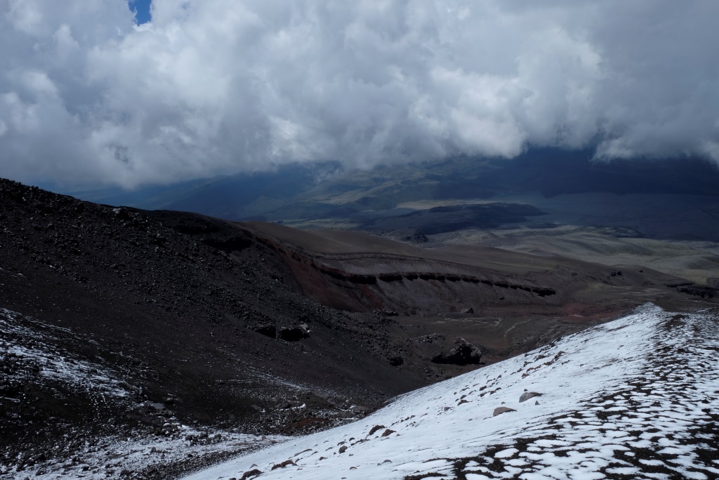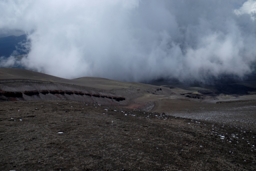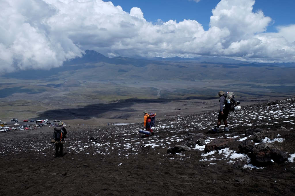 Man ir sajūta, ka esam pabraukuši garām Kotapaksi vulkānam. Sāku klapēt pa stiklu, aiz kura sēd šoferis un konduktors, norobežoti no pārējiem pasažieriem. Ieraugot mani, konduktora sejā pavīd tāda „ai, fāk” izteiksme, ko papildina žests, piesitot plaukstu pie pieres. Viņš pat varētu neko neteikt, man tāpat viss ir skaidrs – jauneklis aizmirsis apstādināt autobusu un izlaist mani pie ceļa, kas ved uz vulkānu. Tad nu viņi izsēdina mani tepat uz šosejas, pie autoceļa maksas barjerām. Tur dežūrējošais policists, sapratis manu bēdu, palīdz apstādināt autobusu atpakaļvirzienā. Nekur tu nemuksi no manis, sniegotais milzi.