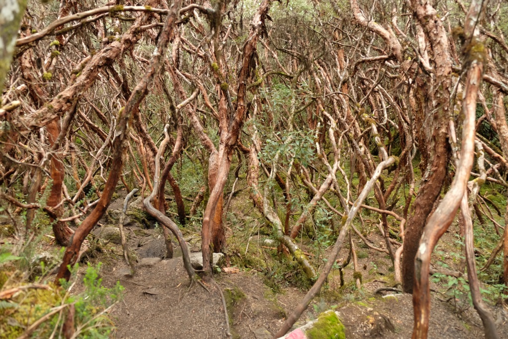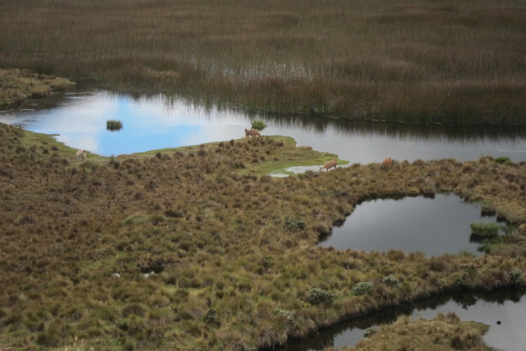 Dodamies ceļā – mēs mērosim vieglāko šejienes maršrutu, kas ir nedaudz vairāk kā 4 kilometri. Tāds nieks vien ir, bet jāatceras, ka atrodamies 4000 metrus virs jūras līmeņa. Tomēr šobrīd pārvietoties ir krietni vieglāk nekā pirmajās dienās – ķermenis tiešām piemērojas apstākļiem. Parks ir pasakains – lagūnas, kalni, nepazīstamas puķes (viena no tām augot tikai šajā vietā) un visāda dzīvā radība. Piesēdušas atpūtas pauzē, vērojam gar lagūnas krastu klīstam septiņas lamas (vai lamām līdzīgus dzīvniekus), kas grauž zāli, mēs graužam riekstus un priecājamies.