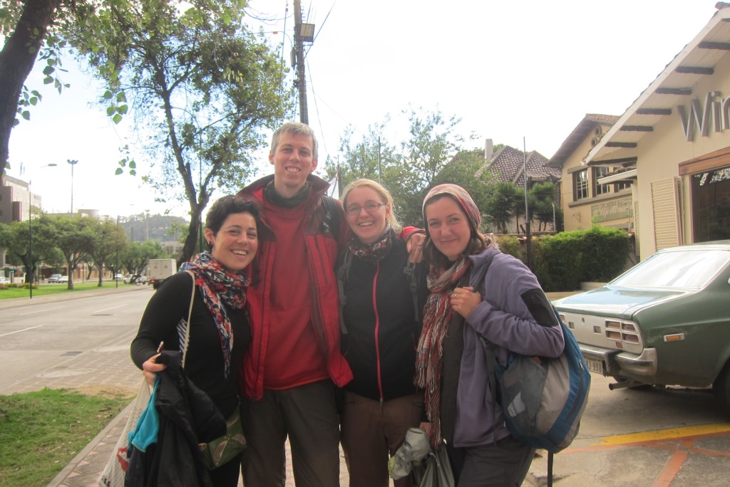Pamatīgi izmirkuši, sasniedzam šoseju un aizčāpojam līdz autobusa pieturai. Pa ceļam mēģinām nostopēt kādu transportu, bet neizskatās, ka kāds gribētu kompānijā četrus slapjus radījumus. Stāvam, salstam un gaidām autobusu. Īpaši ne uz ko necerot, tomēr paceļu roku, jo tuvojas vairākas mašīnas. Tavu brīnumu – viena no tām tomēr apstājas. Jā, uz Cuencu – leciet tik iekšā. Mēs sametam mugursomas bagāžniekā un iespiežamies mazajā auto. Jau pēc pāris minūtēm Amaija ir iegrimusi sarunā ar šoferi – arī viņš izrādās no Spānijas. Es, savukārt, iztaujāju vācu pāri, jo viņi tikko atbraukuši no Peru – manas jaunās nākamās valsts. Laipnais šoferis mūs atved līdz namdurvīm un šoreiz – pilnīgi par brīvu. Sirsnīgi pateicamies un aši dodamies pie sausām drēbēm.