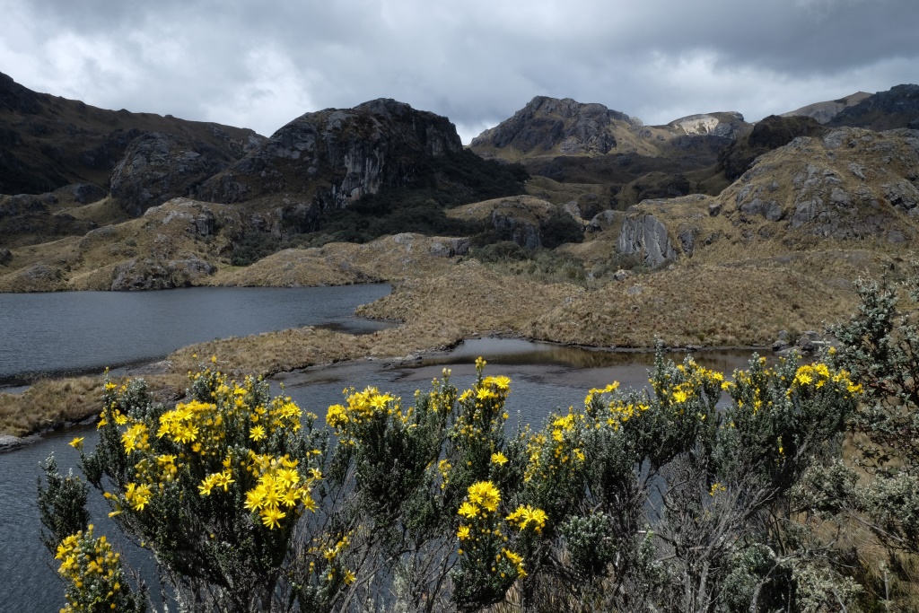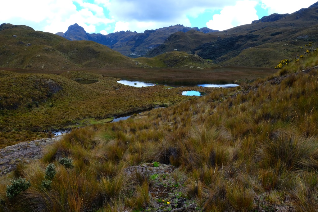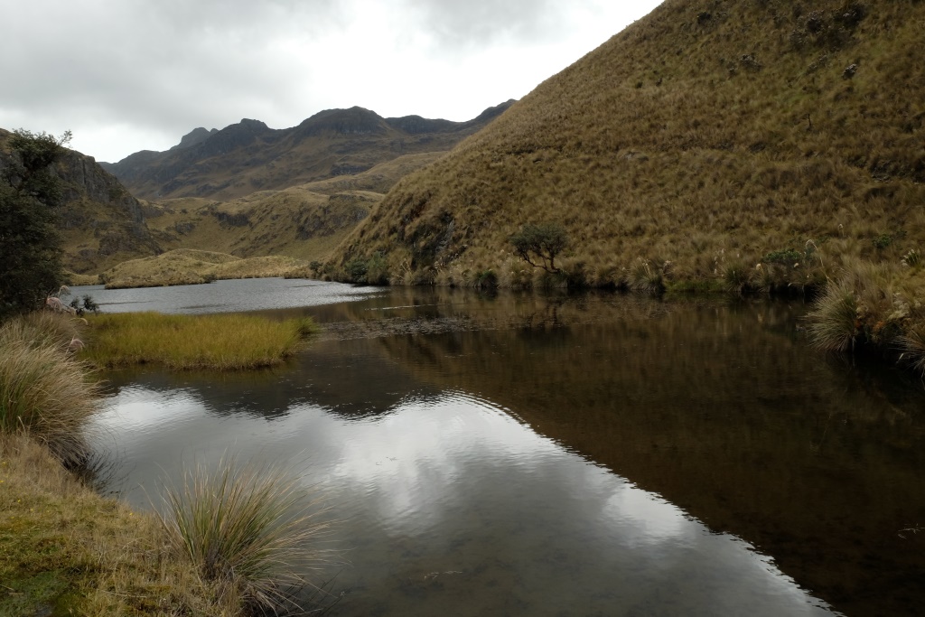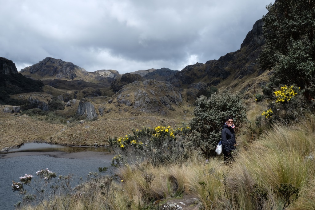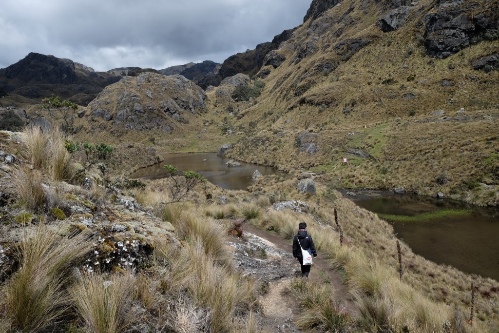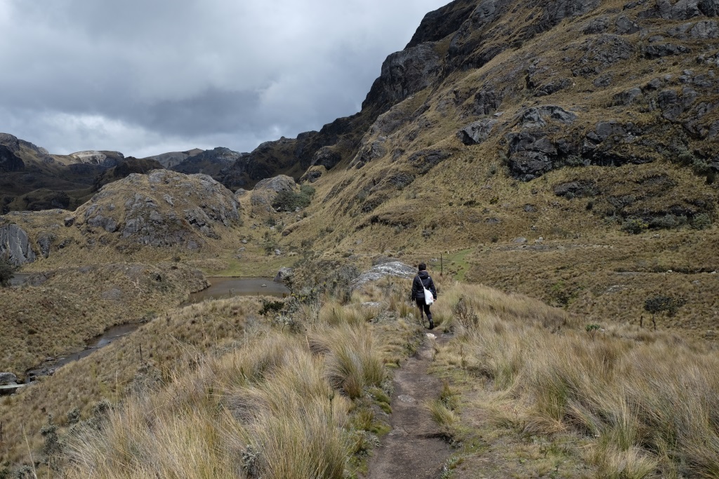 „Ekvadorā vienmēr jābūt līdzi divām lietām”, saku Amaijai, „pretiedeguma krēmam un lietusmētelim”. Mēs dzeram kafiju pirms došanās pārgājienā pa Cajas nacionālo parku un es cītīgi iesmērējos ar krēmu. Saule šeit ir patiešām nikna – pirmajās ceļojuma dienās pastaigājos bez galvassegas, tagad man matus rotā ādas plēksnes, kas nāk nost no „celiņa” – mataino daļu ar krēmu neiesmērēsi un vēl nebiju pietiekami novērtējusi saules spēku, lai piesegtu galvu, kolīdz parādās pirmie tieši saules stari.
