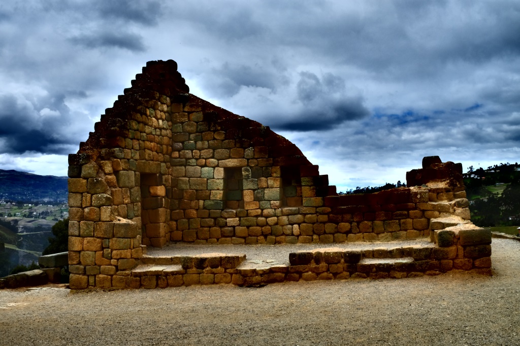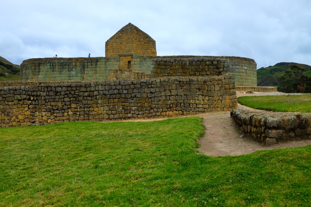 Jau astoņos no rīta sēžam autobusā un Ingapircu – lielākajām inku atstātajām drupām Ekvadorā. Vienīgā celtne, kas daļēji saglabājusies, ir elipses veida Saules templis, celts no iezaļganiem akmeņiem. Vēl krietni pirms inkiem te plosījušies canari ļaudis, tāpēc te īsti nav saprotams – kuras ir canari, kuras inku izdarības. Bet katrā ziņā komplekss kādreiz bijis varens, te notikuši Saulgriežu un citi rituāli, arī šodien vēl ļaudis te mēdzot svinēt svētkus.