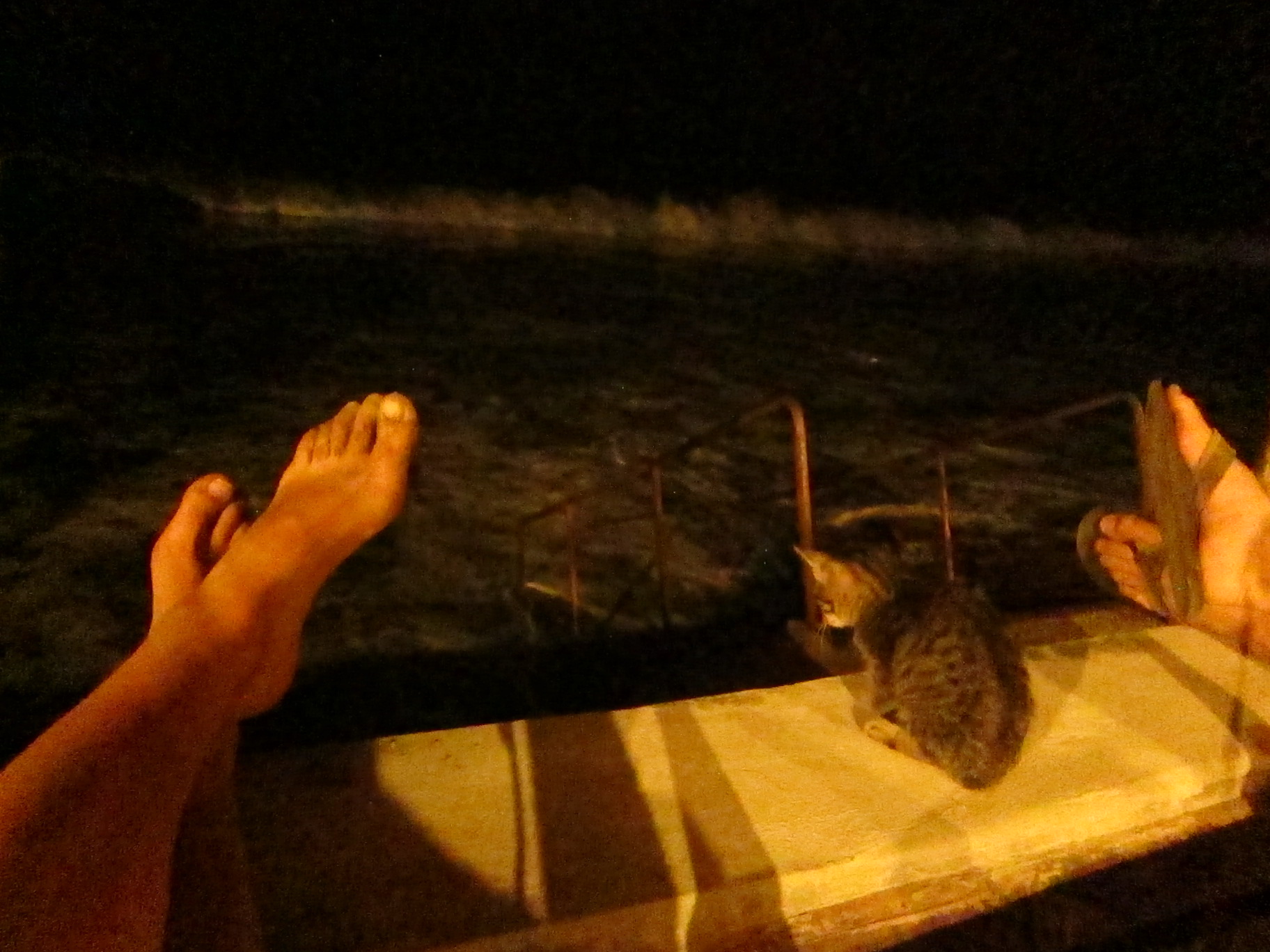 Atpakaļceļā ieskatāmies viesnīcā, kas atrodas tieši pretī mūsējai. Tā atrodas pašā okeāna krastā un milzīgajā terasē nav neviena cilvēka. „Zini, ko”, saku Deividam, „es šeit gribētu iedzert vienu alu pirms miega”. Deivids piekrīt šādai domai un, tā kā šeit vairs neko nepārdot, aizejam līdz veikalam, nopērkam pa alum un apsēžamies terases malā. Uzstutējam kājas gaisā, Deividam klēpī iekārtojas kucēns, es ķerstu kaķus, malkojam alu un nopriežam, ka rīt pārvāksimies uz šejieni – izskatās pēc pareizās vietas, kur noskatīties saulrietu. Bet arī šonakt šeit ir pasakaini – okeāns tumsā uzšķiļ sniegbaltus putu vālus, zvaigznes ir piespamojušas visu debess jumu. Noeju lejā un iekāpju siltajā okeānā. Šai brīdī laiks apstājas, bet, kad tas iedomājas atkal kustēt, kārtējais vilnis to sašķaida sīkās drumslās un aizskalo līdzi sev okeāna dzelmē.