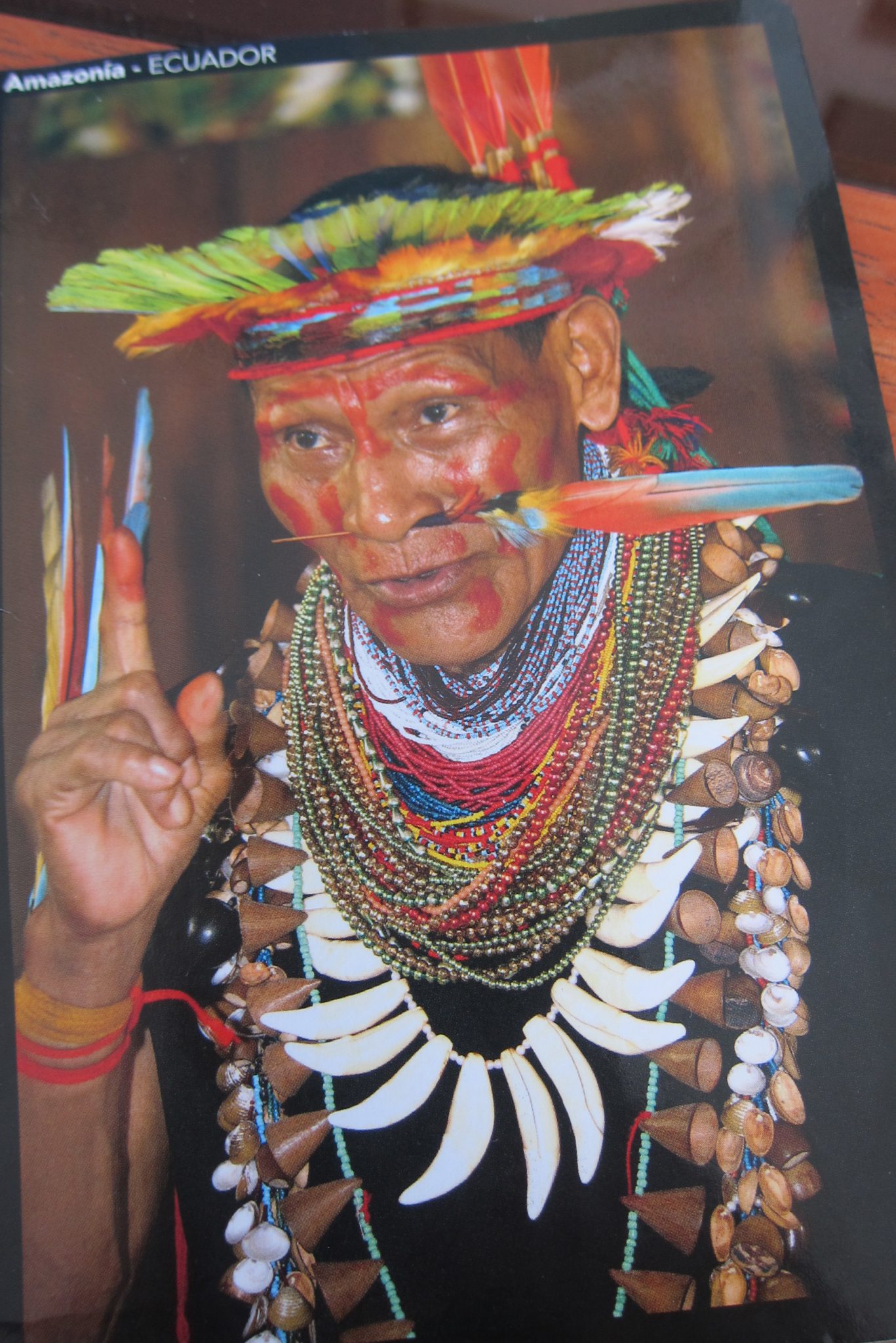 Taksī prasu šoferim, vai uz robežas varētu būt pastkaste, gribu vēl nosūtīt kāda īpašam cilvēkam pastkarti no Ekvadoras. Šis nesaprot, ko gribu, vēršos pie ekvadotiešu puiša, kas labi runā abās valodās, pēc palīdzības. Tomēr šis, nevis sāk runāt ar šoferi, bet ieraudzījis pastkarti, no sajūsmas palecas sēdeklī. Kur tu to ņēmi? Zini, kas ir? Nu, nu. „Es šito džeku labi pazīstu, kopā ar viņu dzīvoju džungļos. Tas ir vietējais šamanis, kas visādas dziras mācēja jaukt”, ekvadorietis priecīgi stāsta. Pirms diviem gadiem gan šamanis esot nomiris – nenoskaidroju, vai no dziru lietošanas vai vecuma.