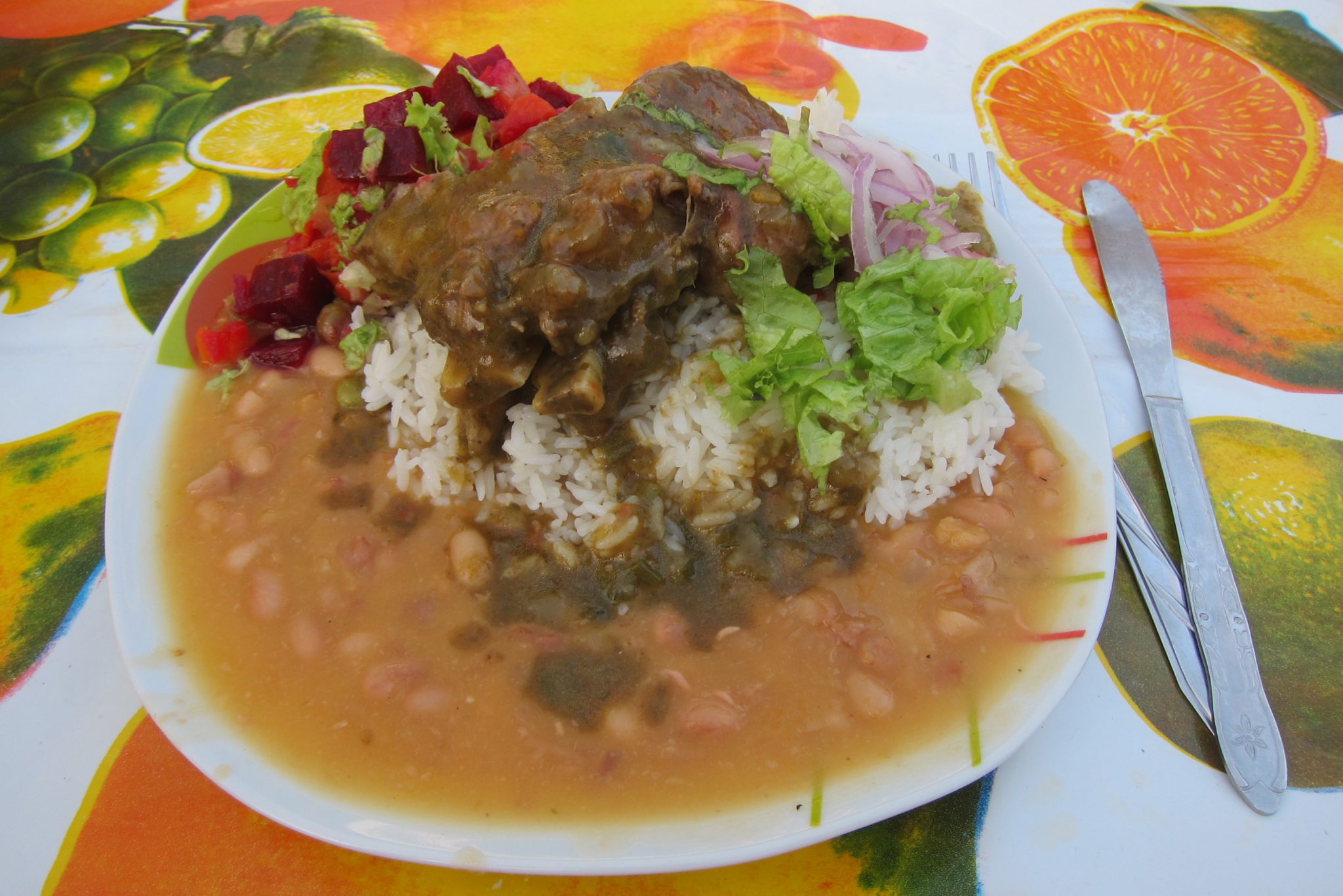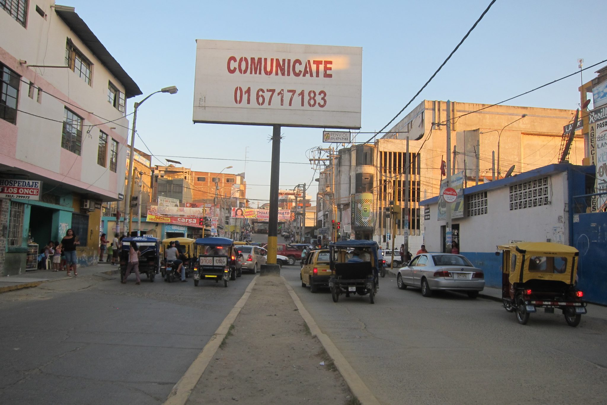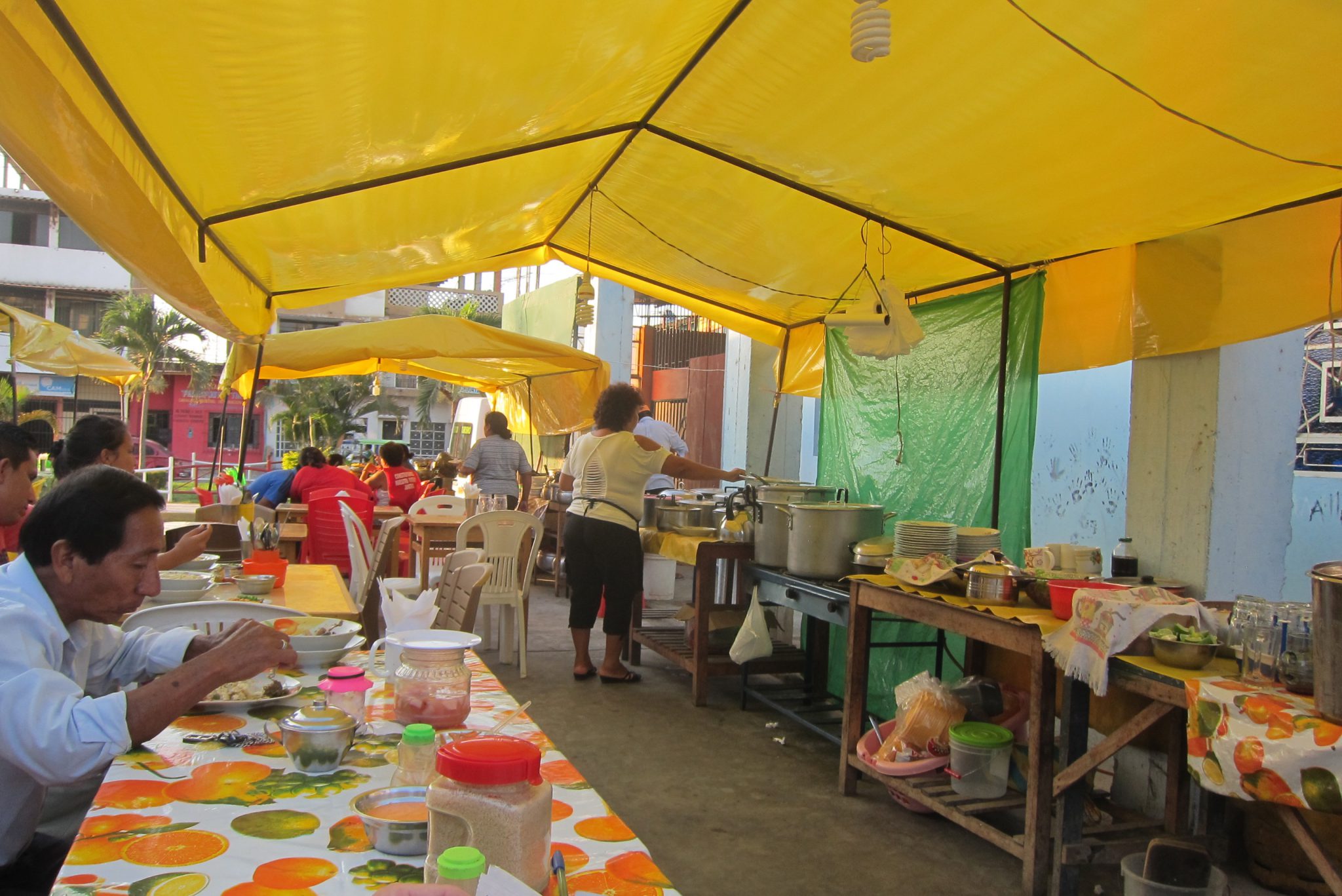Drīz jau klāt ir Ekvadoras – Peru robeža. Pie viena lodziņa izčekojies no Ekvadoras, blakus lodziņā iečekojies Peru – simple as that. Mūsu ceļabiedriem gan kaut kas nav kārtībā ar papīriem un šie saka, lai mēs negaidām un braucam tālāk. Tā arī darām. Divatā taksis sanāk dārgāks, bet tas tāpat ir uz pusi labāk, nekā tad, ja man būtu jānosedz visa summa vienai. Tiekam aizvesti līdz tuvākajai pilsētai Tumbes, tur, ieturējuši pirmo maltīti Peru, kāpjam busiņā un astoņos vakarā beidzot esam šodienas galamērķī Mancorā. Atrodam uz dullo pabriesmīgu istabu ar internetu par 8 dolāriem un dodamies pilsētas apgaitā.