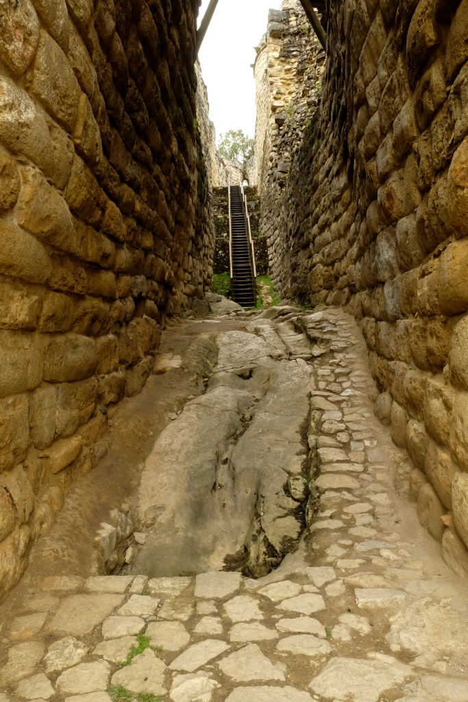 Gids stāsta diezgan interesanti, tomēr viņa melodiskais balss tonis tā vien mudina uz miegu, nevis informācijas uztveri – man jāiespringst pat uz angļu valodu. Šodien braucam uz Kuelap cietoksni. Tas bijis iespaidīgs komplekss, kura garums ir ap 600 metriem, tas uzbliezts 3000 metru augstumā virs jūras līmeņa. Lai uzceltu cietokšņa sienu un iekšpusē esošās aptuveni 400 celtnes, senajiem ļautiņiem vajadzēja krietni papūlēties. Lielākā daļa ēku bijušas cilindriskas – ticamākais skaidrojums tam ir šo ēku noturība pret zemestrīcēm. Jocīgi izskatās pats galvenais tintnīcas formas templis – tajā nav ieejas. Lai tiktu iekšā, cilvēki ievietojuši nelielos akmens robos koka stabus un pa tiem tikuši augšā. Gids saka, ka cietokšņa iekšpusē varētu būt mituši ap 3000 cilvēkiem, nerunājot par lamām, kuru pēdas vēl šodien saskatāmas stāvajos akmens ceļos, kas ved iekšā cietoksnī. Galvenā ieeja, ko daži nogribējušies arheologi šodien asociē ar vagīnu, kalpojusi tikai izredzētajiem – pārējie ļaudis un lamas pārvietojušies pa „kalpu vārtiem”. Mēs arī ieejam cietoksnī pa tiem, bet atpakaļ dodamies caur „vagīnu”.