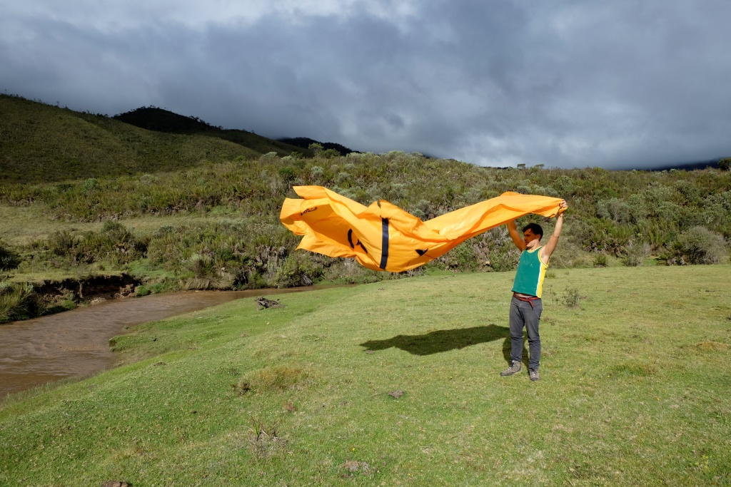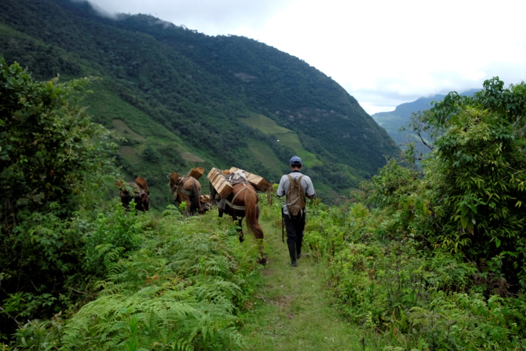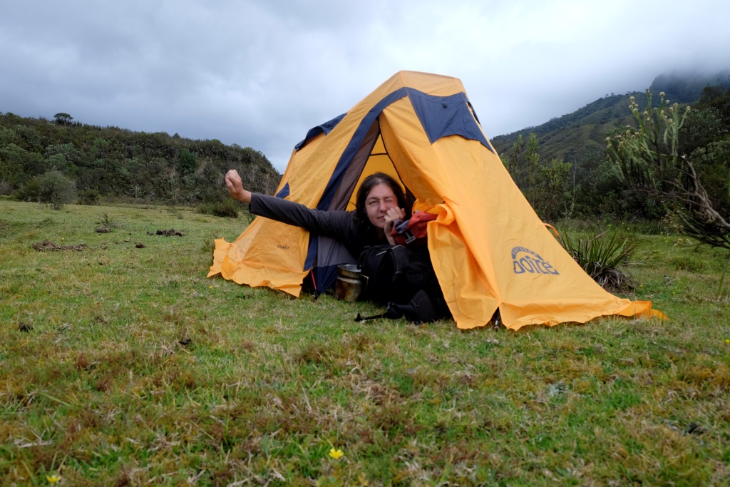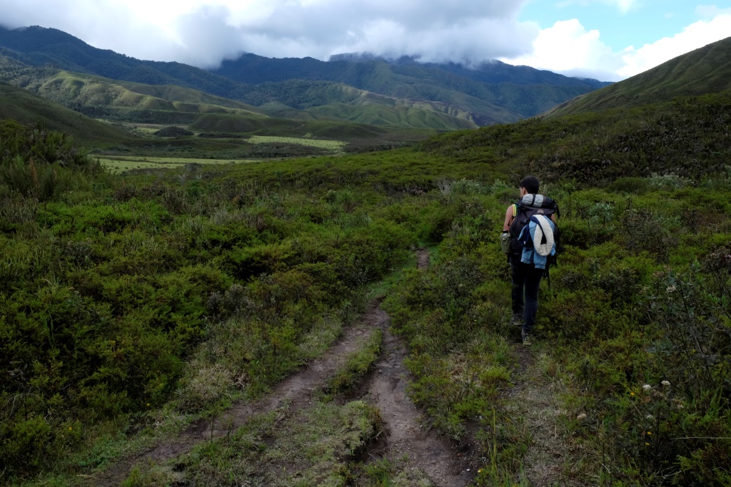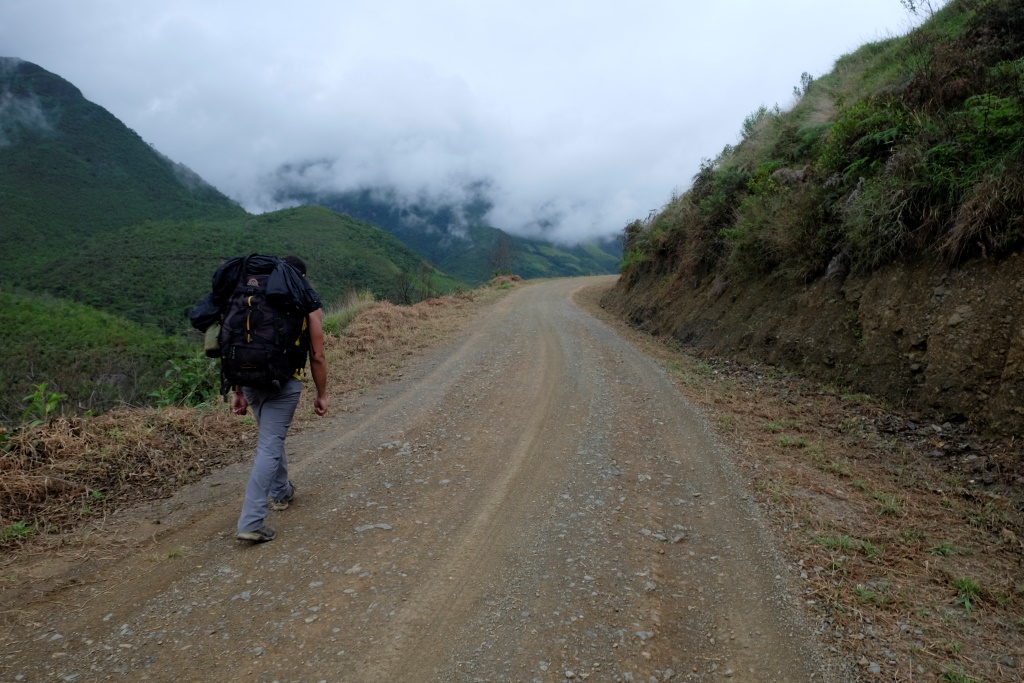 Lēzenais ceļa prieks nav ilgs, jau drīz taka atkal sāk vest kalnā. Šodienas apkaime gan krietni atšķiras no vakardienas – vakar gājām pa tipiskiem kalniem ar nelielu veģetāciju, bet šodien, par spīti vairāk kā 3000 metru augstumam, ejam pa džungļiem. Jo augstāk kāpjam, jo mitrāks kļūst. Tad mēs iebrienam mākoņos un caur miglu apkaimes džungļi izskatās vēl spocīgāk. Es negribu ēst brokastis, līdz neesam uzkāpuši līdz pārejai, bet netālu no kalna gala atrodu Čārliju, kurš vainīgi ēd avokado. „Man kaut ko vajadzēja apēst, ir teju pusdienlaiks”, viņš saka. Pirms mirkļa mums garām pagāja pāris vietējie uz zirgiem, šis apvaicājies, vai esmu vēl dzīva – pēc negulētās nakts mans kāpiena temps kļuvis vēl lēnāks. „Nemaz nepriecājies, esmu gan, tāpēc atdod manu pusi avokado”, ķircinu Čārliju un arī apsēžos ieturēties.