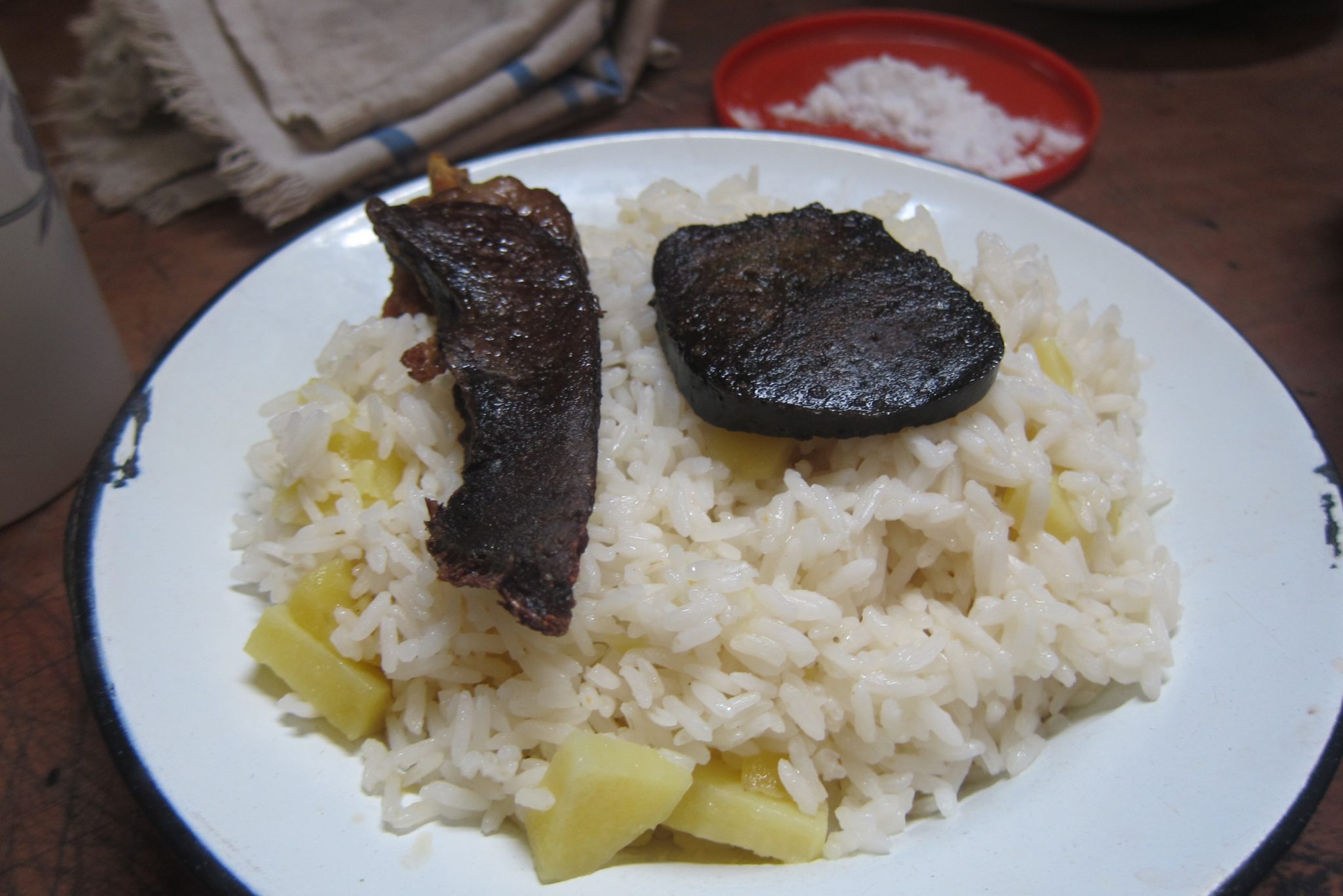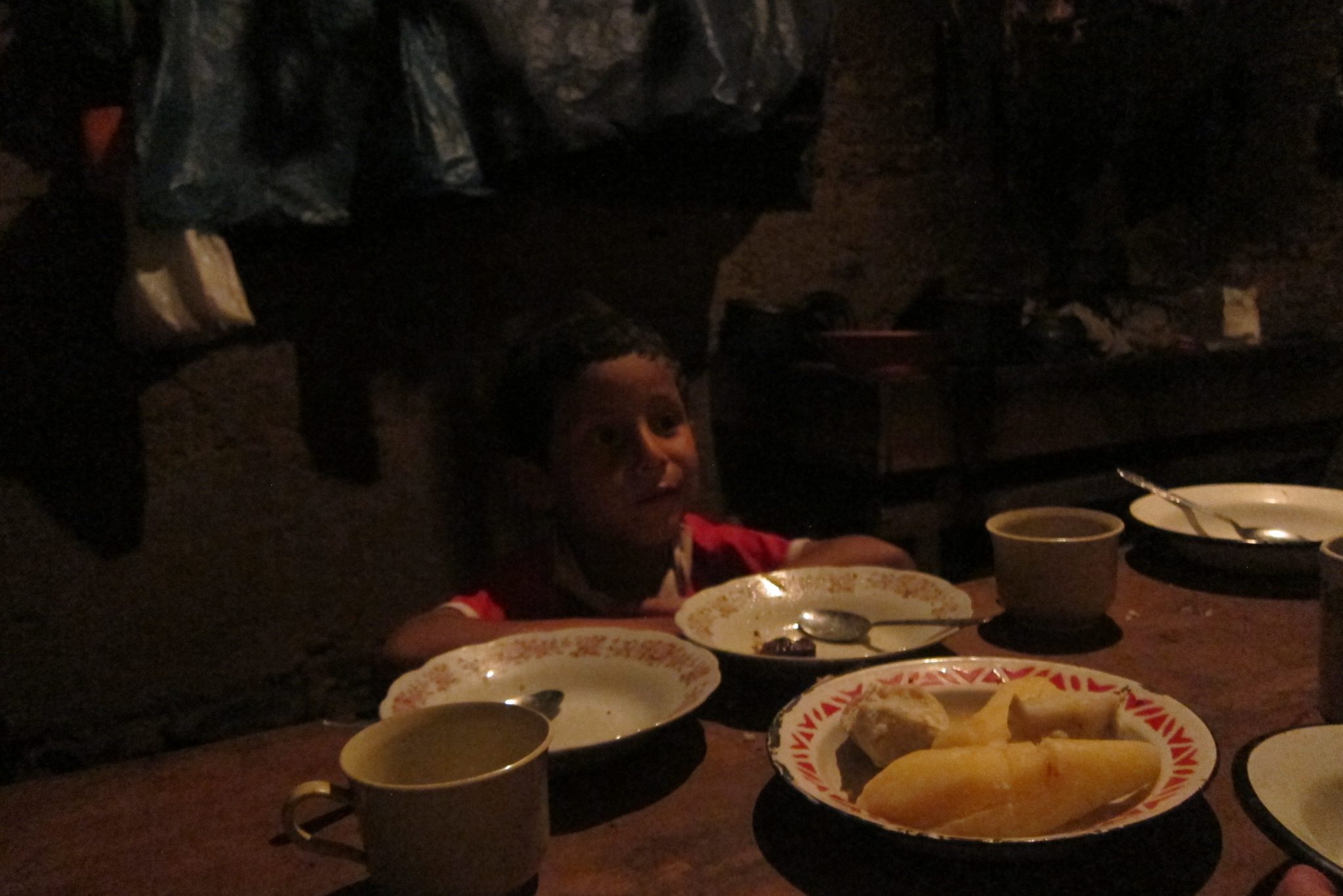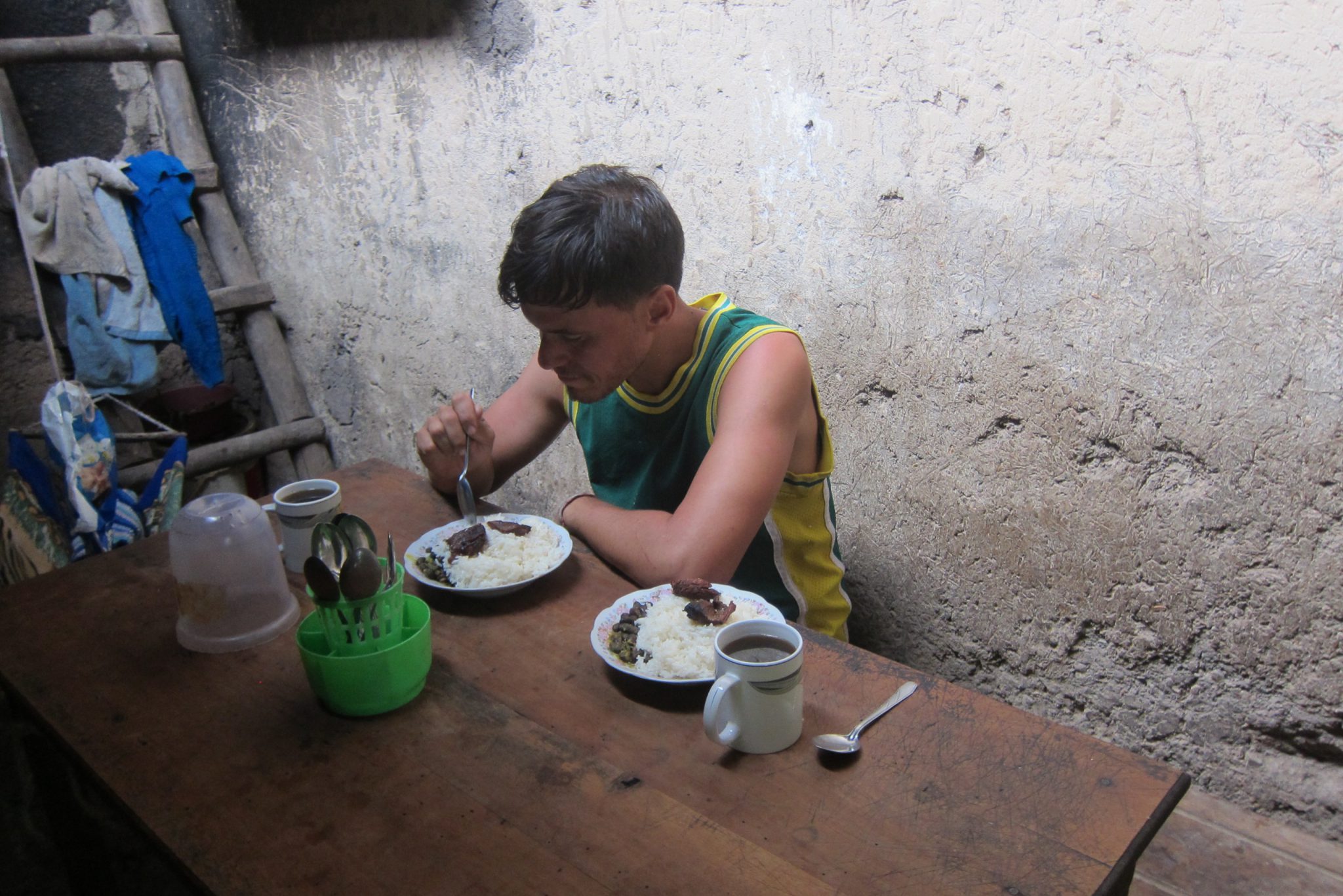 Kamēr mēs paaugstinām savus higiēnas standartus, Lēdija ir pagatavojusi mums pusdienas – rīsus ar pupiņām, kurus rotā pāris vītināti govs gaļas gabaliņi. Govi šie nokāvuši pagājušajā nedēļā, tāpēc visi tās iekšējie orgāni tagad tiek virtenē vītināti virs malkas plīts. Lēdija priecīgi rāda govs mēli, sirdi, zarnas un visus citus labumus. 23 gadus jaunā meitene atbild par šejienes pārtikas saimniecību. Uzkārusi uz muguras jaunāko atvasi, viņa žigli apkopj mājas soli. Vakarā, nospēlējies futbolu, pārnāk arī sešgadīgais dēls – Lēdija viņam kā kārumu izsniedz pāris vītinātās gaļas gabalus.
