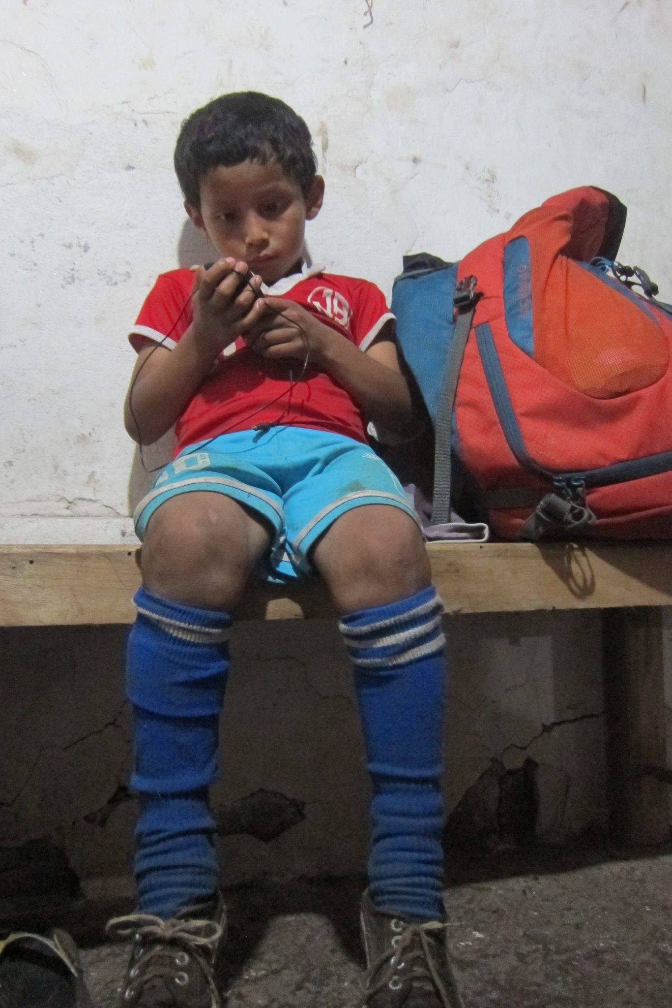 Ciematā meitene aizsteidzas mācīties, bet mēs – ēst. Kamēr ieturam maltīti, sāk pamatīgi līt. Visi vietējie apgalvoja, ka līdz nākamajam ciematam mums būtu prātīgāk aizbraukt ar motorizētu transportu, tad varam atkal čāpot tālāk. Nosēžamies ceļa malā un gaidām transportu. Nogaidām vairāk kā stundu, bet nesekmīgi. Aizeju aprunāties ar pāris motociklu vadītājiem, kas ēd pusdienas, un viņi apsola, ka, kolīdz lietus beigšoties, viņi mūs aizvedīšot. Es jau nopriecājos, bet tad šie nosauc cenu – 30 soles. Tas nu gan ir pārāk daudz. Kolīdz lietus pierimst, veļam plecos somas un ejam tālāk kājām.