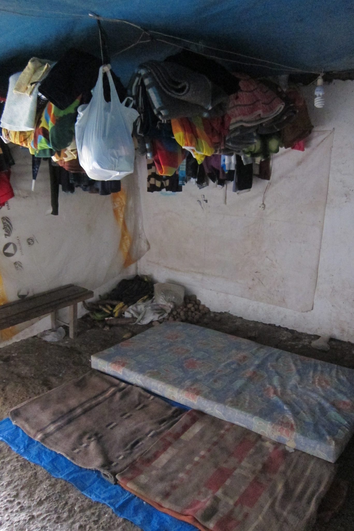 Arī mēs tiekam pie vakariņām – sātīgas zupas un, mirkli patērzējuši ar ģimeni, dodamies gulēt. Guļas vieta mums atvēlēta vienā no divām istabām – kopā ar deķu kaudzi pie griestiem un kartupeļu kaudzi uz grīdas. Tā kā matracis ir pašaurs, Čārlijs man atvēl to visu, bet pats uzklāj guļvietu, saliekot uz grīdas zirgu deķus. Es neiebilstu – šonakt gribu izgulēties par divām naktīm.