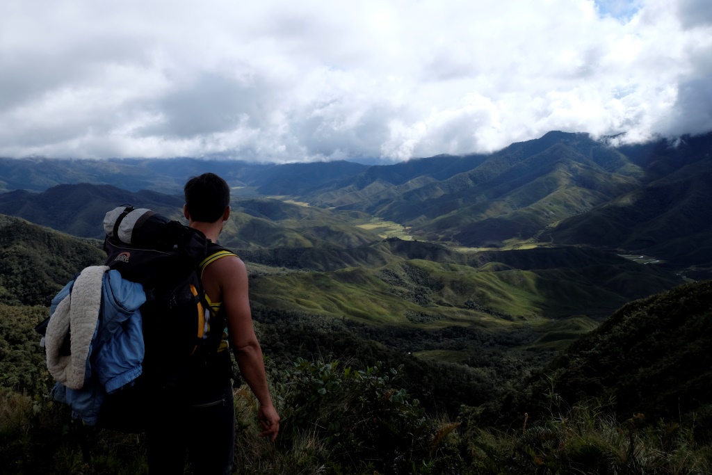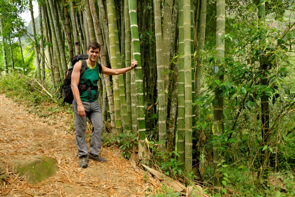 Kad sasniedzam kalna virsotni, ziņkārīgi lūkojamies uz otru pusi. Tomēr jēgas nekādas – ieleja zem mums ir miglā tīta, nevar redzēt neko. Džungļi ir tapuši vēl ciešāki – koku padusēs satupušas brangas bromēlijas, mūs cenšas sadzelt gigantiskas, takas malā augošas nātres (viņām tas tīri labi sanāk), garas liānas karājas no koku stumbriem – tā vien šķiet, ka no kāda krūmāja izlidos Tarzāns. Tarzānu mēs nesastopam, bet Džimmiju gan. Vietējais galdnieks, kalnu mežā sazāģējis koka klučus, gatavojas tos transportēt uz ciematu zirgu mugurās. Tātad – civilizācija vairs nav tālu. Tas mūs patiesi priecē, jo pārtikas krājumi strauji tuvojas pilnīgai iztukšīša stadijai.