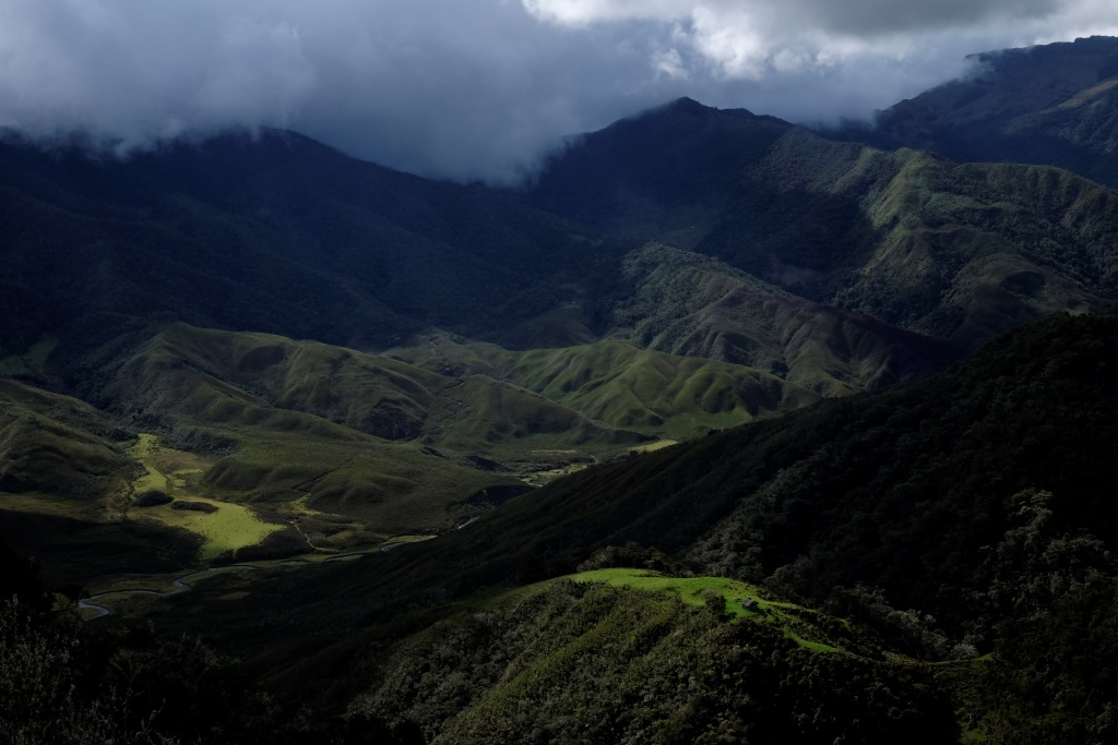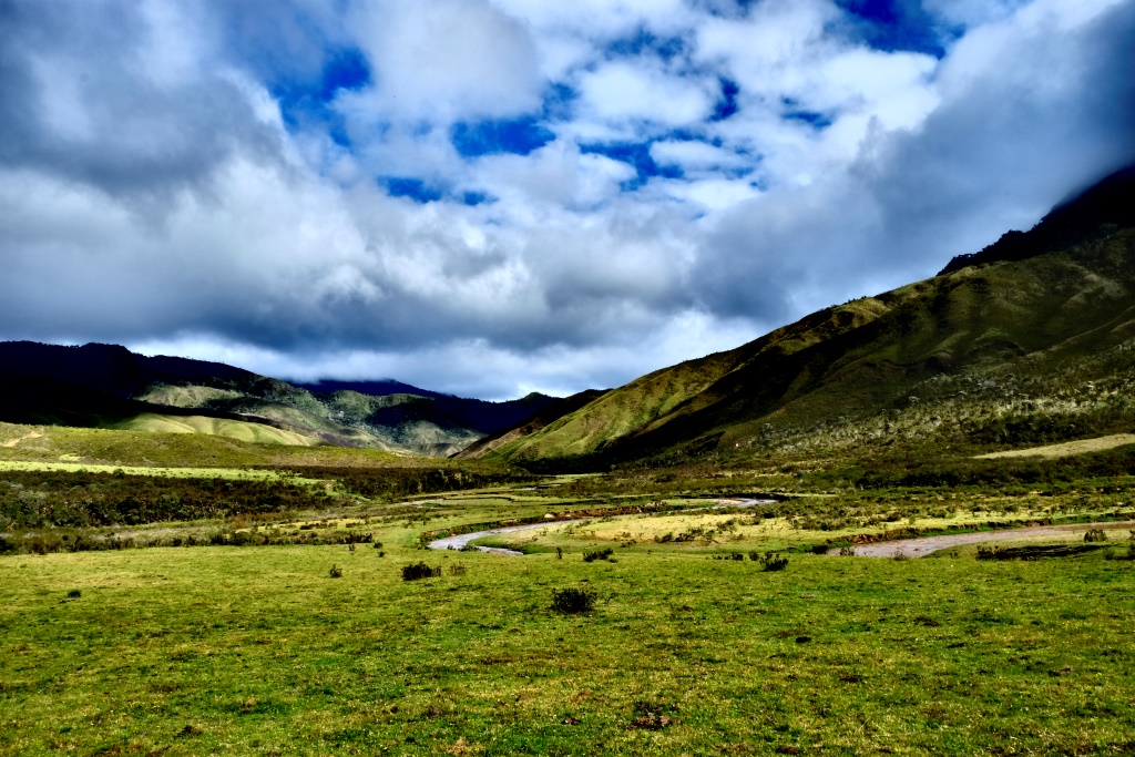 Tad turpinām kāpienu augšup. Katru reizi, kad ieraugām kalna galotni, Čārlijs mani mierina, sakot, ka tas ir „paso, pāreja”, bet, kad tiekam līdz augšai, priekšā redzams nākamais kalns. Tomēr viens no kalniem ir pēdējais. Kad tieku tajā, stāvu krietnu brīdi vaļā muti – pie mūsu kājām ir viss Belen ielejas krāšņums. Starp divām kalnu grēdām līkumo upe, to apņēmušas spilgti zaļas palienes pļavas. Aiztaisu muti un sāku fotografēt. Arī pret manām daudzajām foto pauzēm Čārlijs pagaidām izturas ar izpratni.