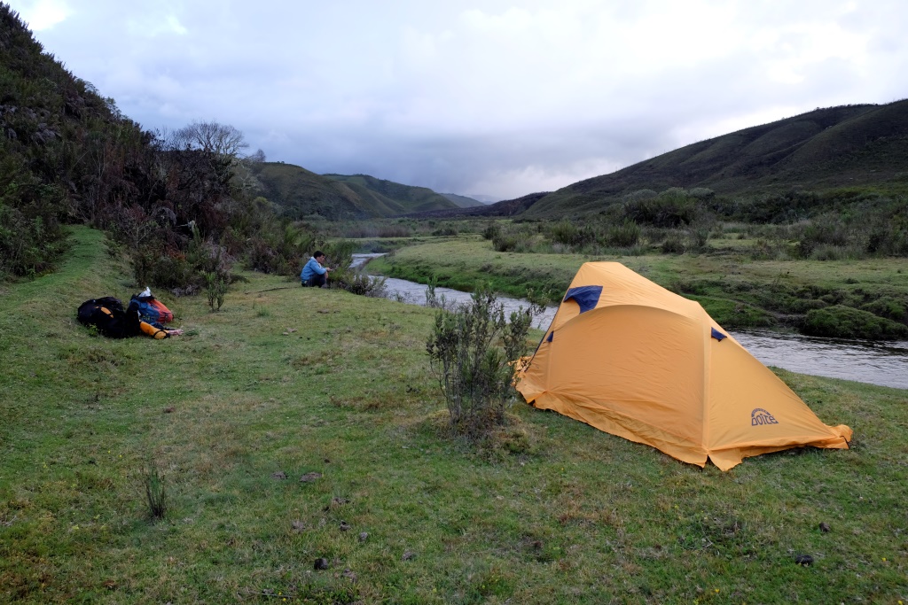 Uz leju jau iet daudz ašāk, bet pārāk steigties nedrīkst – zem kājām ir ūdens izgrauzti mini kanjoni un viltīgi akmeņi. Ap pieciem pēcpusdienā esam nonākuši ielejā un nopriecājamies redzot mazu kalnu upīti – labai naktsmītnei nepieciešams ūdens un malka. Diemžēl abi kopā te nav sastopami un saku Čārlijam, ka paliksim tuvāk ūdenim – to stiept ir grūtāk nekā malku. Čārlijs piekrīt un mēs uzceļam telti lielās upes krastā, pirms tam izvēršot plašu diskusiju par vietu – kur lielāks aizvējš, kur lietus gadījumā augstāka virsma, kur nebūsim ceļā zvēriem un tamlīdzīgi. Es saplūcu krietnu klēpi ar papardēm un salieku zem telts – zeme šeit ir mazliet mitra. Čārlijs brīnās – „tev ir sava tehnika, vai ne”.
