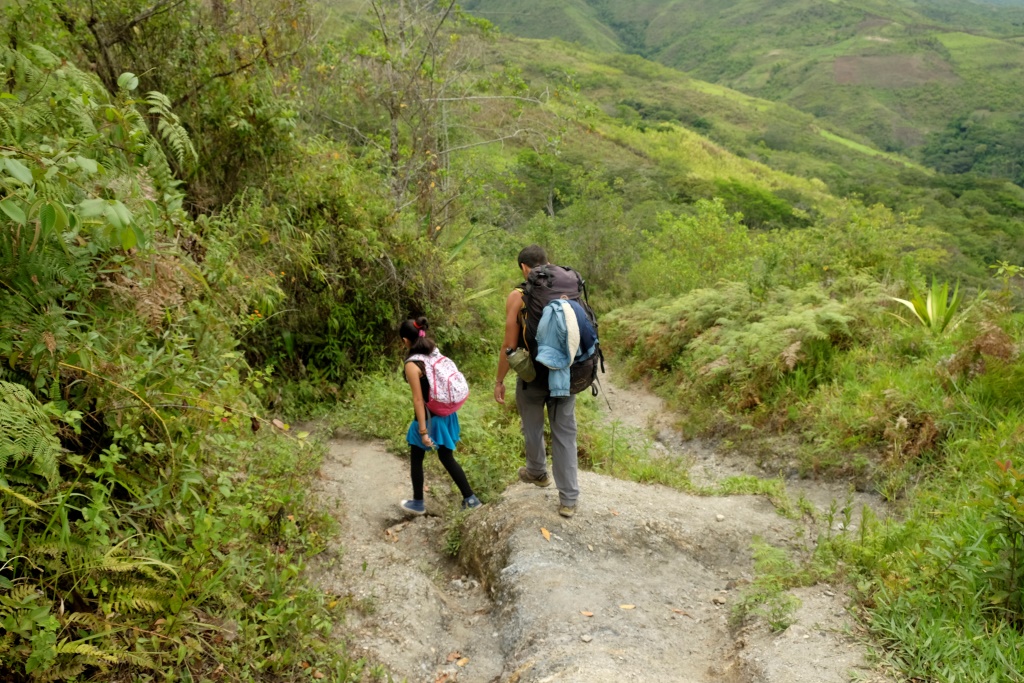 Dziļāk ielejā atrodas arvien vairāk ēkas un pie vienas no tām, uzzinājusi, kurp dodamies, mums pievienojas pusaugu meitene. Iesākumā viņa mūs uzcienā ar banāniem no savas mājas, un visu ceļu dalās ar vērtīgu informāciju par apkārtnes floru – „jā, šīs ogas var ēst, pamēģini”, „šo augu novārījums der infekciju gadījumā, bet šie lietojami pret apdegumiem (viens no maniem vārdnīcas vārdiem, ja). Vēlāk Čārlijs man paskaidro, ka šo, teju stundu garo ceļu, meitene katru dienu mēro uz skolu.