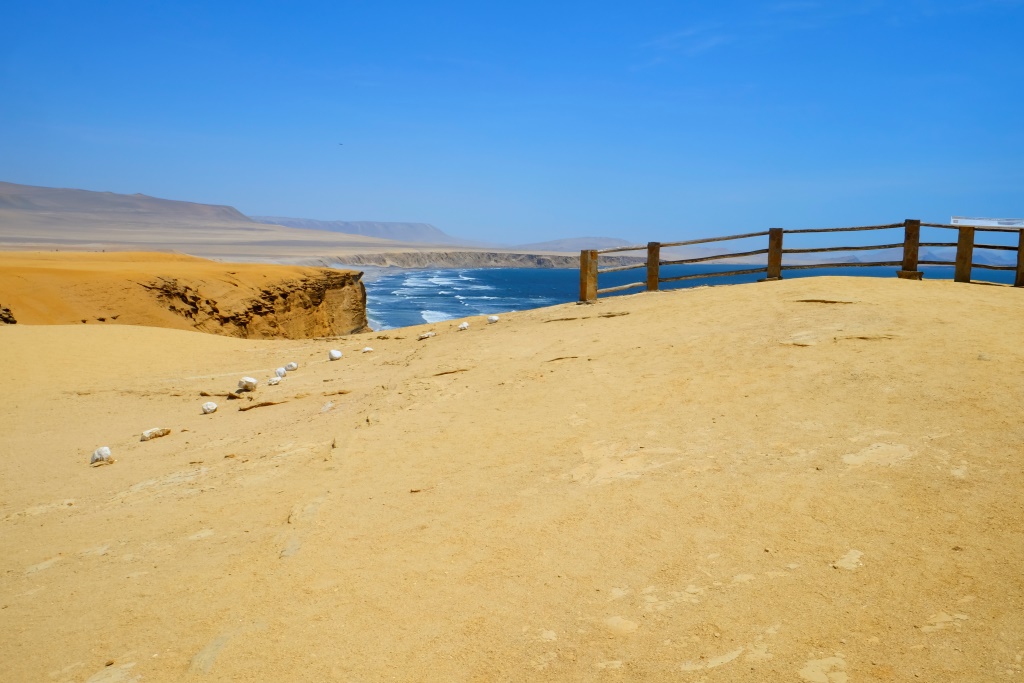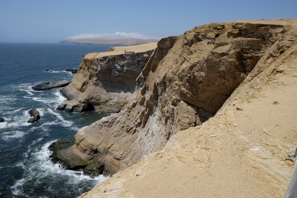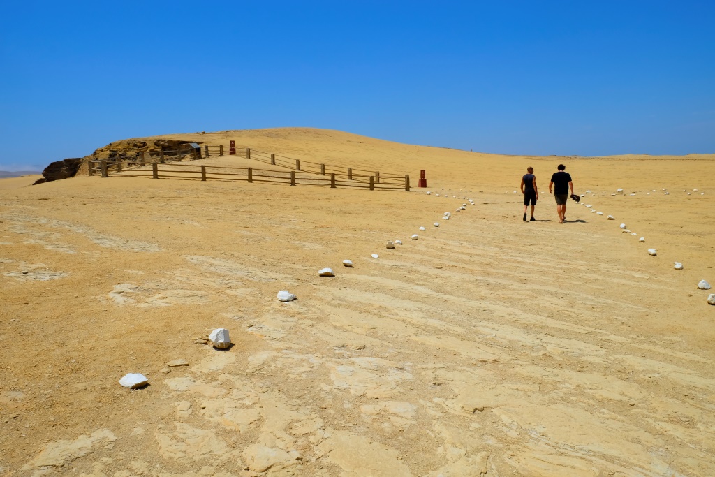 Autobuss piestāj dabas rezervātā, kur apkārt kāpas, kāpas vien. Un okeāns atritina baltu putu paklāju klintīm pie kājām, pasakains skaistums. Palūdzam, lai mūs kopā nobildē. „Princese pa vidu”, Ali nokomandē un mēs smaidām objektīvam. Pēc tam mūs uz brīdi ielaiž vietējā muzejā – ticu, ka ir interesanti, bet man ir slinkums lasīt. Izskatās, ka tas piemeties vairumam un jau pēc pārdesmit minūtēm esam atpakaļ autobusā un braucam uz Huacachinu, kur pārmaiņas pēc sabūsim divas naktis pēc kārtas.