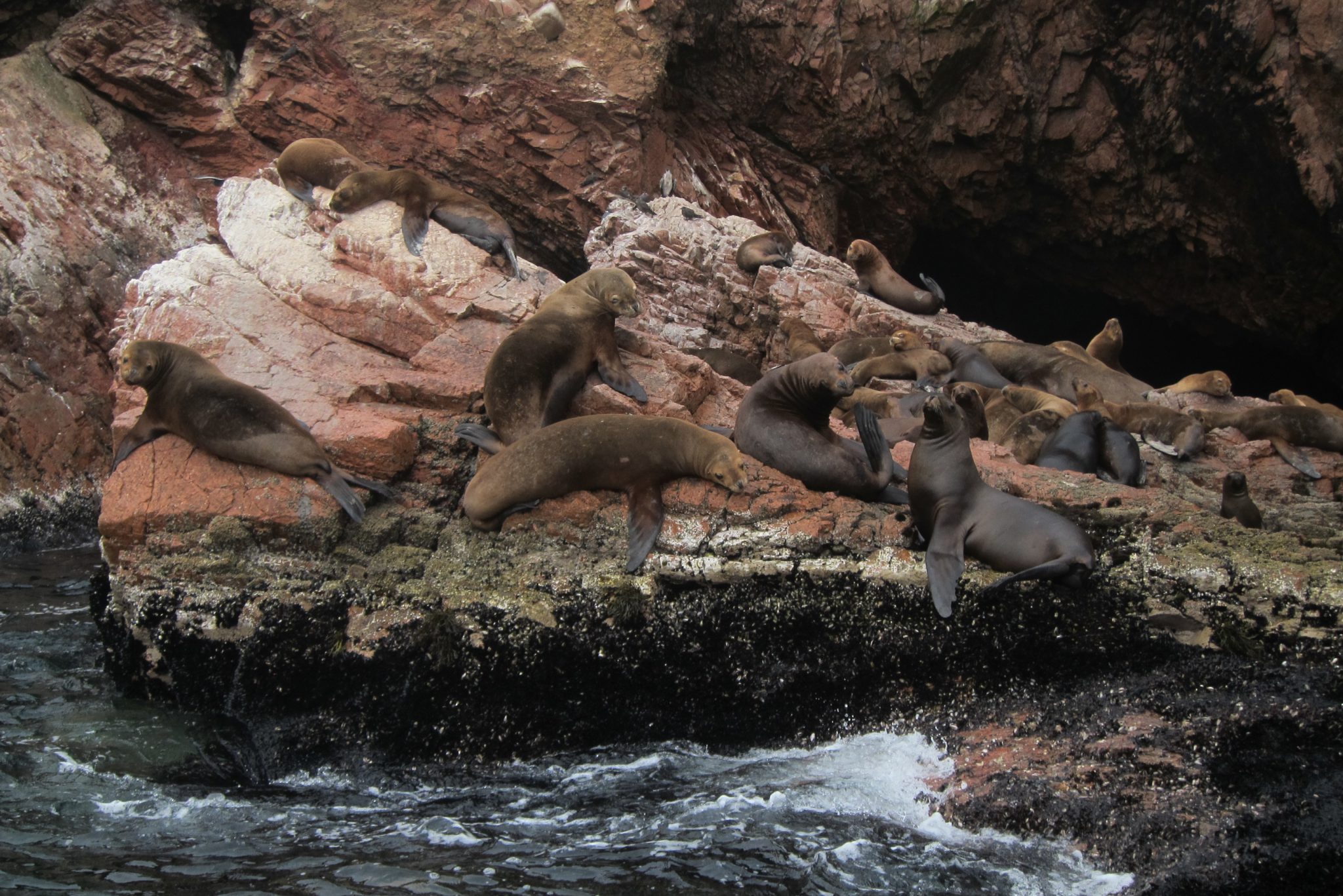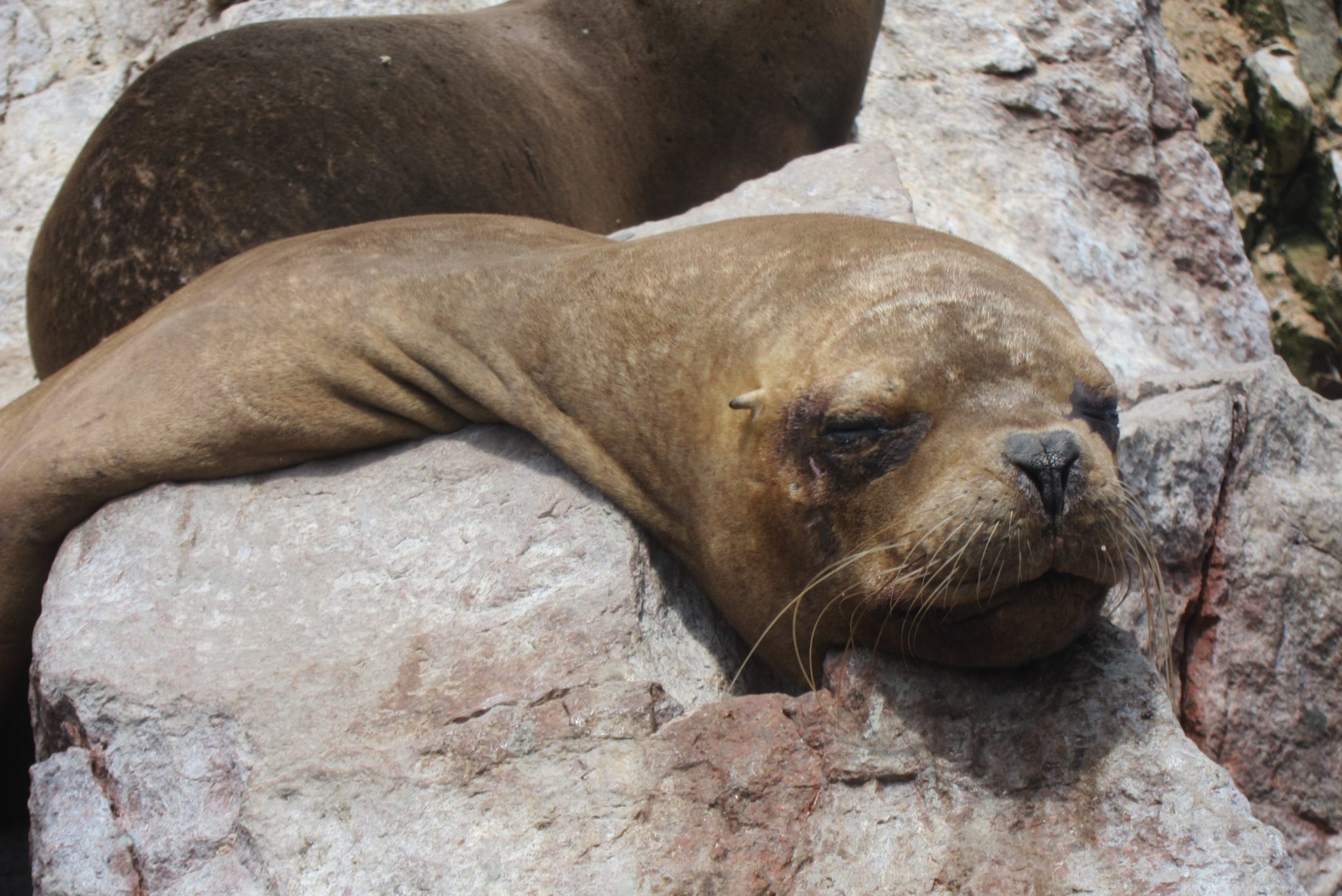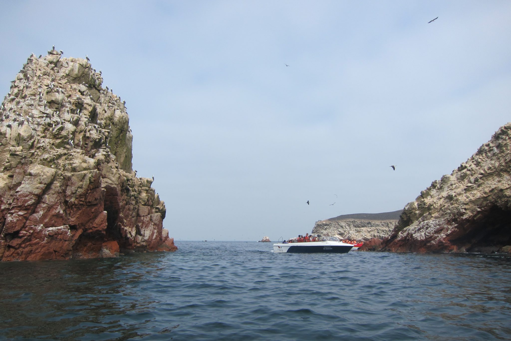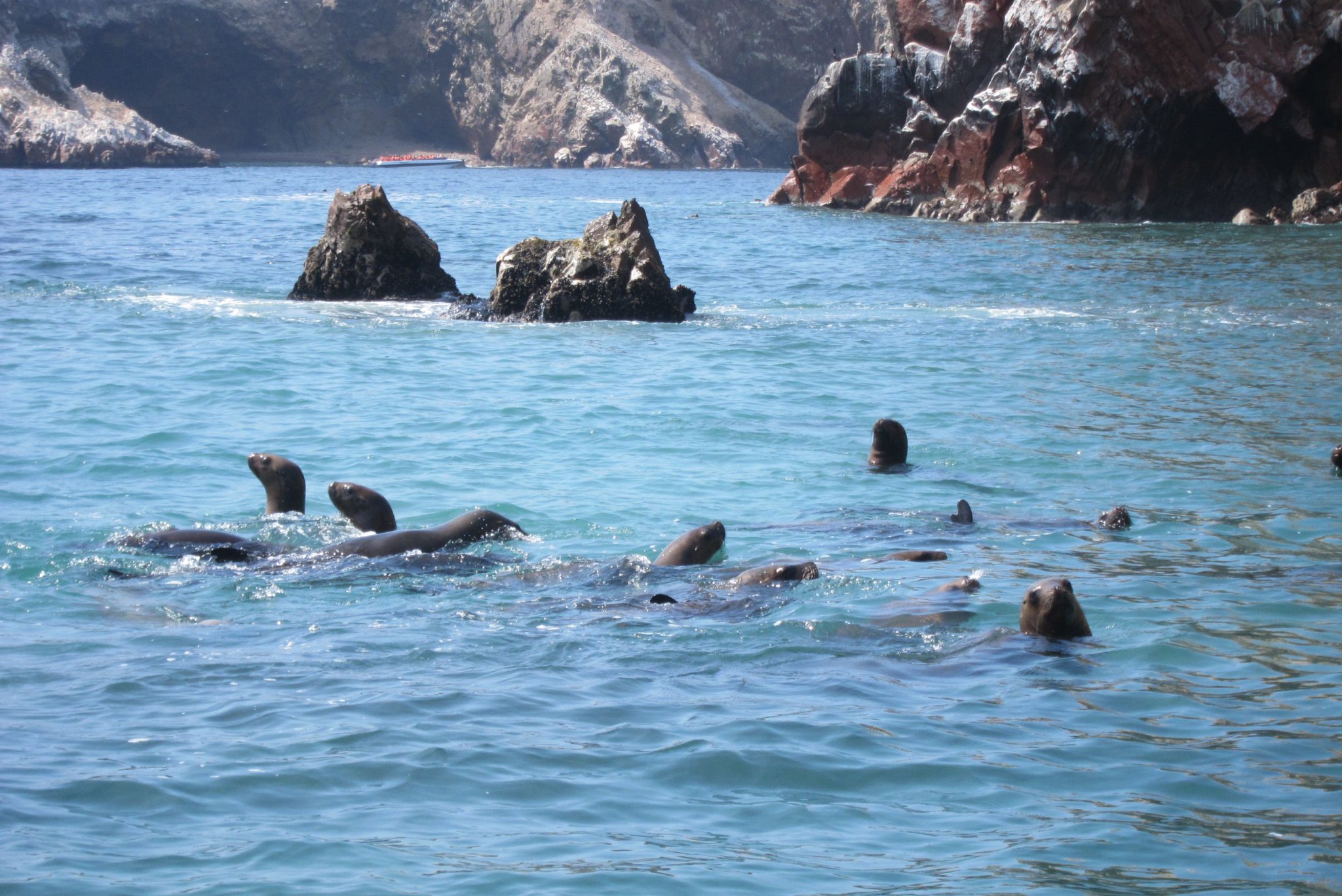 Pēc brokastīm ejam uz ostu, sasēžamies laivā un dodamies okeānā apskatīt salas un dzīvo radību. Sākumā laivas piestāj pie liela auga zīmējuma klintīs, tad dodamies uz tālākām salām, kuru malās satupuši pingvīni, jūras lauvas, pelikāni un citi putni, bet tuvāk ūdens līmenim vērojami lieli un mazi krabji. Mani šajā braucienā moka vainas apziņa – daudzās tūristu laivas, no kuru motoriem izplūst zilas dūmu vērpetes, noteikti nenāk par labu vietējai faunai.