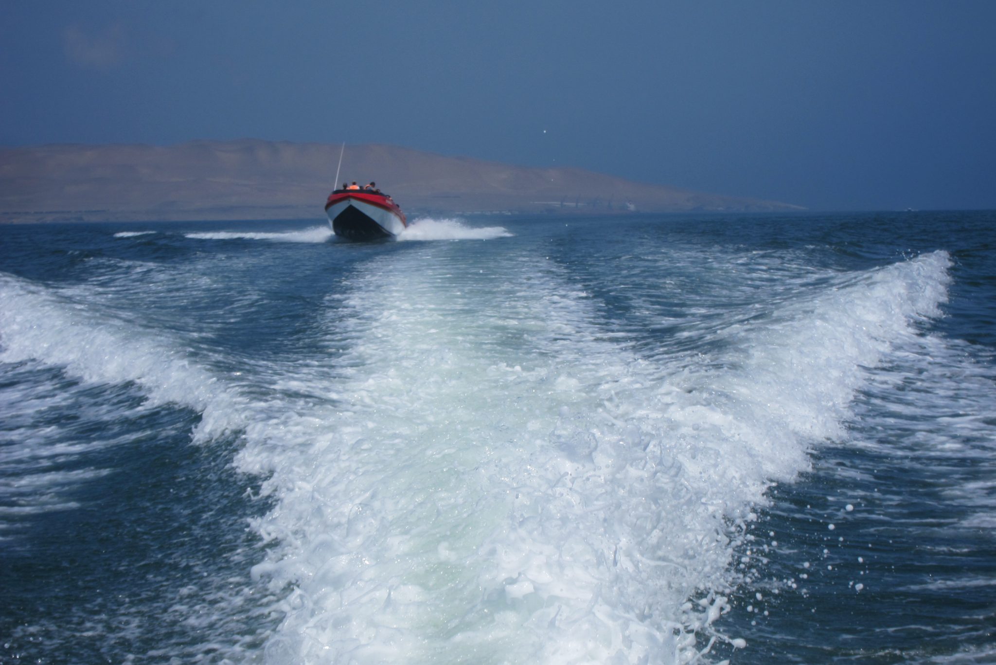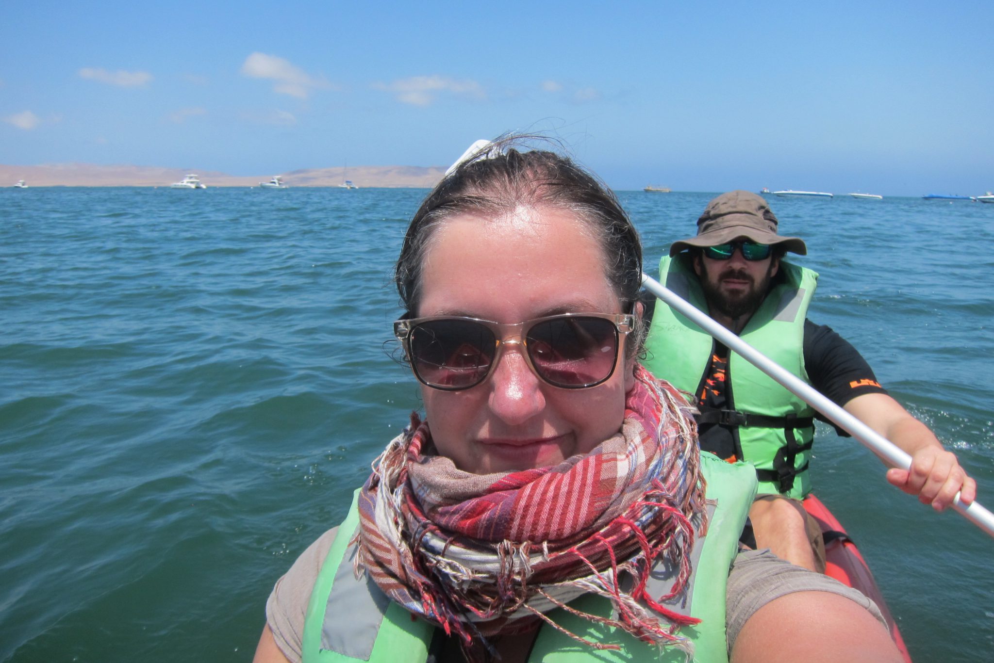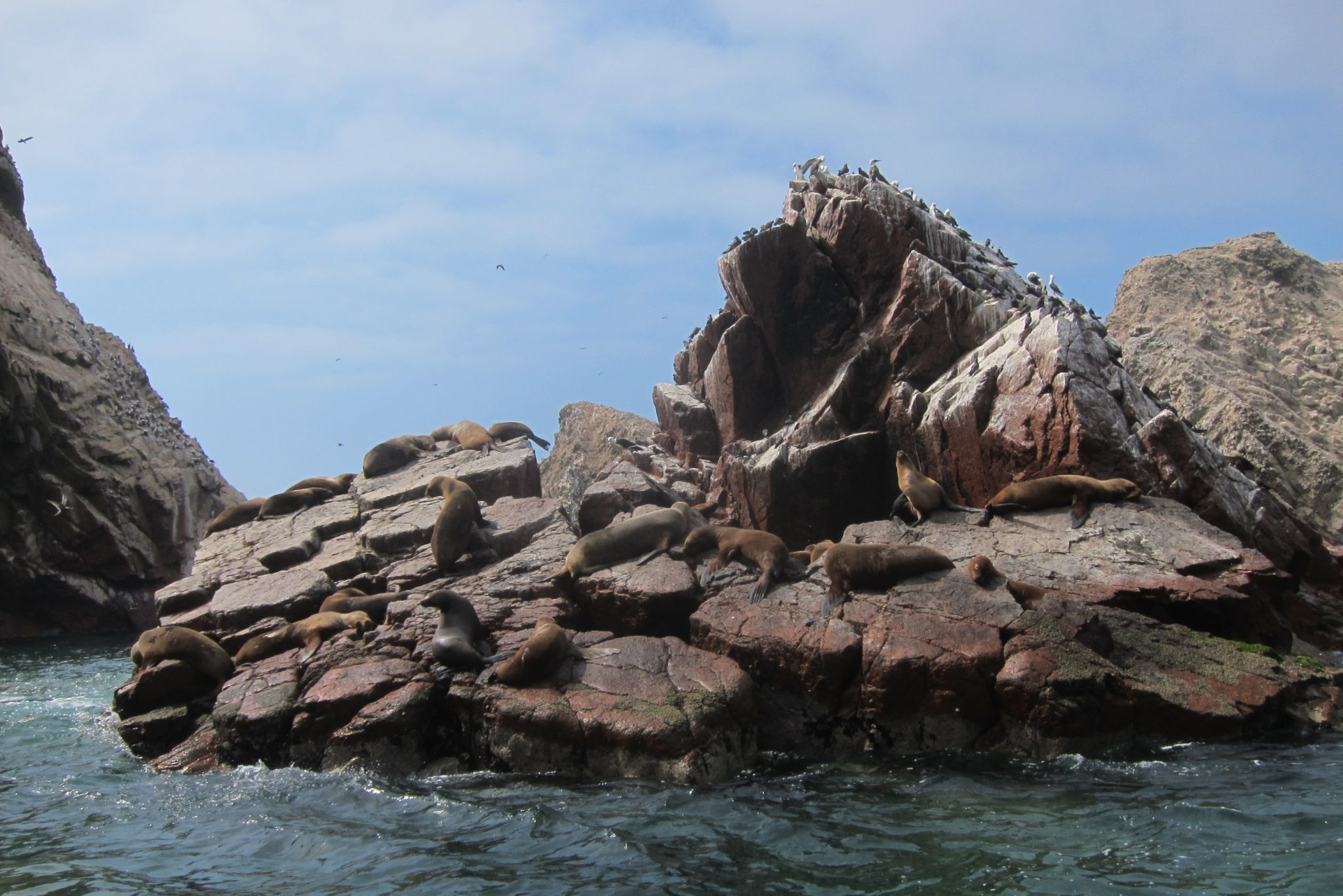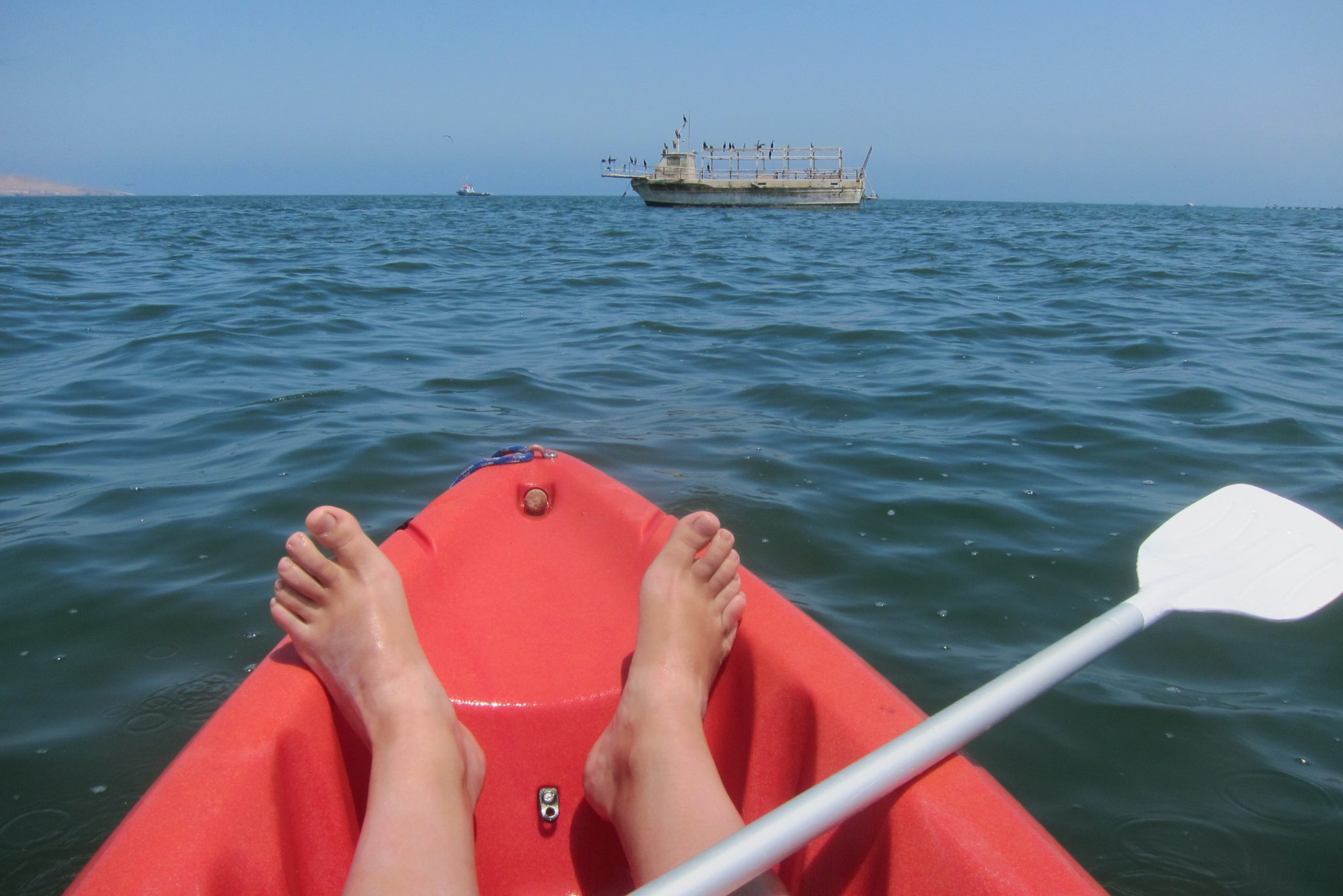 Pēc brokastīm ejam uz ostu, sasēžamies laivā un dodamies okeānā apskatīt salas un dzīvo radību. Sākumā laivas piestāj pie liela auga zīmējuma klintīs, tad dodamies uz tālākām salām, kuru malās satupuši pingvīni, jūras lauvas, pelikāni un citi putni, bet tuvāk ūdens līmenim vērojami lieli un mazi krabji. Mani šajā braucienā moka vainas apziņa – daudzās tūristu laivas, no kuru motoriem izplūst zilas dūmu vērpetes, noteikti nenāk par labu vietējai faunai.