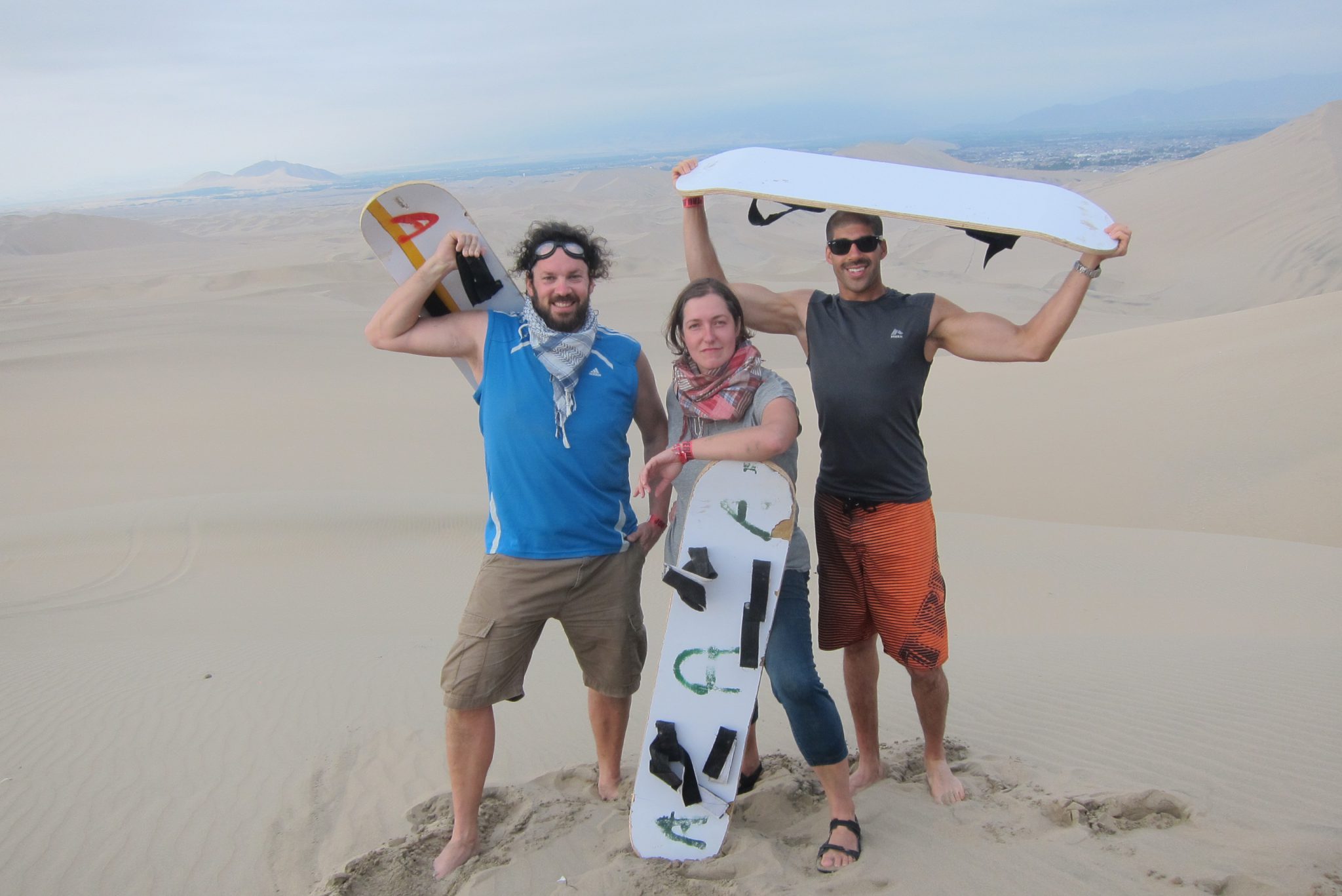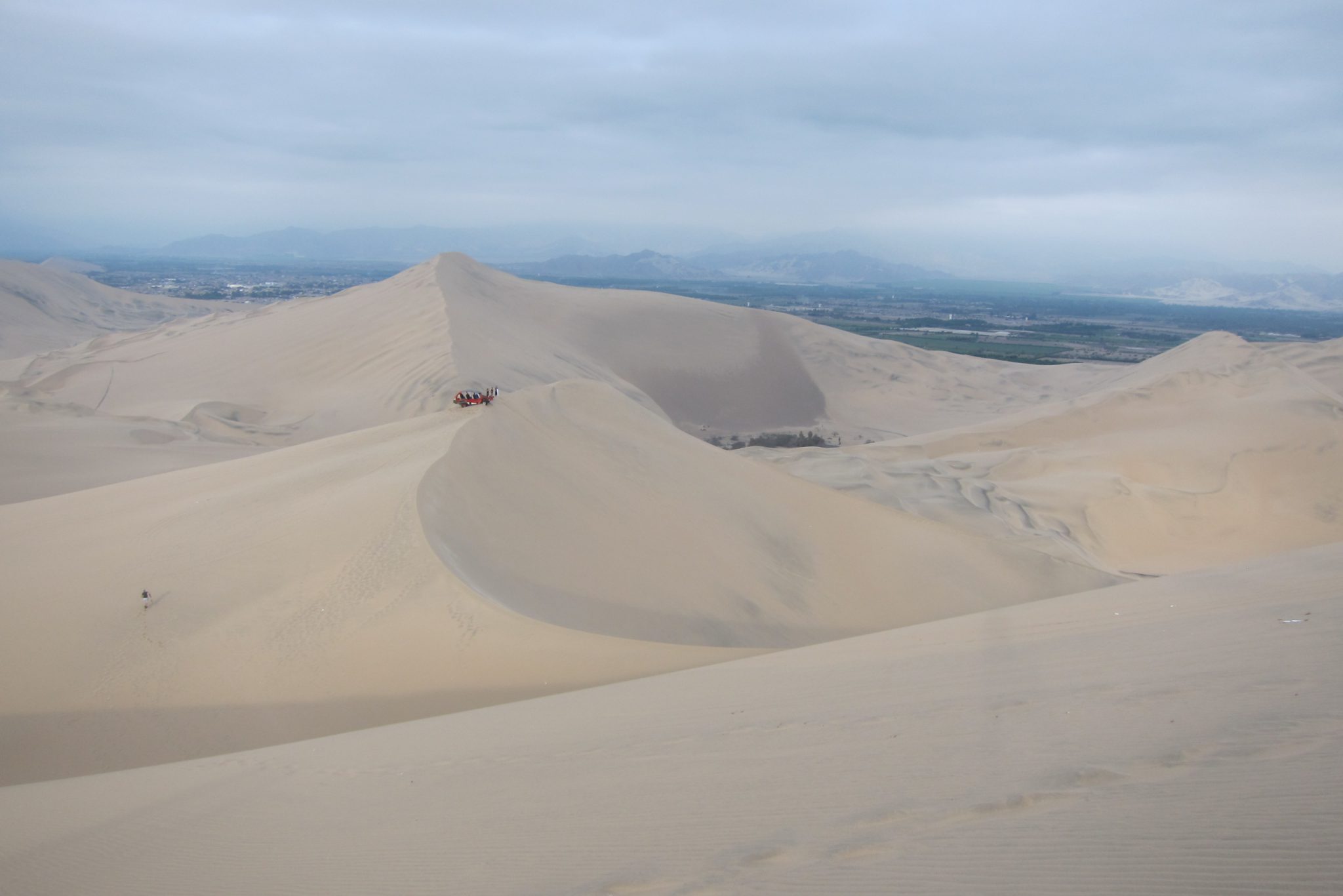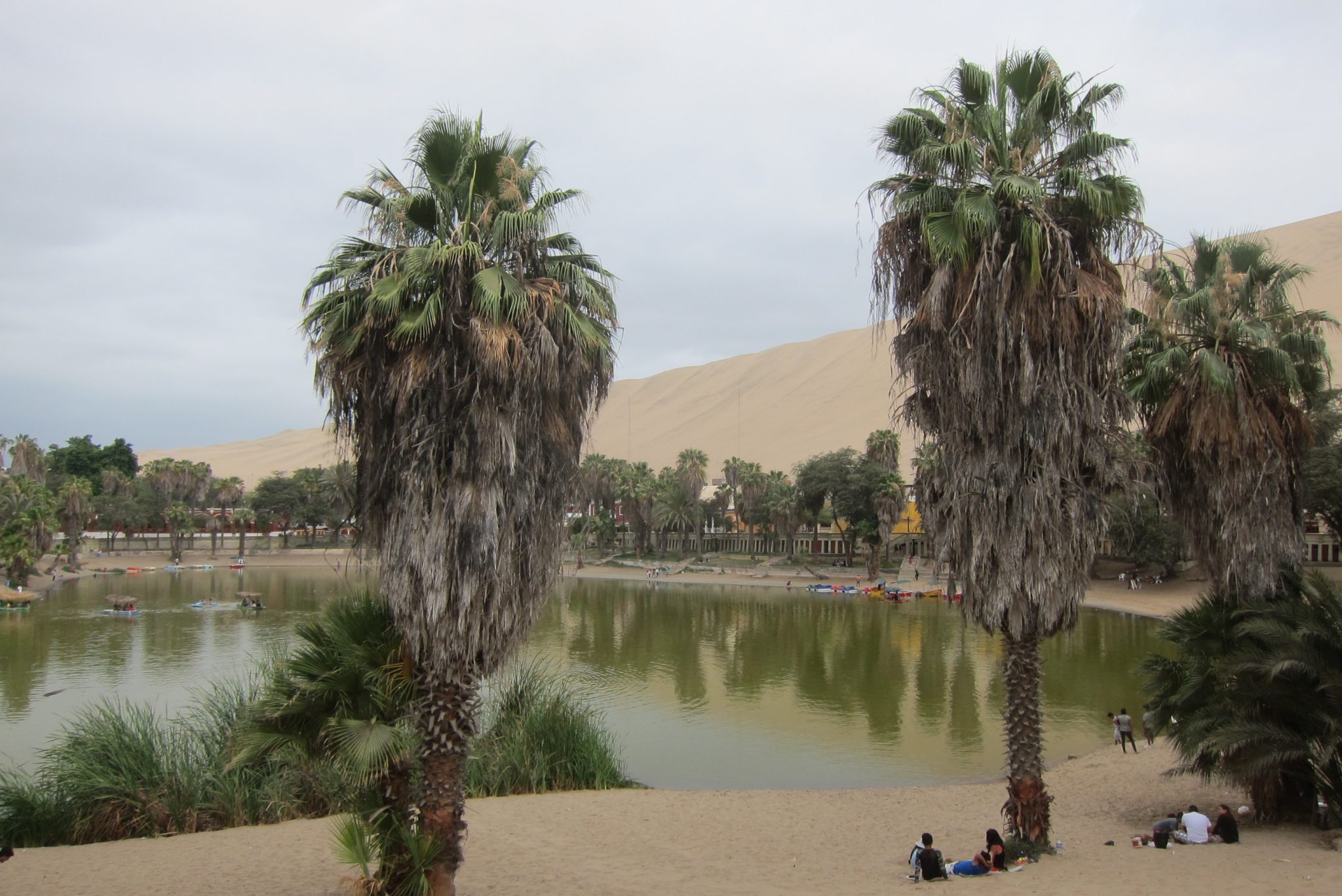 Tā nu ar mēs ar Džouvī atstājam „mīlestības vēstuli” Ali un dodamies rīta pastaigā. Huacachina ir neliela oāze ar lagūnu tuksneša vidū – to no visām pusēm ielenc smilšu kalni. Ali jau agrā rītā aizbrauca uz Nasca, kur no lidojuma var apskatīt slavenās milzu figūru līnijas, no kurām viena rotā vietējo metāla naudu. Džouvī nepatīk lidot, bet man nepatīk ekskursijas cena (120 USD), tāpēc mēs šo atrakciju izlaižam, vien piekodinām Ali uzņemt smukas bildes.