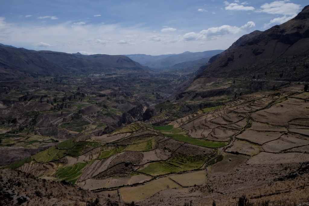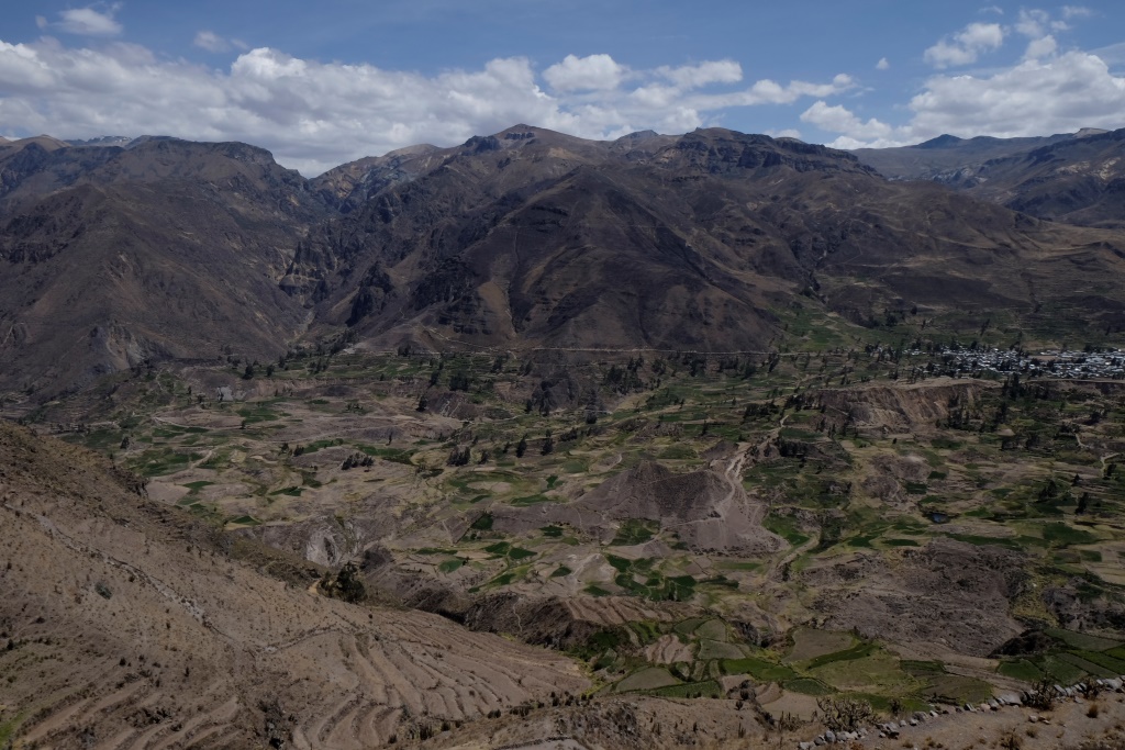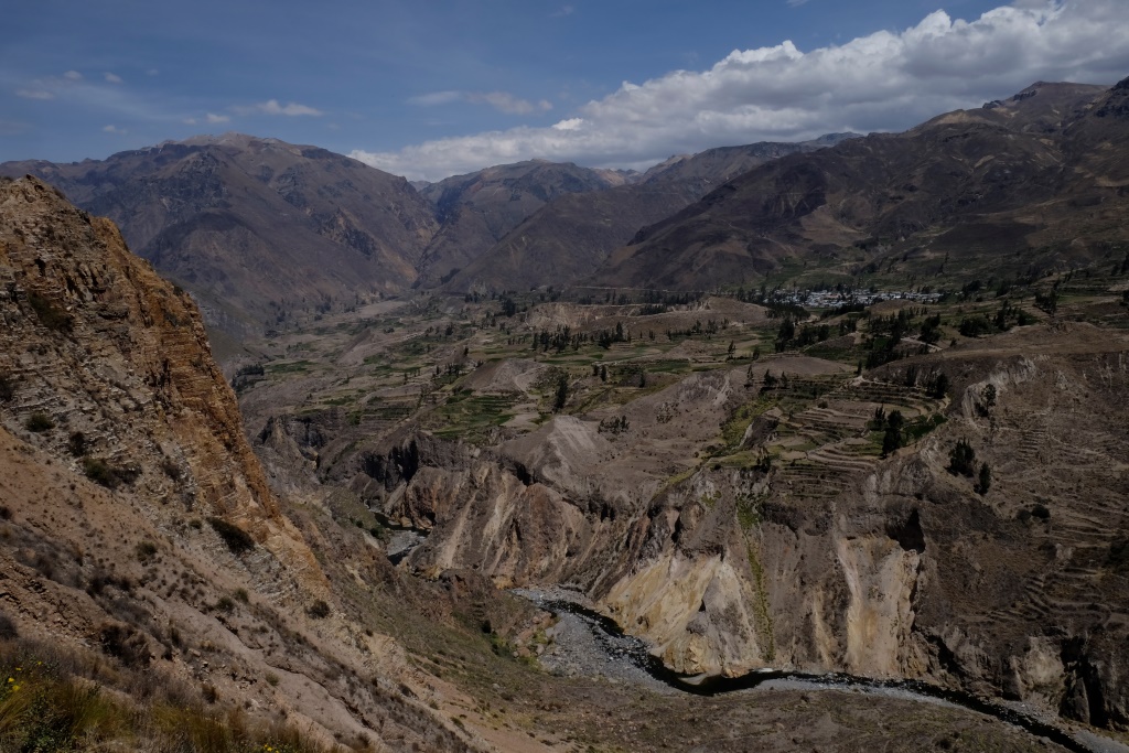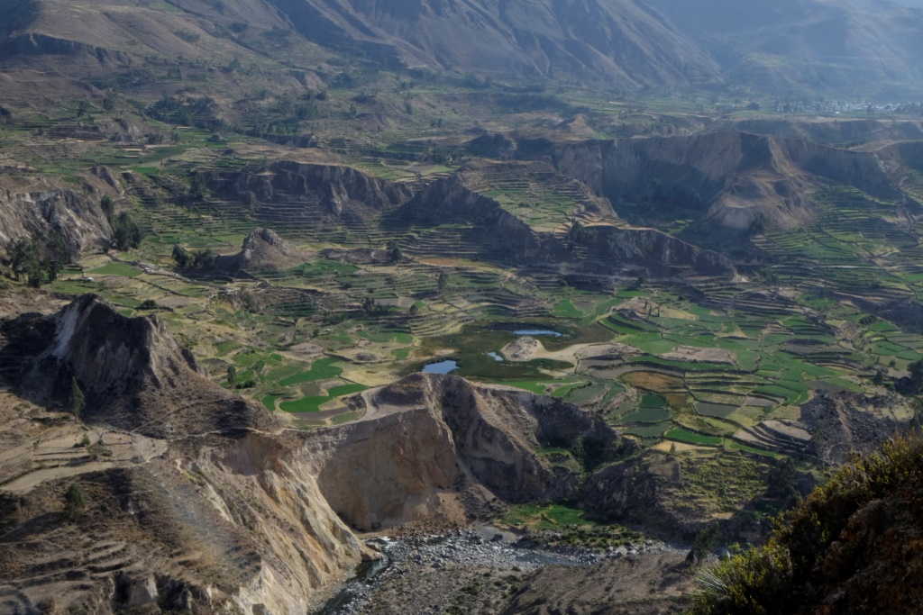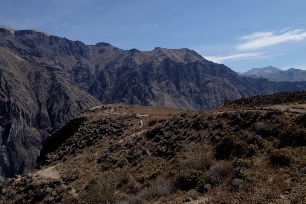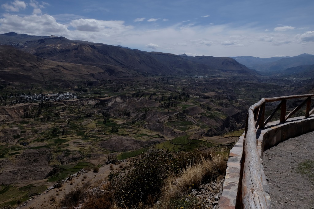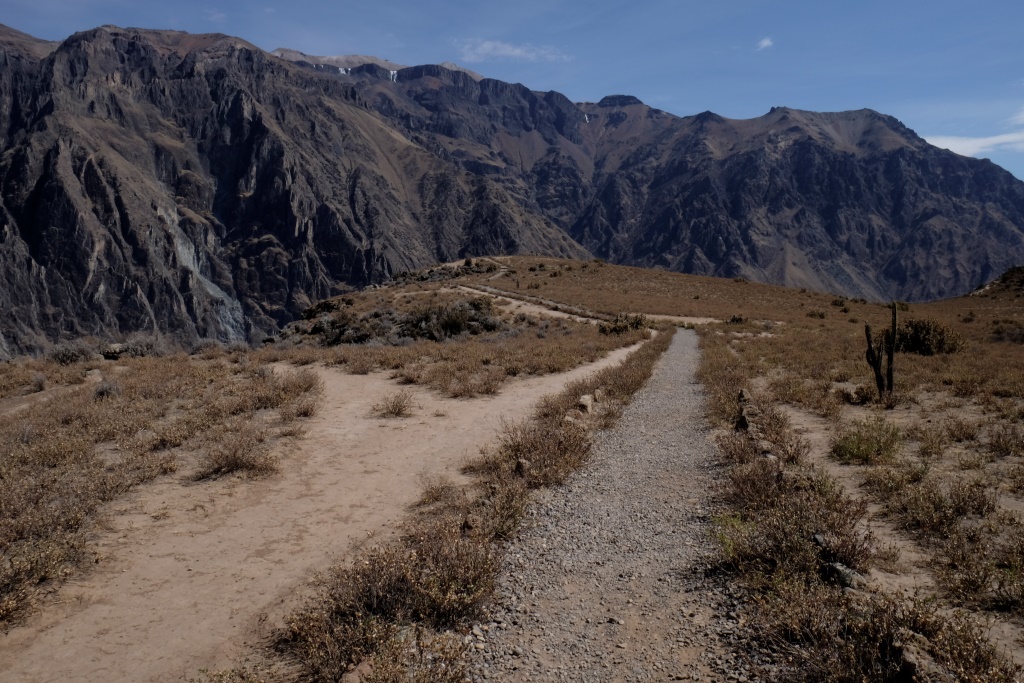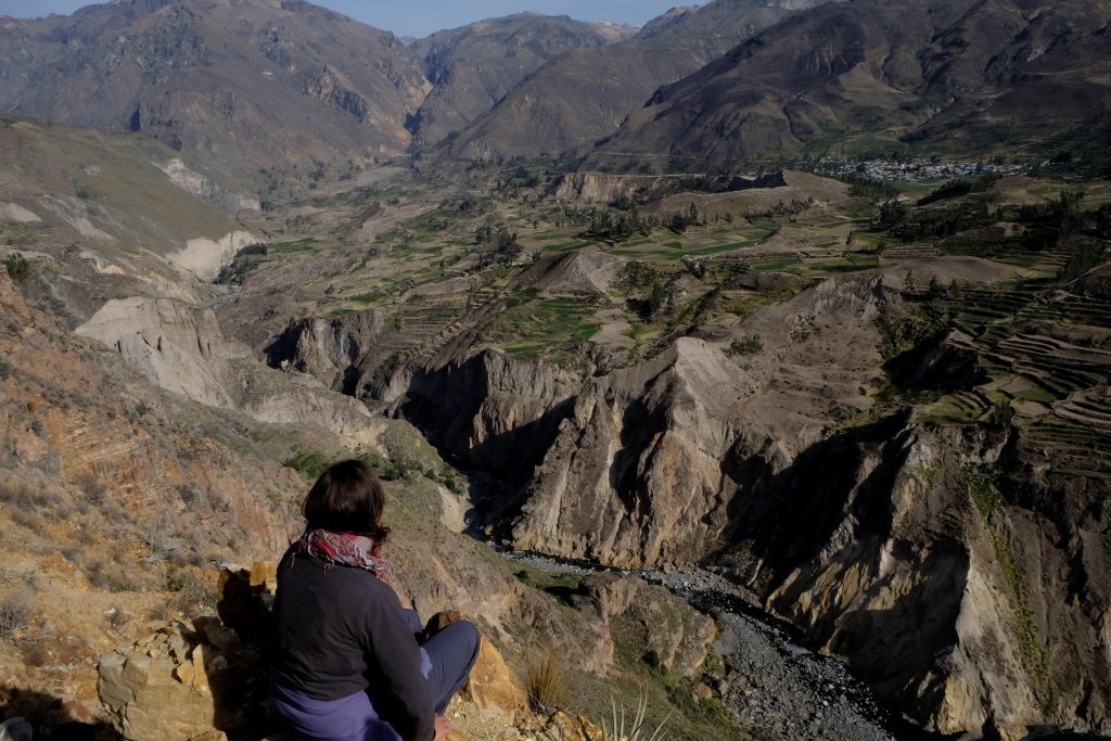 Ar vēl pāris apstāšanās pauzēm nonākam pie Kondoru krusta – šī esot laba vieta, no kuras vērot kondorus. Izskatās, ka tā domā visi tūrisma kantori, jo šajā vietā salidojuši lielu un mazu autobusu pūļi. Mēs ar Ali nolemjam vismaz nedaudz aizmukt no ļaužu masām un dodamies prom pa nelielu taciņu, kas ved gar kanjona malu. Jo tālāk tiekam, jo labāki skati paveras. Kanjons ir patiesi iespaidīgs un mēs esam diezgan sarūgtināti, ka esam netīšām nokļuvuši pilnīgā tūristu pasākumā – rezervējot ekskursiju mēs visi bijām domājuši, ka tas būs divu dienu pārgājiens pa kanjonu, bet tagad mums ir tikai pāris stundas, lai pavērtos uz to no augšas. Labi, labi, pietiek žēloties, jābauda to, kas ir. Jā, piecus kondorus no tālienes arī redzējām. Un, protams, izveicām paši savu „kondoru” fotosesiju.