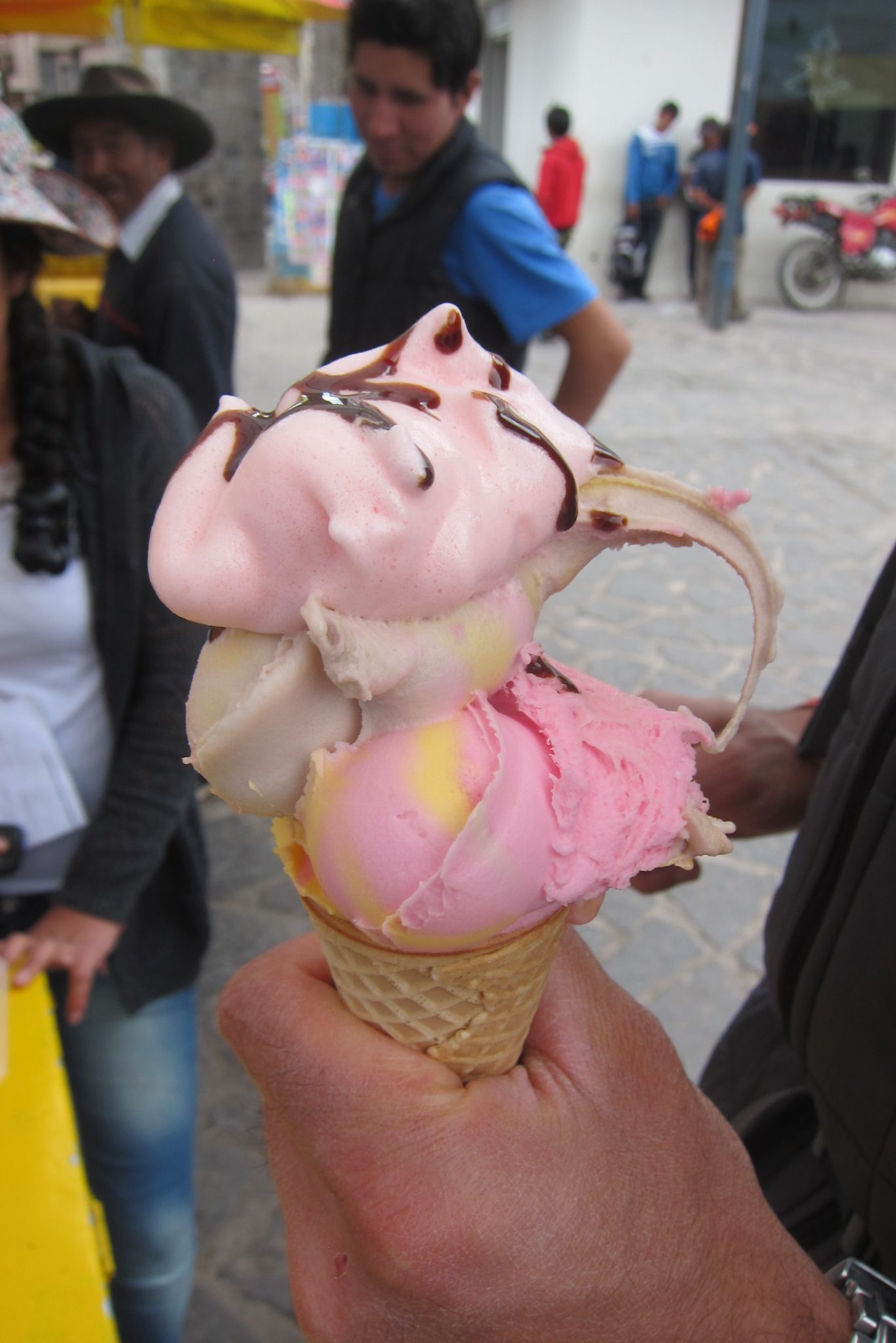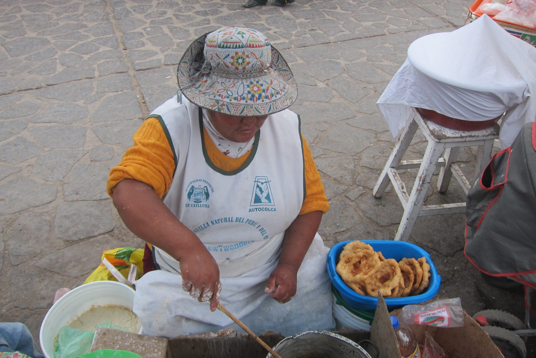 Atpakaļceļā atkal piestājam vairākās „wonderful” skatu uzņemšanas vietās, apskatām pāris baznīcas un nogaršojam kaktusu sulu. Džovī to dzer ar pisco – tā viņš cer izturēt gidu līdz brauciena beigām. Mūs atkal izlaiž pie gidam labvēlīgā restorāna un mēs atkal dodamies uz tirgu. Paēduši sāļo, ļaujamies virtuļiem līdzīgu mīklas izstrādājumu baudīšanai un visam pa virsu izturīgākie apēd krāšņu saldējumu, kas maksā nieka 1 soli.