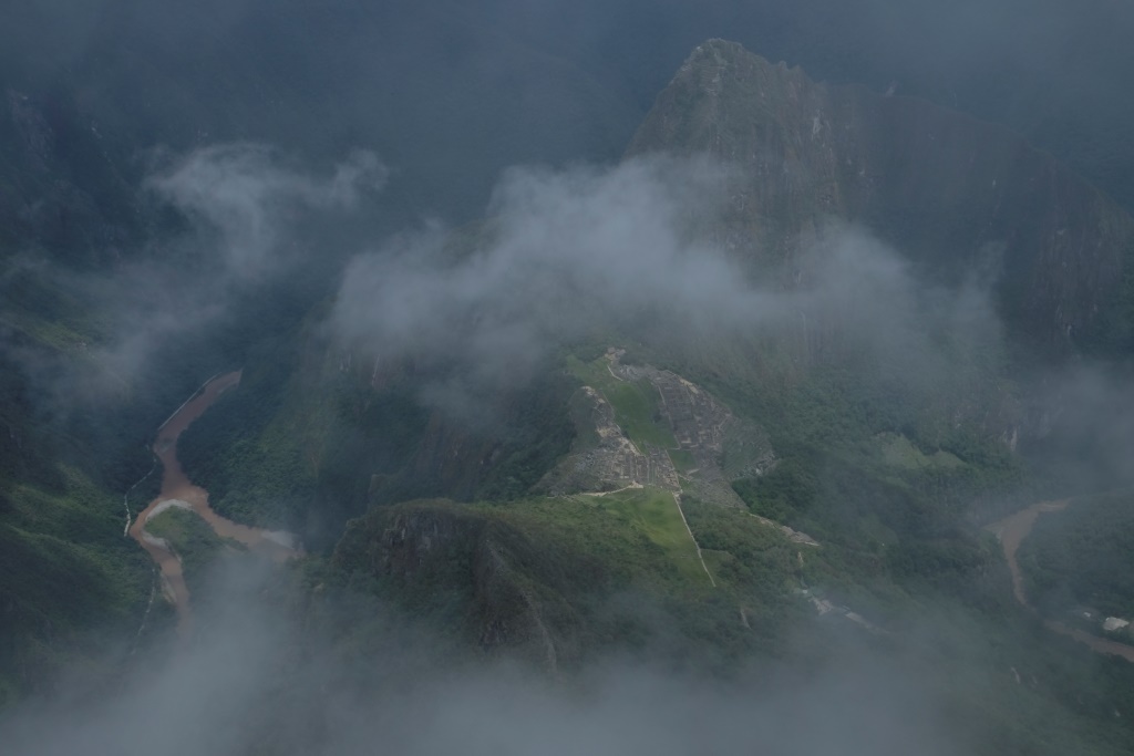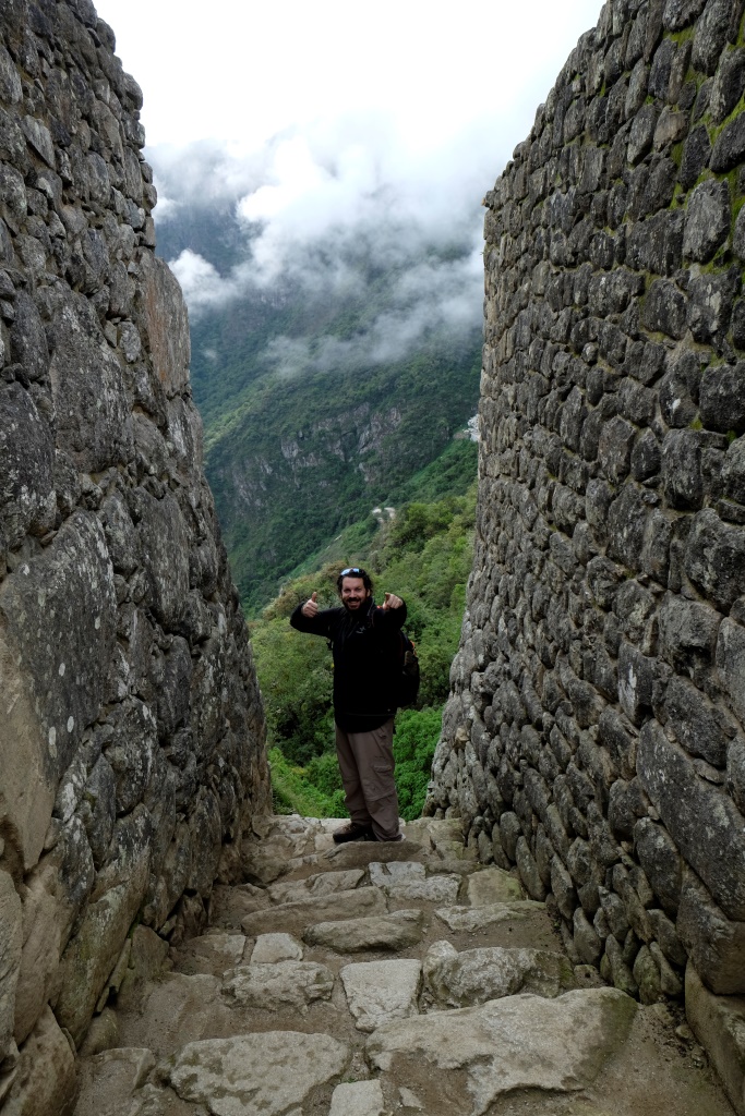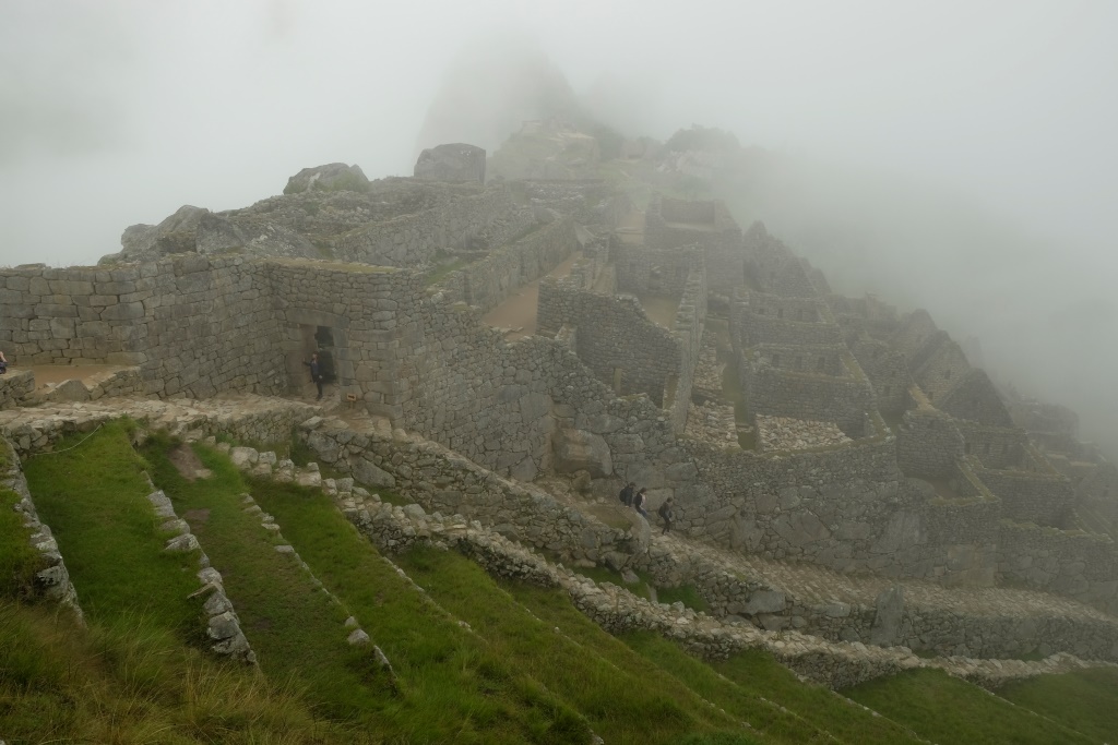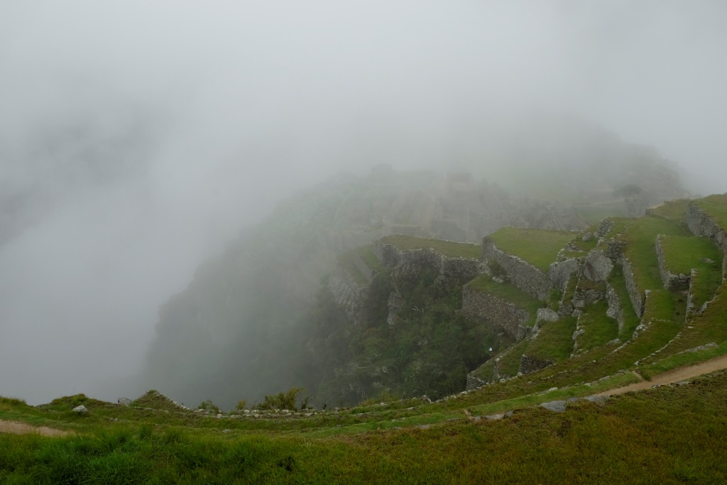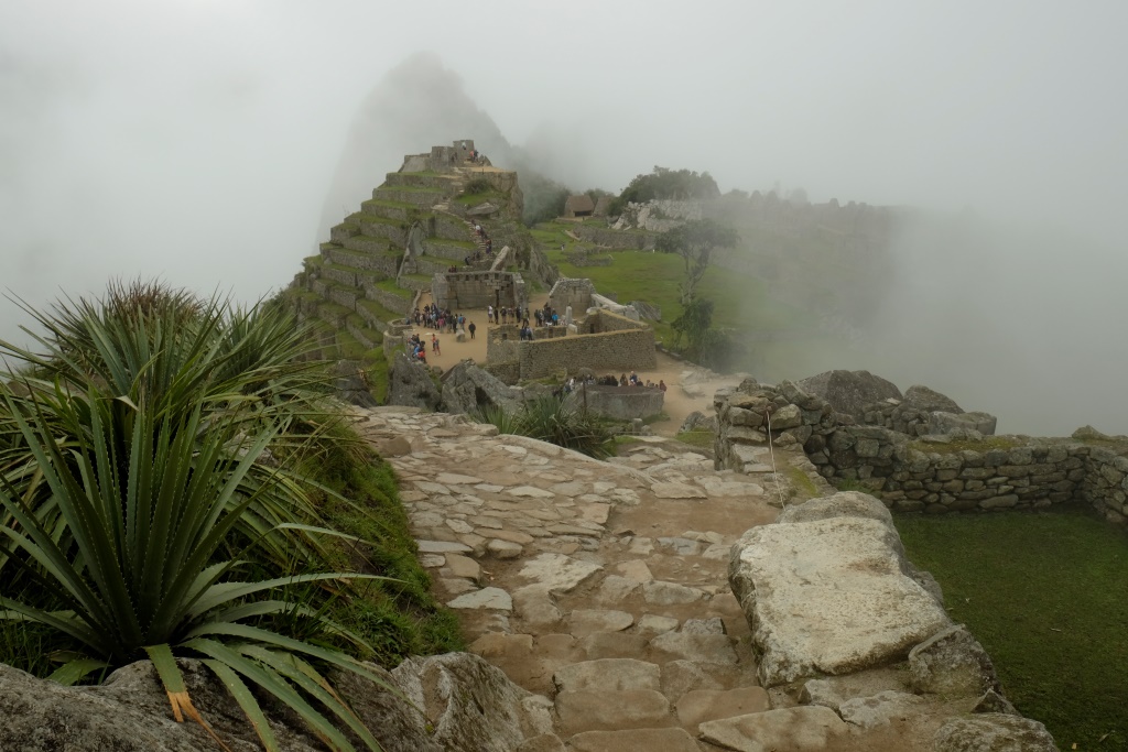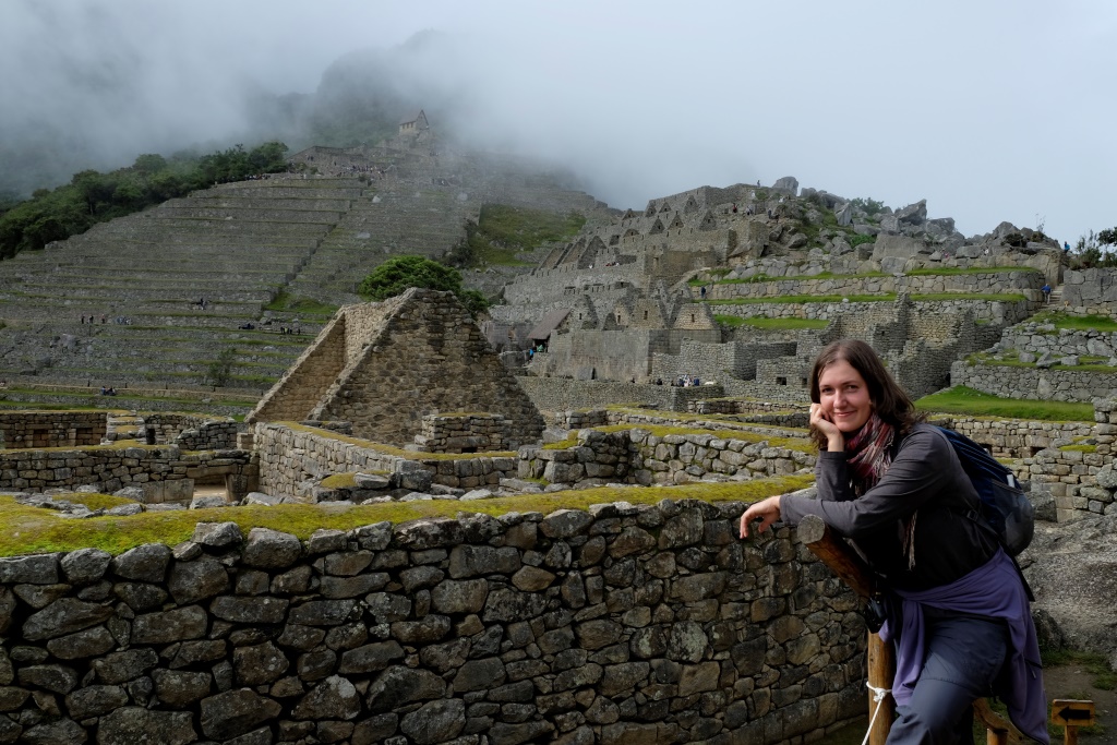 Īsi pirms 6 kopā ar citiem tūristiem stāvam rindā pie ieejas. Pašā augšā ieraugu blondu bizi, kura pagriežas pret mani – atkal Čelsija. Tad jau vārti veras un dodamies miglā. Patiesībā ir pat labi – senie mūri miglas ielenkumā izskatās vēl noslēpumaināk. Tālāk par pārdesmit metriem gan iesākumā neredz, bet tas lēnām sāk mainīties. Kad atgriežamies pēc pastaigas pa vienu no takām, skats uz centrālo Maču Pikču daļu jau ir pavisam noskaidrojies. Dodamies izstaigāt to – sāk spīdēt saule. Nu jau garastāvoklis ir pavisam labs – var apskatīt daili visapkārt, ko arī darām. Tāpat kā fotografējam apkārtni, viens otru, taisām Ali bildes – paceļam rokas gaisā vai saliecam tās demonstrējot muskuļus. „Ali ar mums leposies”, esam pārliecināti.