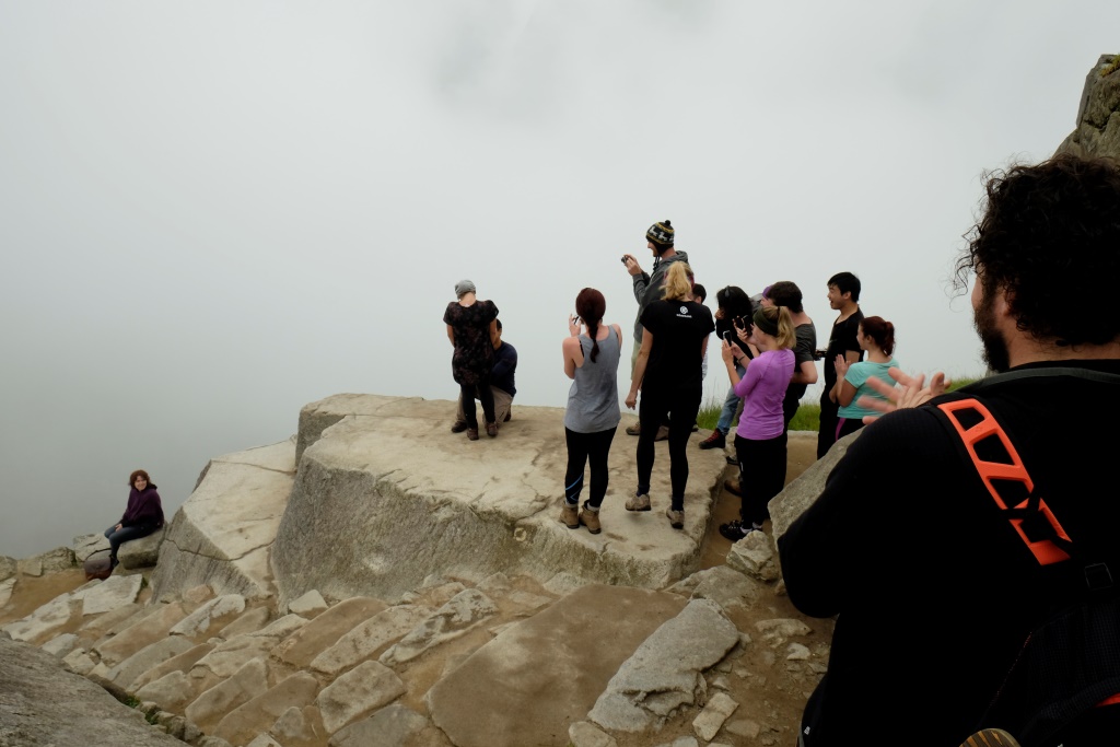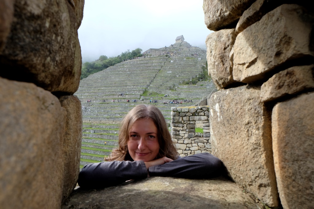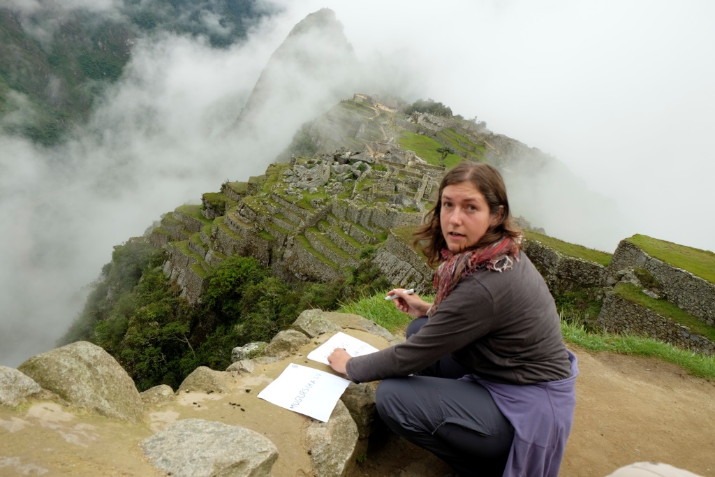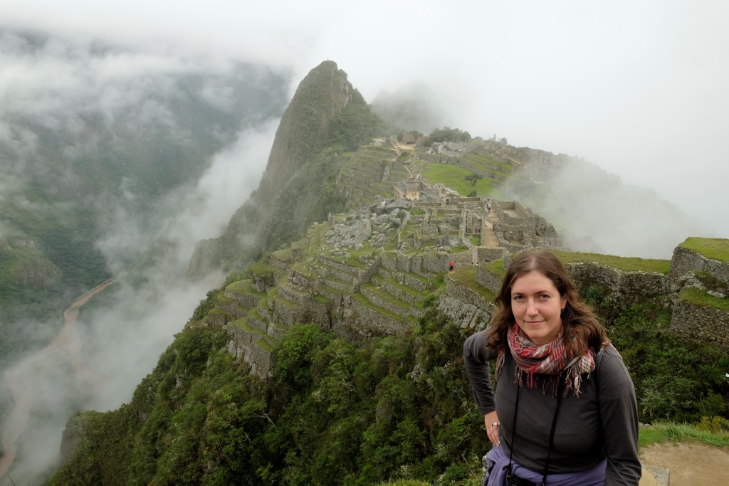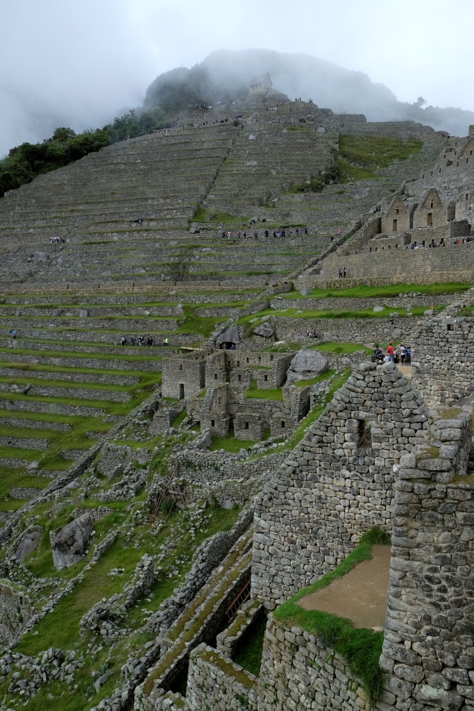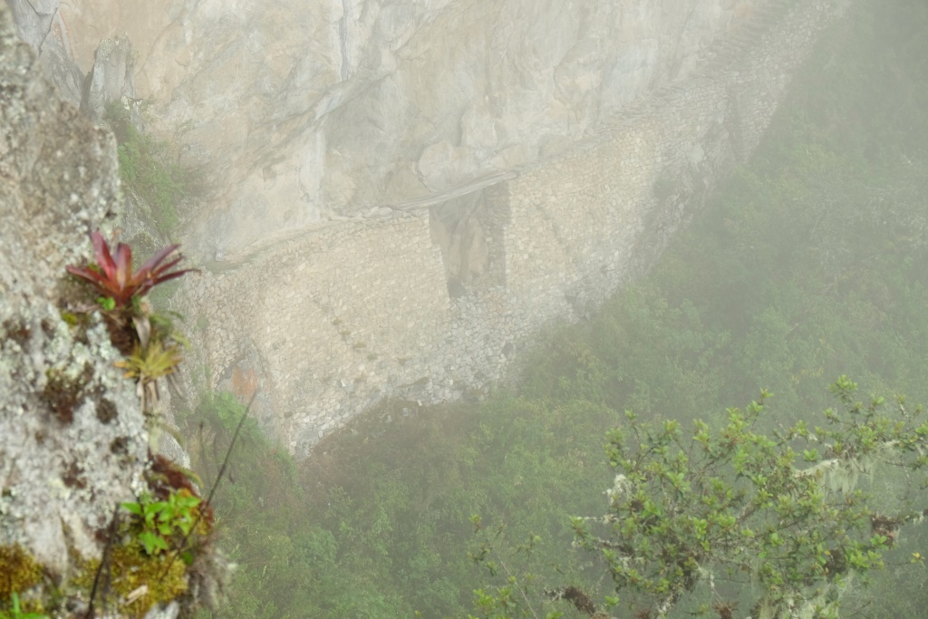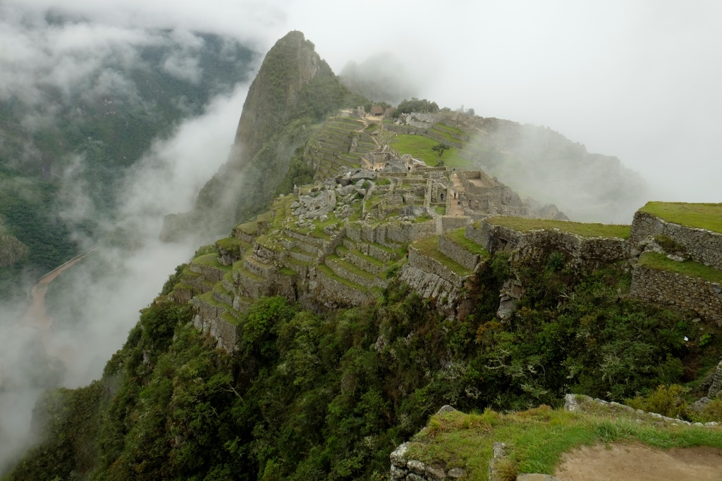 Īsi pirms 6 kopā ar citiem tūristiem stāvam rindā pie ieejas. Pašā augšā ieraugu blondu bizi, kura pagriežas pret mani – atkal Čelsija. Tad jau vārti veras un dodamies miglā. Patiesībā ir pat labi – senie mūri miglas ielenkumā izskatās vēl noslēpumaināk. Tālāk par pārdesmit metriem gan iesākumā neredz, bet tas lēnām sāk mainīties. Kad atgriežamies pēc pastaigas pa vienu no takām, skats uz centrālo Maču Pikču daļu jau ir pavisam noskaidrojies. Dodamies izstaigāt to – sāk spīdēt saule. Nu jau garastāvoklis ir pavisam labs – var apskatīt daili visapkārt, ko arī darām. Tāpat kā fotografējam apkārtni, viens otru, taisām Ali bildes – paceļam rokas gaisā vai saliecam tās demonstrējot muskuļus. „Ali ar mums leposies”, esam pārliecināti.
