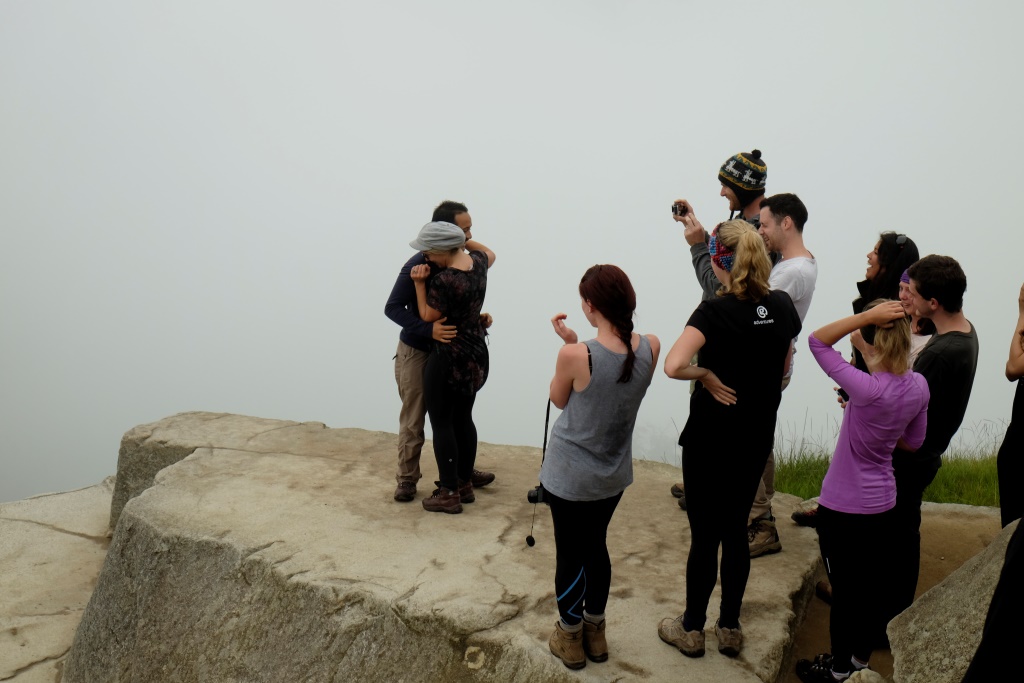 Kādā no terasēm ieraugām sapulcējušos bariņu jauniešu, tur kaut kas notiek. Apstājamies mēs arī un esam liecinieki, kā viens no jauniešiem krīt uz ceļa un saka bildinājuma runu. Esmu redzējusi daudzas kāzas, bēres un vēl visādus svarīgus dzīves pasākumus, bet laikam šis ir pirmais bildinājums, kuru piedzīvoju. Runa ir sirsnīga, meitene raud – viss, kā nākas.