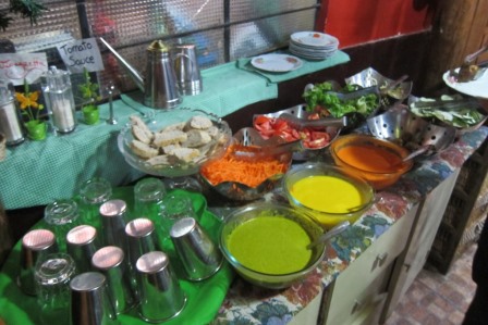 Pirms vieniem dodos uz centrālo laukumu, kur esam sarunājuši satikties ar vāciešiem. Tagad gan es, gan viņi jau izskatās pēc cilvēkiem – vakar visi bijām sarkanām sejām un acīm, nokāpušies un nobraukušies. Lisa ir veģetāriete, tāpēc šie mani ved uz nelielu vegānu restorānu, kuru iemīļojuši, uzturoties Cusco. Tas ir lielisks! Salātu bārs, svaigi cepta maize, sulas. Un dienas ēdienkarte ar trīs augstas kvalitātes ēdieniem – tas viss kopā par 12 solēm.