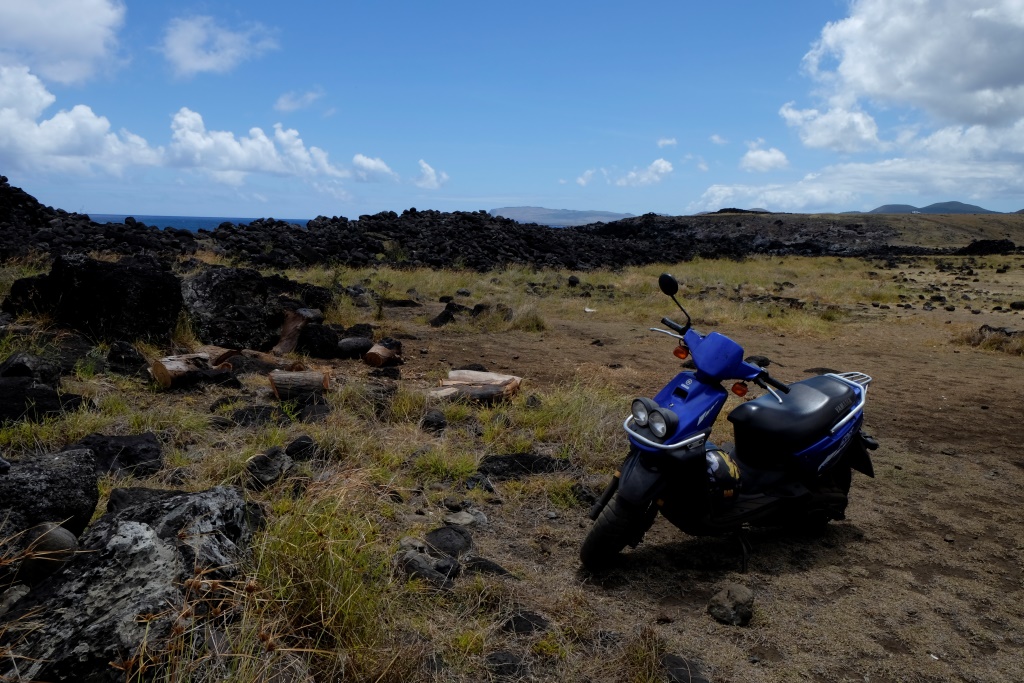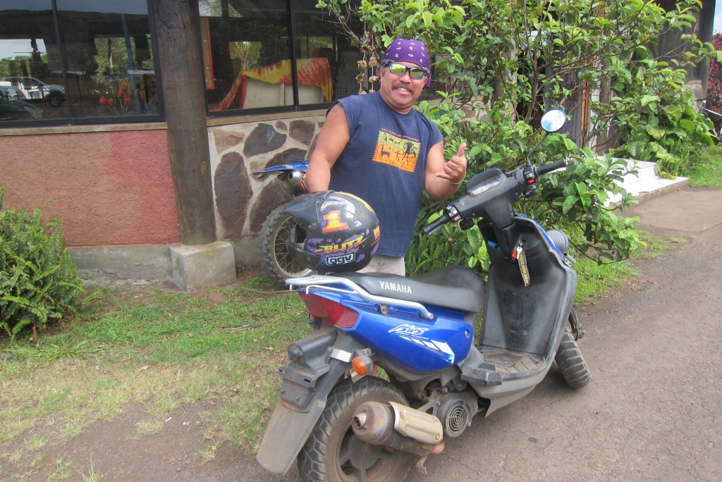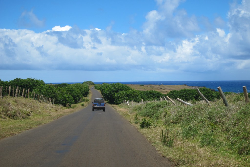 Tad Eliass vaicā, vai mēs ar Kiku vēlamies pievienoties nelielā izbraucienā ar radiem un draugiem uz laukiem. Protams, mēs vēlamies. Kika pievienojas autobraucējiem, bet es atkal sēžos uz Eliasa moto un dodamies ceļā. Nelielais, saules piekarsētais ceļš, ticis ārā no pilsētas, vijas gar okeāna krastu un padara mūsu braucienu nedrošu – man visu laiku jābildē. Man tikai jāpiebiksta Elisam, ja kaut kur vēlos apstāties. To gan izmantoju tikai vienu reizi – lai sasveicinātos ar pirmo slaveno salas vīrieti. „Tikai neaiztiec ar rokām”, Eliass mani brīdina, kad dodos šo nofotografēt, vietējie ļoti uzpasē savu kultūrvēsturisko mantojumu.
