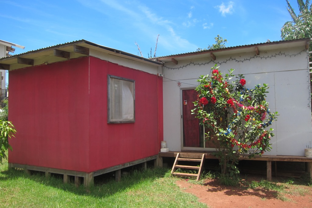 „Šī ir pilsētas centrālā iela”, stāsta Eliass, kad braucam pa nelielu celiņu, uz kura dzīvo mazi veikali, bankomāti, aptieka. Izbraucam ārā no pilsētas un pēc gabaliņa Eliass griež iekšā kādā sānu ceļā. „Man nav plaša māja, bet ir plaša sirds”, viņš paziņo, kad iebraucam pagalmā. Jā, nelielā māja būvēta Nif-nif stilā – pie koka karkasa piestiprinātas reģipša plāksnes, viss ir dziļi vienkārši. Bet šajos klimata apstākļos nekas vairāk nav nepieciešams. Un iekšā ir sadzīves ērtības – gulta, tualete ar visu ūdeni un duša ar visu karsto ūdeni. Viesistabā ir divas gultas – viena paredzēta man, otrā vēl čuč sieviete no Itālijas, kas nu jau 26 gadus dzīvo Taiti. Vakar šie svinējuši Ziemassvētkus līdz sešiem rītā. Vēl šeit dzīvo suns, vārdā Migla un kaķis, vārdā Mākonis.