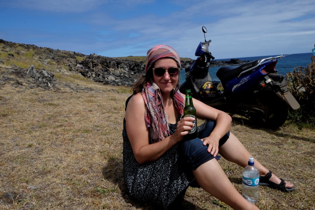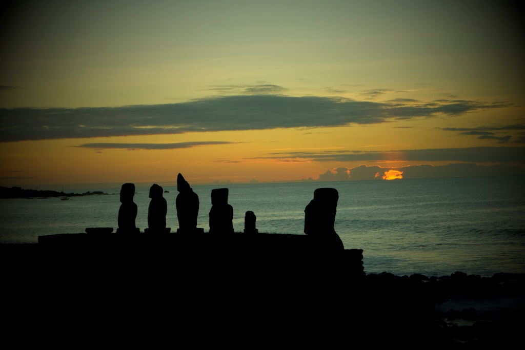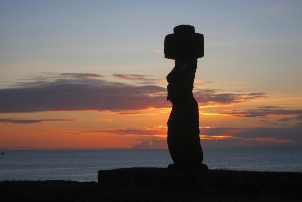 Šķiet pagājušas vien dažas minūtes, kas Eliass mani modina. Mirkli miegs cīnās ar saulrietu, bet pēdējais ar grūtībām uzvar. Ceļos augšā, mēs atkal sēžamies uz mazā moto un laižam skatīties saulrietu. Debesis lēnām top krāsām bagātākas un izceļ Lieldienu salas izslavēto statuju tumšās kontūras. Sēžu un domāju par to, cik forši, ka pasaulē ir tādas lietas kā internets, lidmašīnas, kaučsērfings. Vēl pirms diennakts atrados citā valstī, bet tagad sēžu Lieldienu salā, esmu iepazinusies ar kaudzi vietējo cilvēku, baudījusi šejienes ēdienus un varu vērties uz saviem bērnības sapņu tēliem. Esi sveicināta, Rapa Nui!