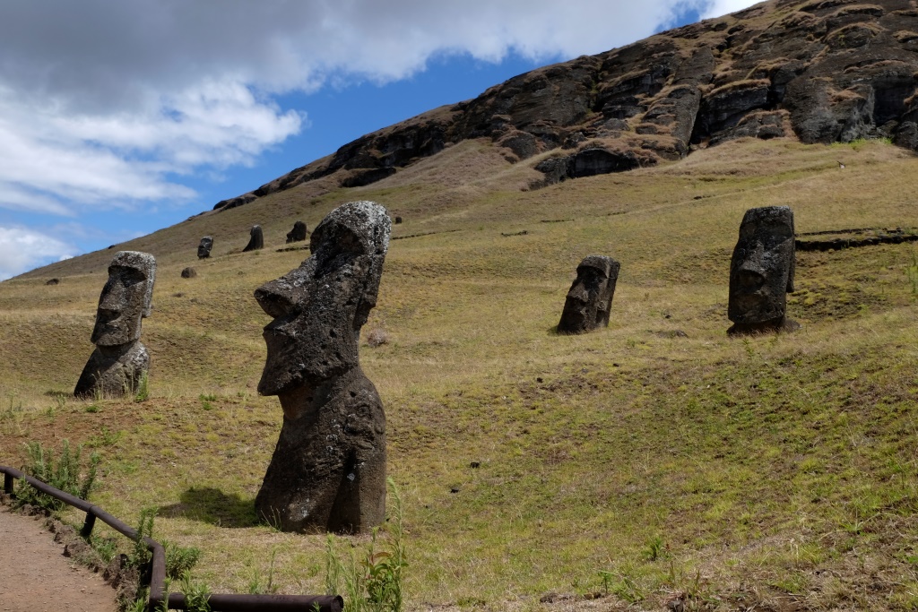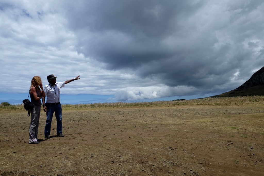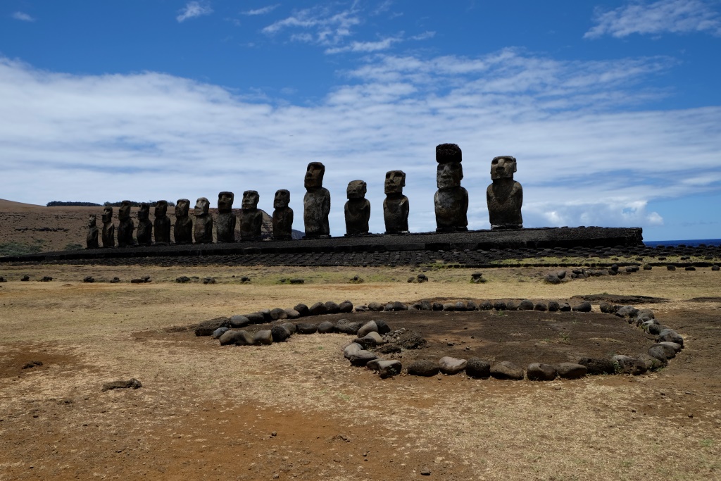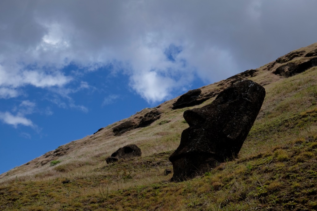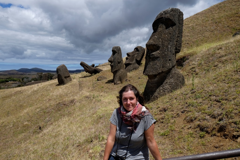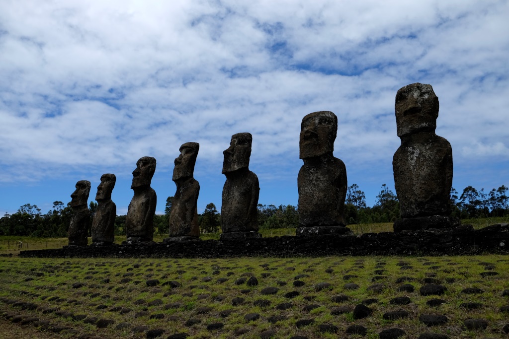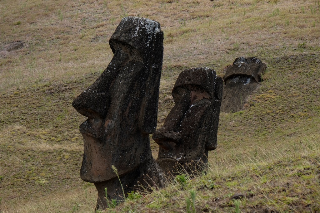 Dienas gaitā apskatām teju visus Moai – lielākā daļa no statujām atrodas okeāna krastā un sargā salu – tās gan slejas ar muguru pret okeānu, ar skatu pret iekšzemi. Vienīgi septiņi vīri, kas stāv kāda kalna galā iekšzemē, skatās jūras virzienā – tie veltīti septiņiem vīriem, kas tikuši sūtīti izziņas braucienos. Katra statuja veltīta kādam ievērojamam cilvēkam pagātnē un tās uzstādītas uz kapenēm, tāpēc nedrīkst atrasties tiešā to tuvumā. Arī, protams, lai nebojātu vēsturiskos tēlus, muļķu mūsdienās netrūkst.