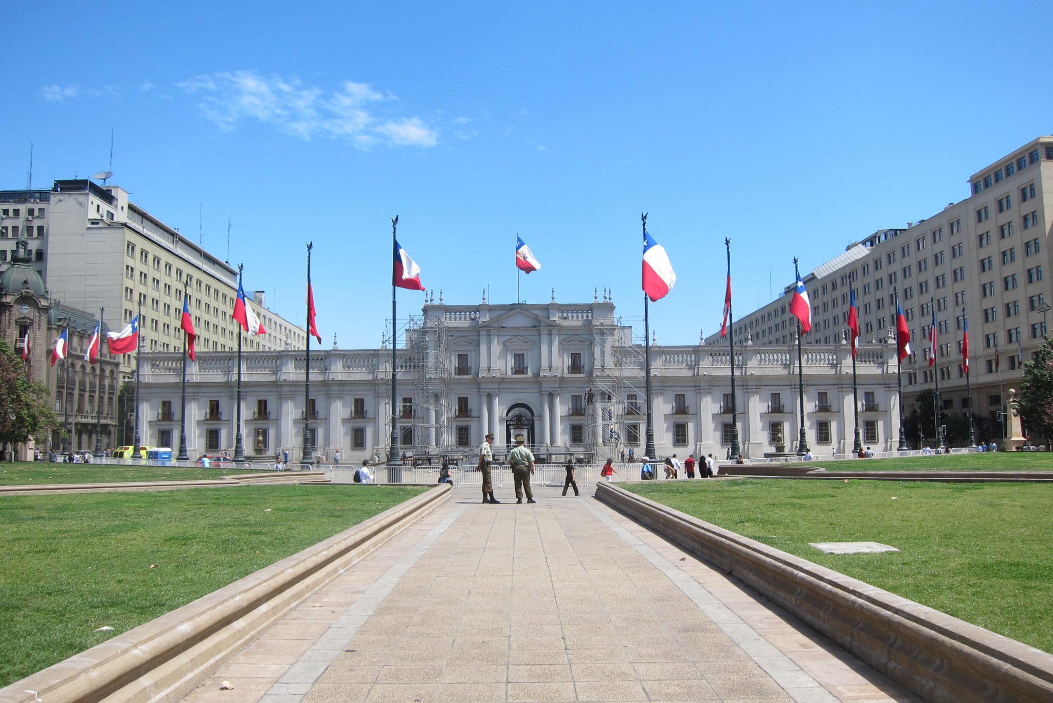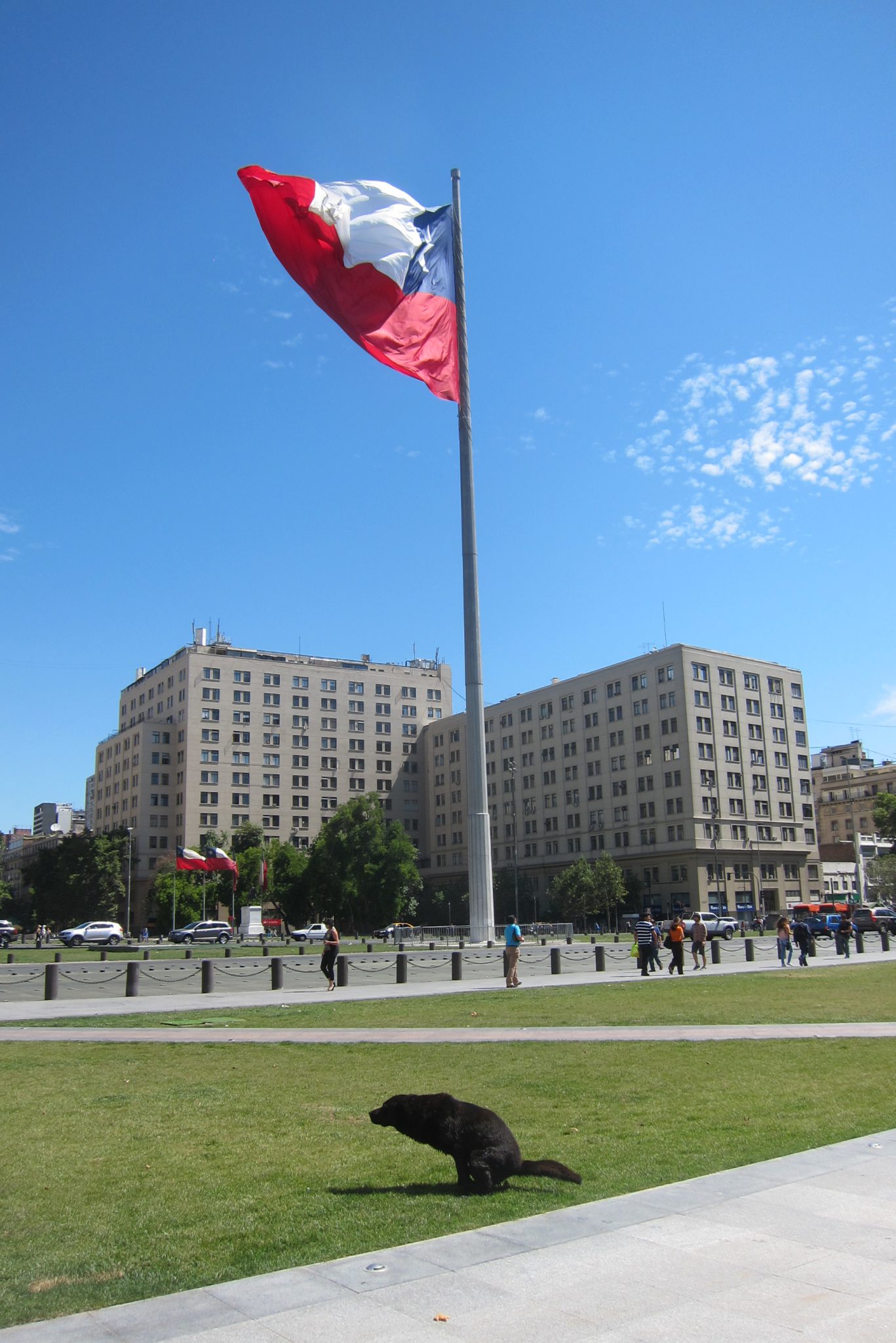 Mēs apskatām vēl virkni vēsturisku ēku un laukumu, Filipe cenšas mums īsumā iedot sajūtu arī par neseno Čīles vēsturi. 1973. gada 11. septembrī valstī notika apvērsums un prezidents Salvadors Allende izdarīja pašnāvību. Lai gan daudzi čīlieši joprojām uzskata, ka viņš ticis nogalināts. Apvērsums sašķēlis visu tautu, pat ģimenes. Vieni no bēdām raudājuši, citi priecājušies, dejojuši ielās un dzēruši šampanieti. Kā pagaidu variants pie valsts stūres piesēdies ģenerālis Augusto Pinočets. Kā daudzi pagaidu varianti, arī šis izrādījies gana stabils – Pinočets pie varas pavadīja 15 gadus. Šajā laikā valsts atkopās ekonomiski, bet cieta cilvēciski. Teju katrā čīliešu ģimenē bija kāds, kurš šī režīma laikā pazuda bez vēsts, tika nogalināts vai spīdzināts. Pamatā šādu attieksmi izpelnījās tie, kas uzdrīkstējās paust valdošajai varai atšķirīgu viedokli. Cik pazīstami.