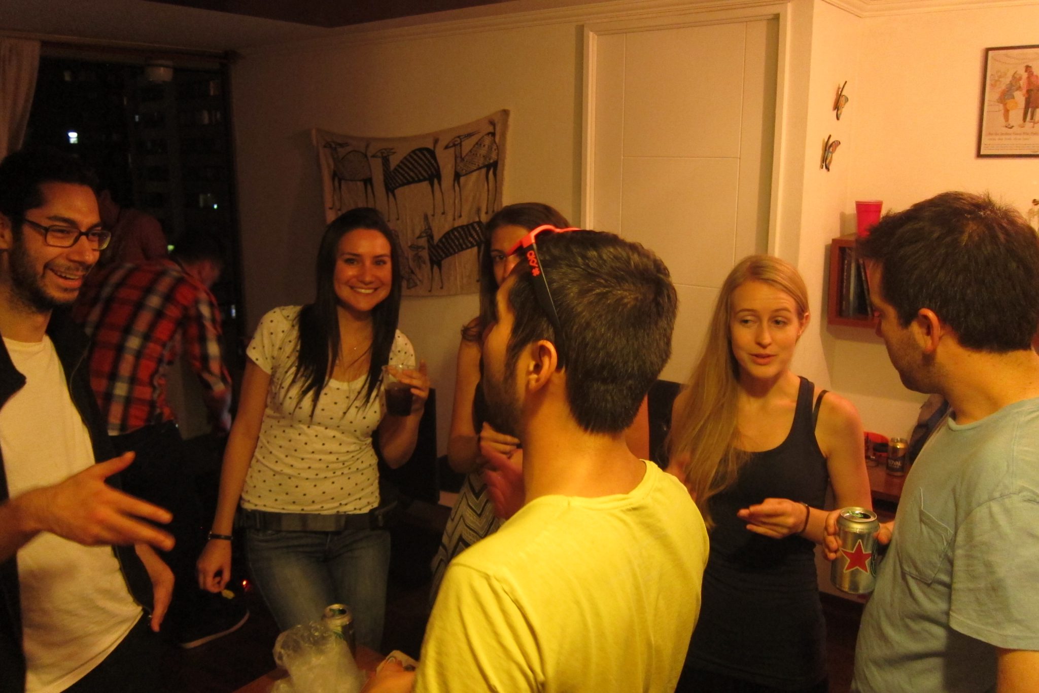 Pēc pusstundas zvanu pie Megijas durvīm, tās atver garkājaina tumšmate no ASV. Viņa, līdzīgi kā vairums ārzemnieku, šeit strādā par angļu valodas skolotāju. Pēc īsas iepazīšanās, viņa vaicā, vai es vēlos pievienoties šovakar nelielai pasēdēšanai draugu lokā. Nē, nē – nekādi klubi, maza pasēdēšana. Labi, vēlos.