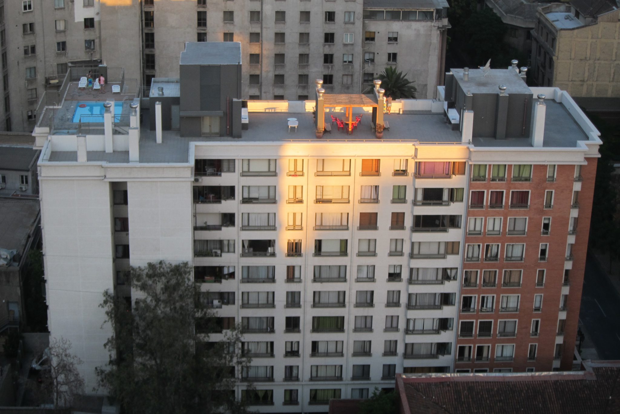 Vakarā kopā ar Megiju uzbraucam līdz ēkas 26-tajam stāvam un uzrāpjamies uz jumta, lai noskatītos saulrieta izrādi. Kamēr saule gatavojas, Megija man rāda, kur kas pilsētā atrodas – no šejienes var redzēt gana tālu. Saulei norietot, arī mēs dodamies gulēt, pārmaiņas pēc pieklājīgā laikā.