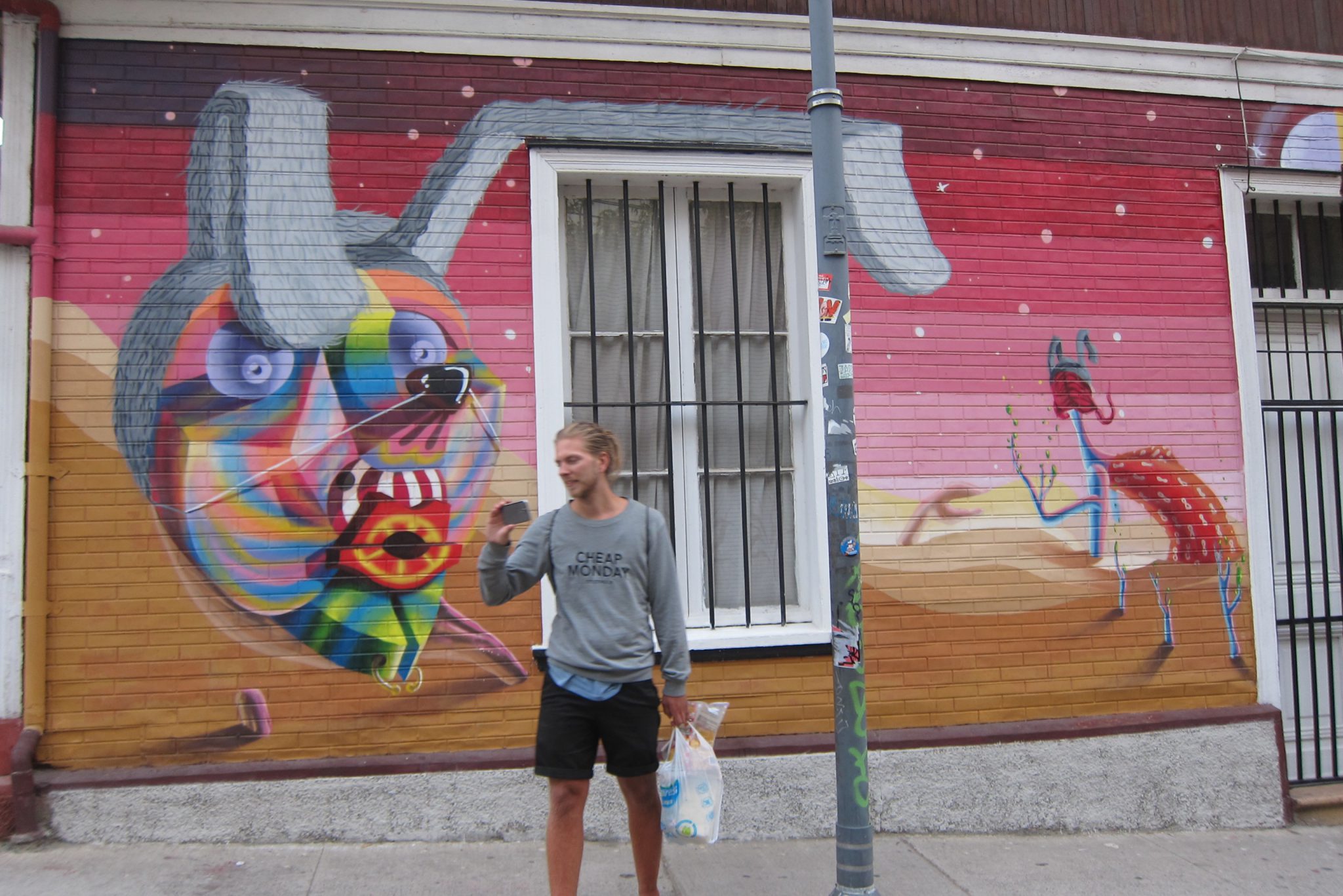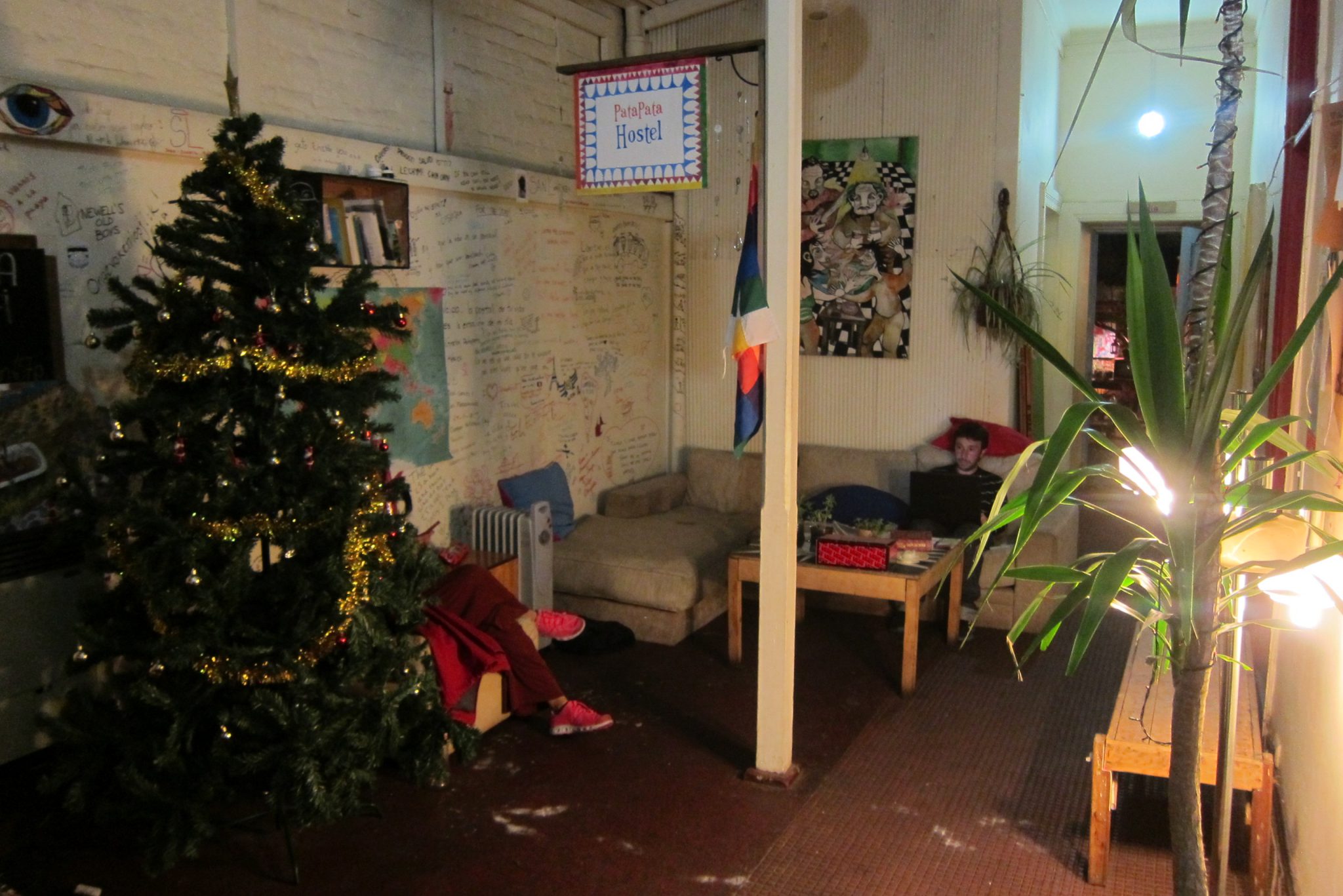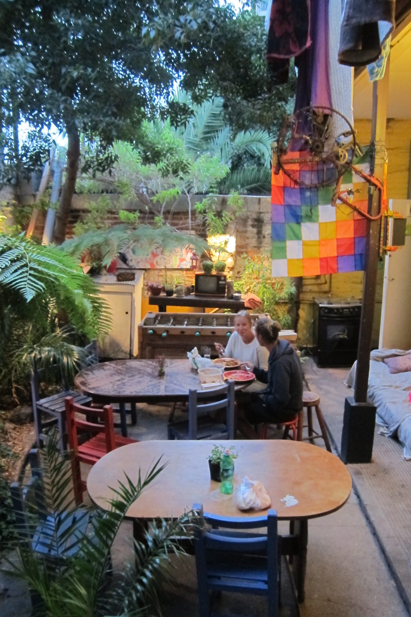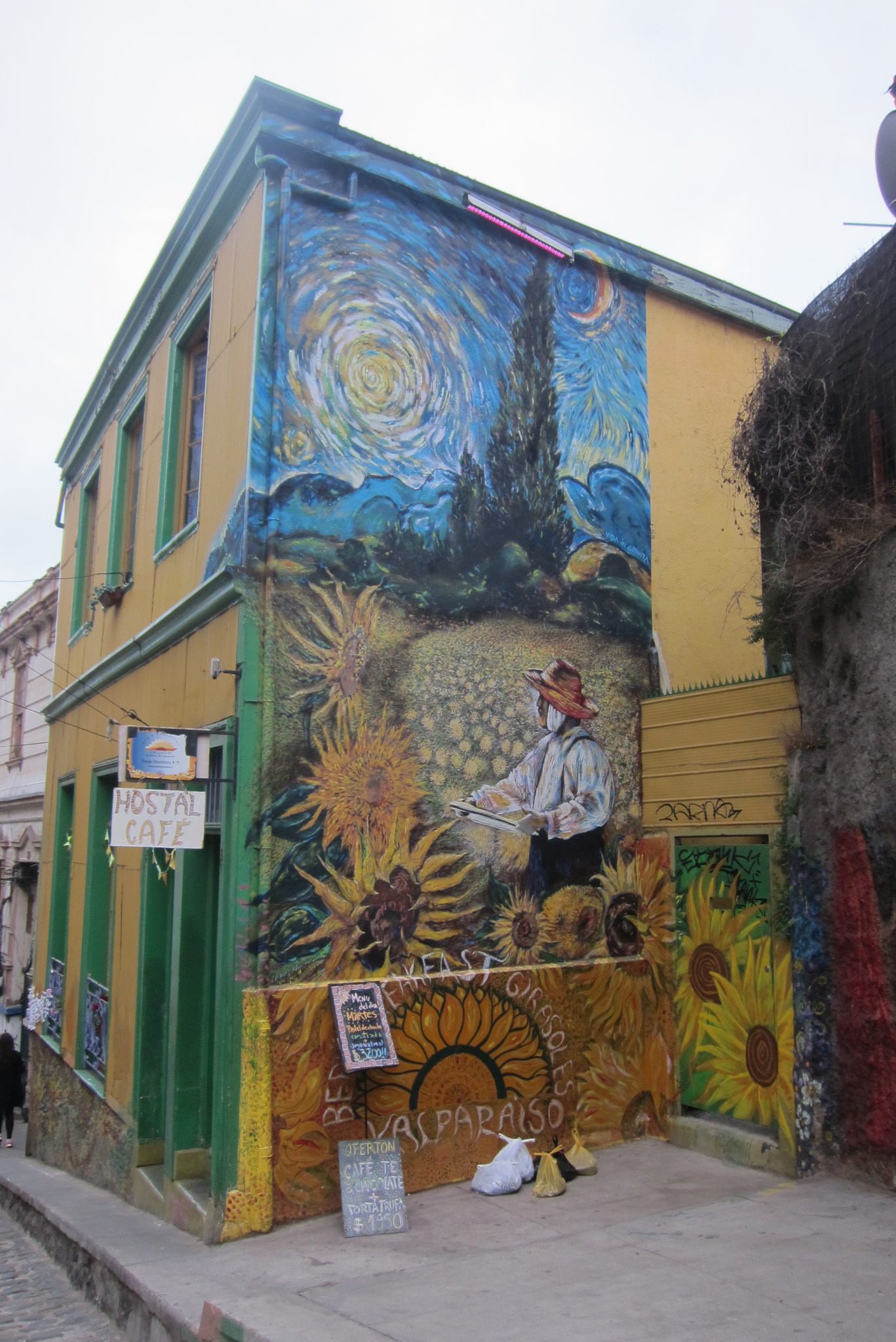 Tāda pūcīga iebraucu Valparaiso. Mēģinu zvanīt kontaktam trešo reizi, arī šoreiz nesekmīgi. Labi, esmu piefiksējusi pāris hosteļu adreses katram gadījumam, eju meklēt naktsmājas. Joprojām viss ir slikti, neesmu arī priecīga ieraudzīt, ka man nepieciešamā vieta atrodas kalna galā, ir jākāpj pa garum garām kāpnēm. Tomēr kāpnes jeb fiziskā slodze jocīgā kārtā palīdz kliedēt nejauko noskaņojumu un pie hosteļa durvīm zvanu nosvīdusi, bet daudz mierīgāka. Viņiem ir brīvas vietas, iekārtojos četrvietīgā istabiņā.