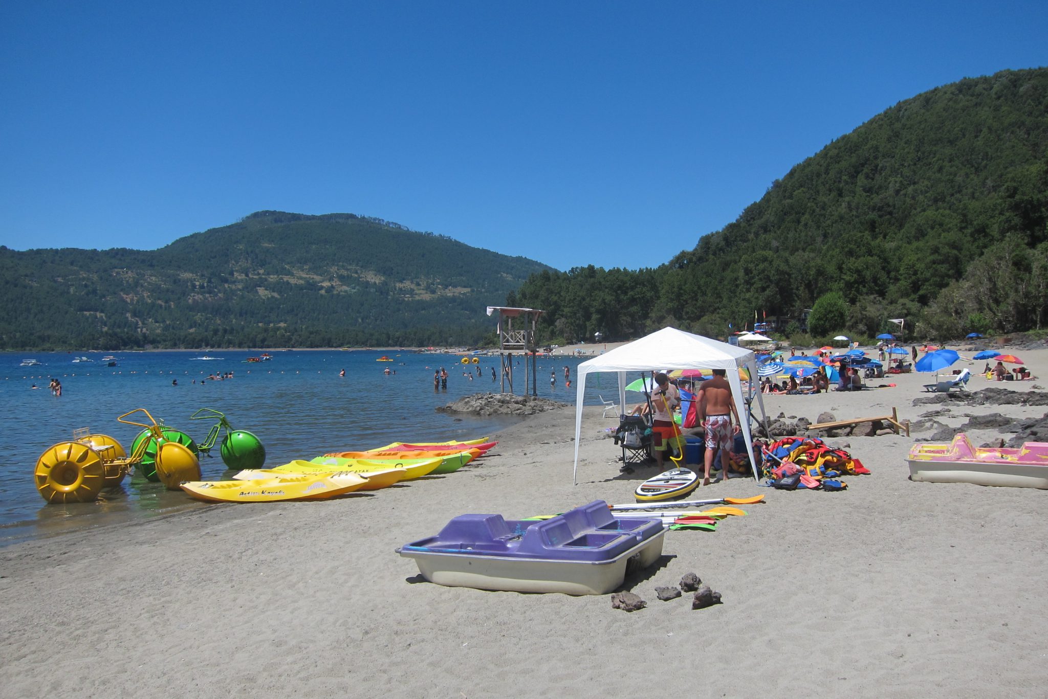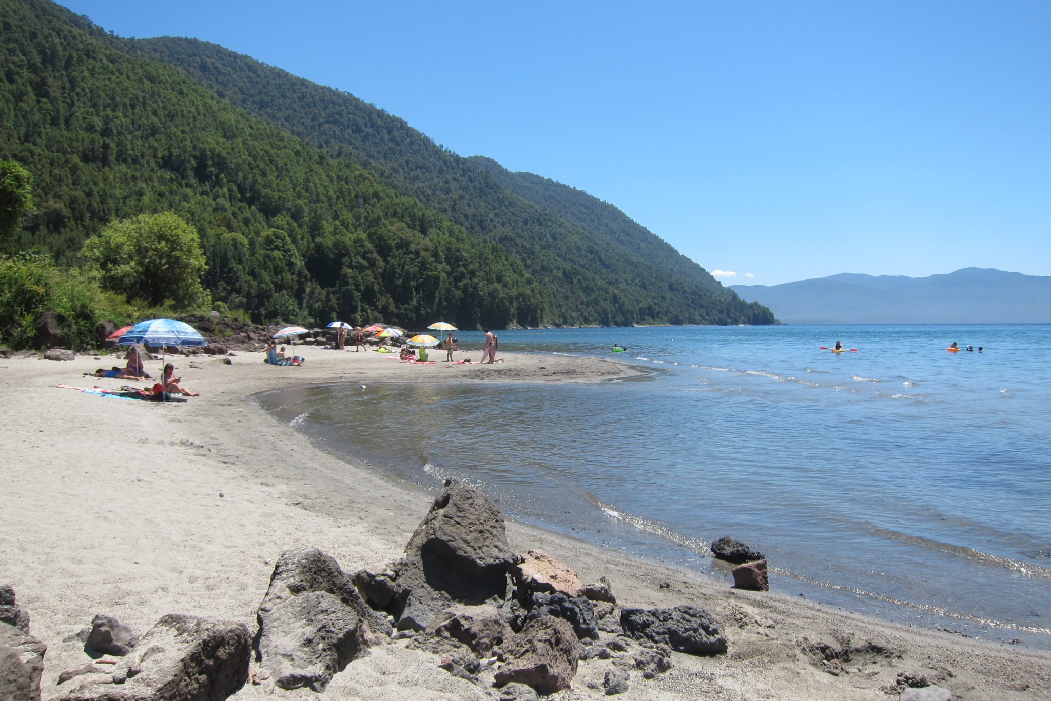 Tad Džouvī mani dalēļi pa ceļam aizved līdz Kaburgai, vēl vienai tūristu pilsētiņai, kas atrodas viena no šejienes daudzo ezeru krastā. Tieku izlaista pie Playa Blanca, baltās pludmales. Džouvī aizbrauc atpakaļ, bet es, pieklājības pēc pavadījusi pludmalē minūtes piecas, sekoju viņa piemēram. Aizstaigāju arī līdz otrai šejienes peldvietai Playa Negra jeb melnā pludmale, bet arī tur esošais cilvēku daudzums mani vedina pēc iespējas ātrāk mainīt dislokāciju.