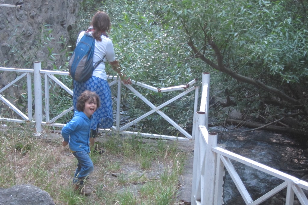 Labi, cik nu aši varēdama, piebeidzu sautējumu un lecam uz zirgiem. Sākumā izbraucam pa tūristiem mazāk zināmu pilsētas daļu, tad ceļš ved nelielā kalnā un beidzas pie pamestas hidroelektrostacijas. Domāju, ka tas arī ir mūsu galamērķis, bet nē – Kristiāns vedina tālāk – aiz pamestās ēkas vijas šaura taciņa. Kāpelējot pa akmeņiem un lienot pāri šķēršļiem, pēc maza brīža paveras ūdenskritums, mazs noslēpies brīnums. „Šī vieta ir tik tuvu pilsētai, bet retais par to zina”, saka Kristiāns, „Tev patīk?”. O, jā, man patīk gan pamestas ēkas, gan ūdenskritumi, šis ir labs komplekts.