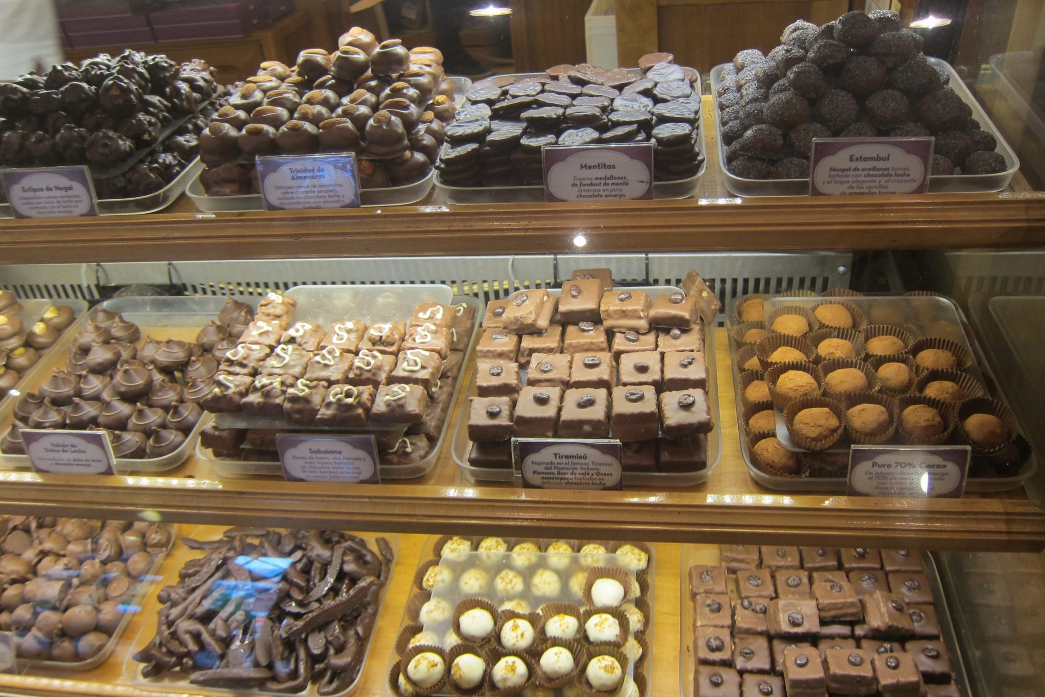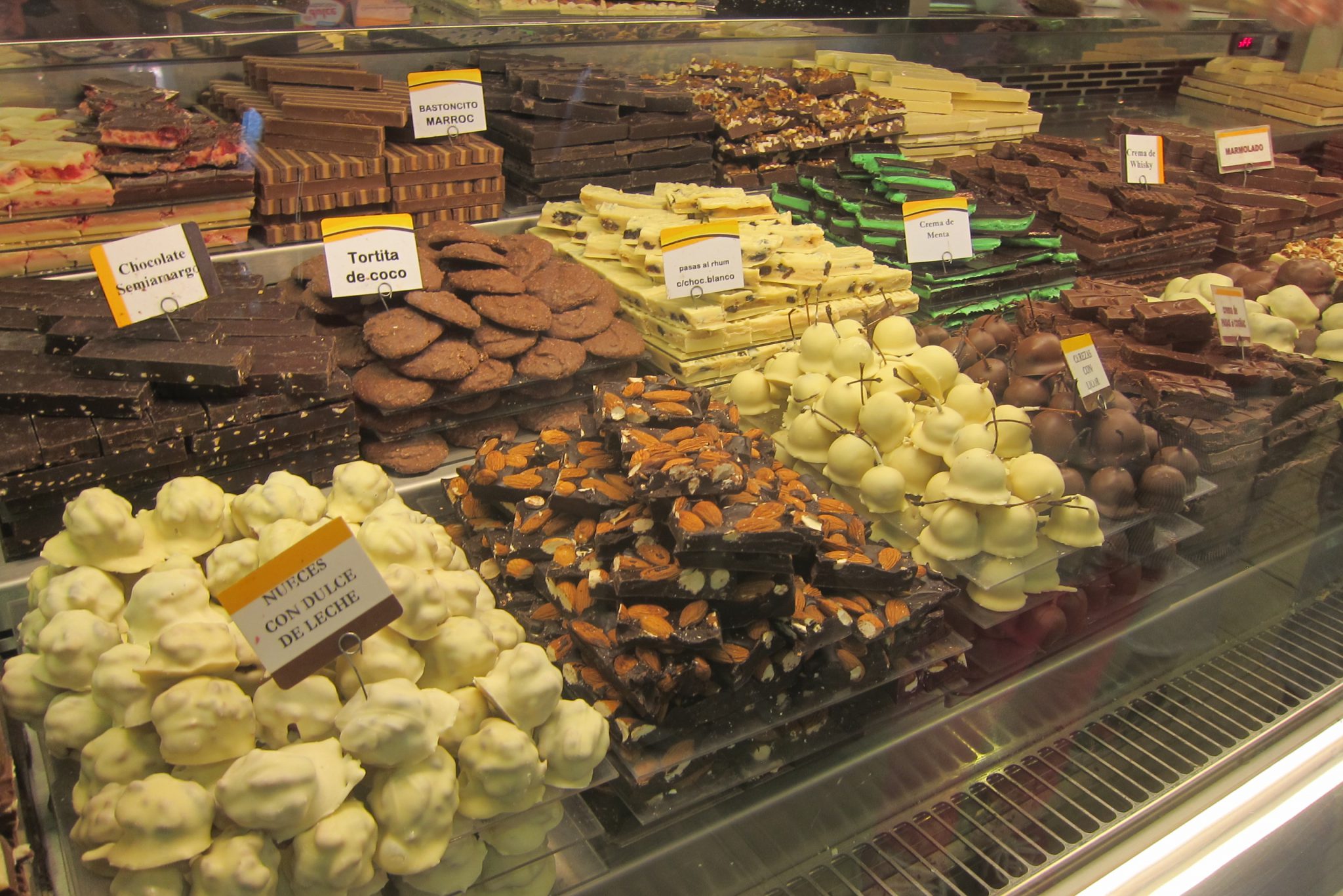 Tomēr šodien ir pirmdiena un muzejs ir ciet, tā arī paliekam bez papildus informācijas. Joprojām traki līst un manas ceļabiedrenes – franču Elodī un vācu Linda, saka, ka tas ir īsti piemērots laiks, lai baudītu šokolādi. Iesprūkam vienā no šejienes daudzajiem šokolādes veikaliņiem (Bariloche ir slavena ar šokolādi) un es rādu meitenēm, ka jāpaņem rindas numuriņš.